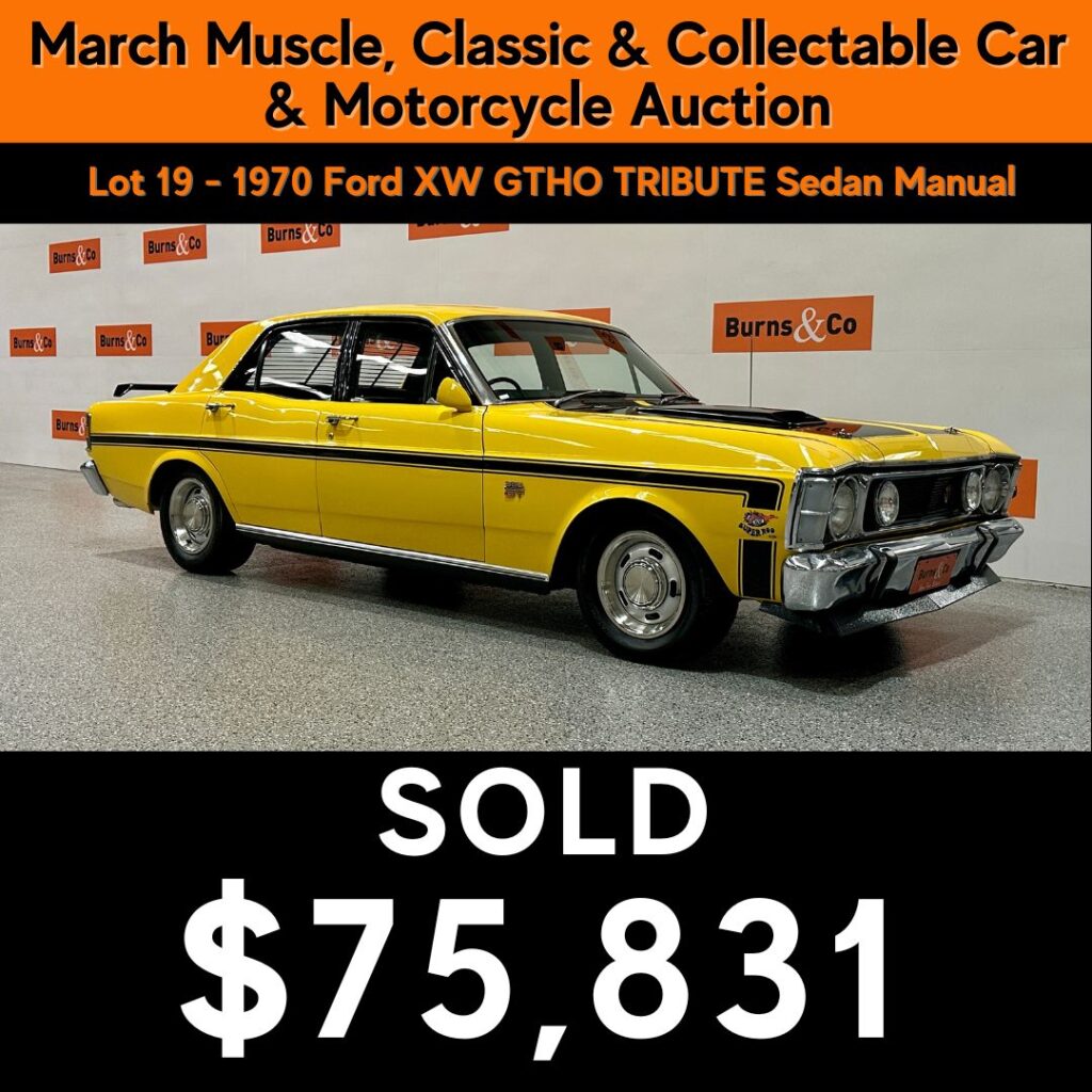 The XW GTHO Phase 1 is now booked into the Burns & Co Classic & Collectable Car Auction scheduled for Monday 16 March 2026.