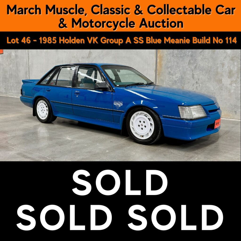 The broader line-up features a strong mix of desirable Aussie muscle and collector vehicles. Highlights include a 1985 Holden VK Group A SS “Blue Meanie” (Build No. 114), a 1982 Ford XE Fairmont Ghia ESP 302 V8 Manual, and a 2000 Holden VX HSV GTS Manual.