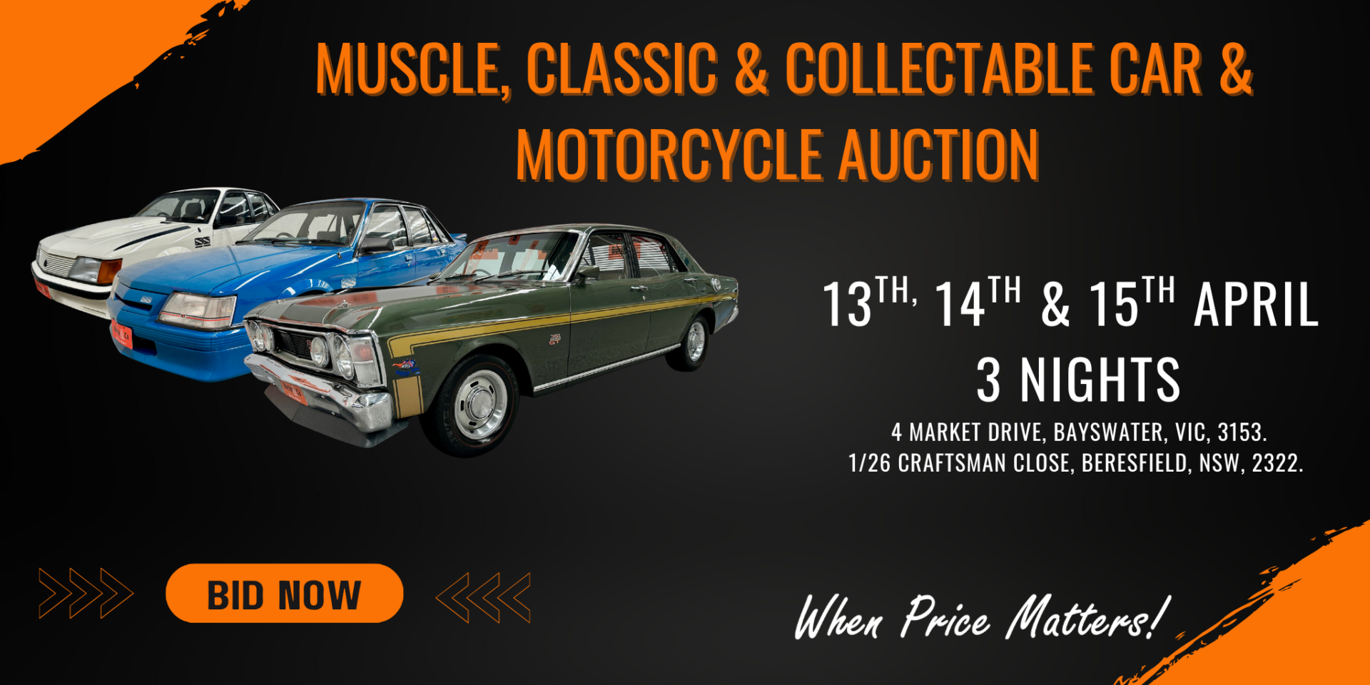 Entries are being drawn from both our Bayswater (Melbourne) and Beresfield (Newcastle) showrooms, bringing together a national selection of vehicles and connecting vendors with a broad base of serious buyers across the country.