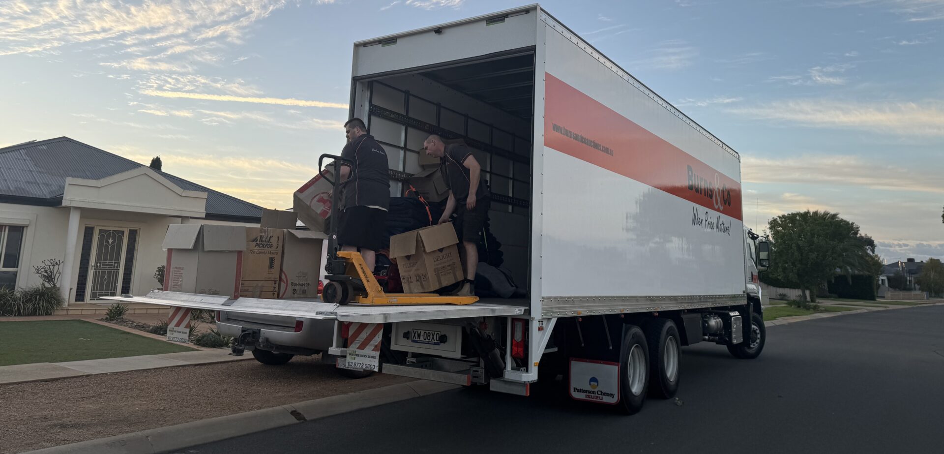 This week in Yarrawonga, the Burns & Co team returned to Trevor and Kerry’s property to begin the next stage – carefully loading the remaining items for Parts 3 and 4 onto trucks for transport back to our Bayswater facility.