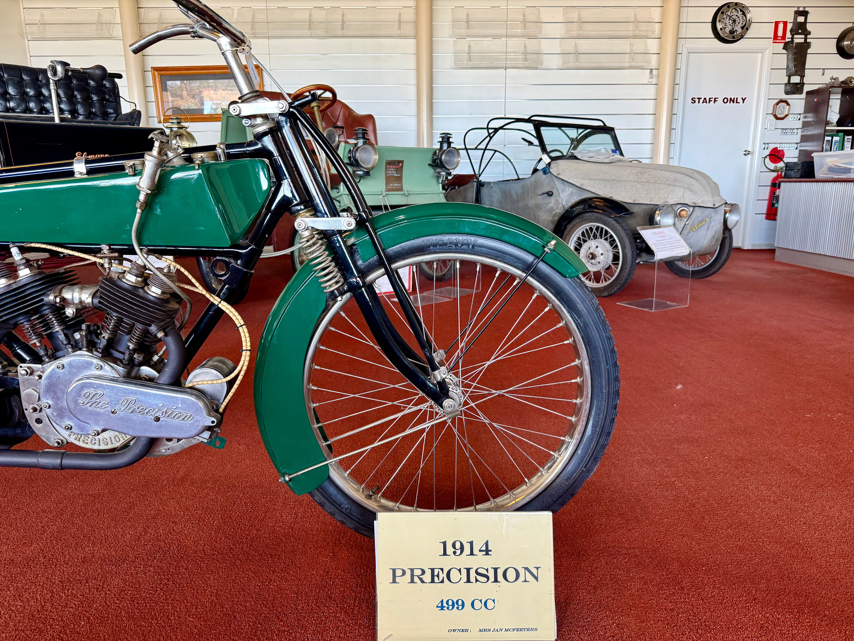 Being offered UNRESERVED. Part of the McFeeters motor museum for many years, this 1914 Precision motorcycle was purchased by the McFeeters from another museum in Queensland. The McFeeters had the motorcycle restored and it presents beautifully. A large folder of paperwork including photos during rebuild and some old photos of the motorcycle are included in the sale. No attempt to start.