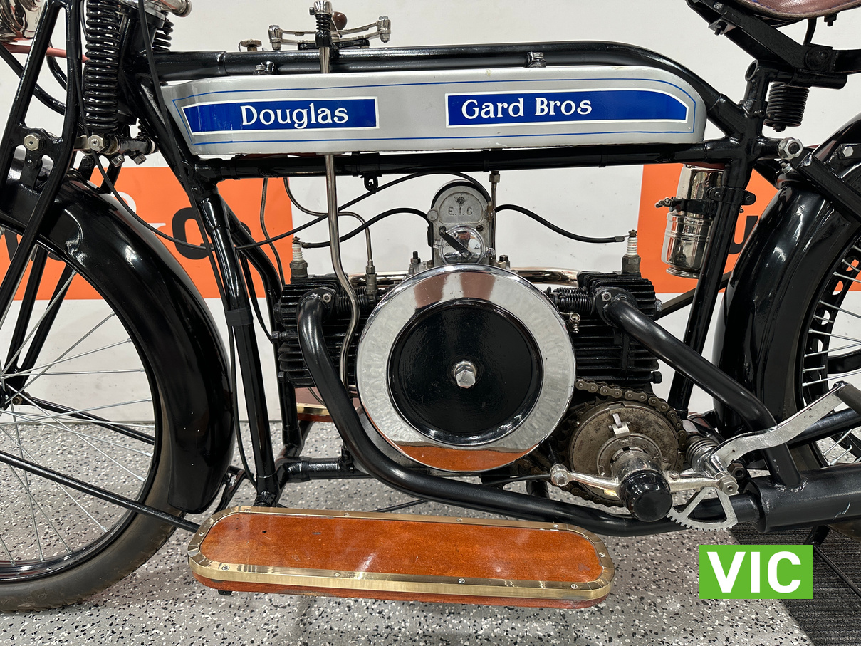 Believed to have been supplied by the Adelaide dealers, Gard Bros, this machine is a significant part of Australian motorcycle history. Gard Bros of Gouger St, Adelaide was the official Douglas dealer. The machine on sale would have been supplied as a solo bike as it has belt final drive after the chain drive to the 3 speed gearbox. The original purchaser and its early ownership are unknown. In recent times it has been fully restored and presents beautifully.