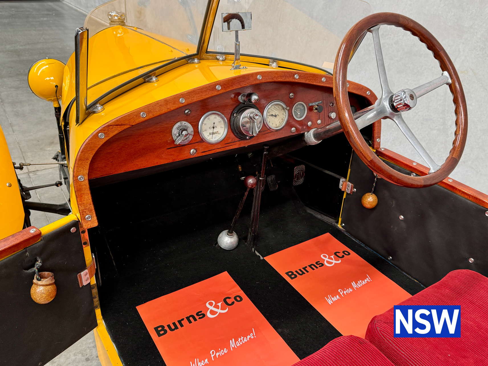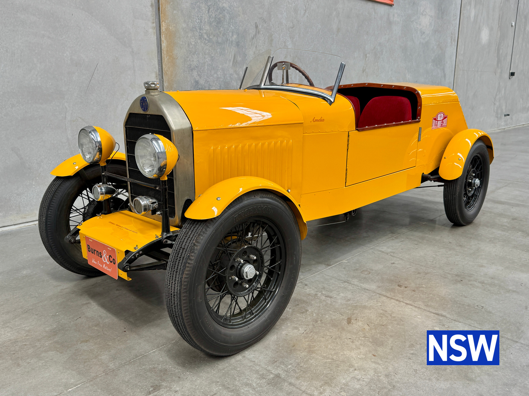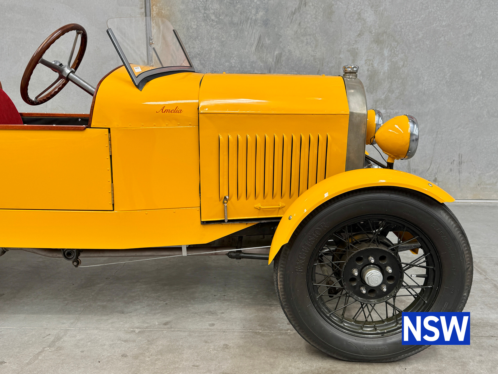 This example affectionately known as Amelia was restored from bare chassis with boxes and crates of parts and no bodywork, together with an identical 1924 car. The two cars were bought new by two brothers living in northern NSW and stayed in operating condition until 1940, when they were dismantled and stored, probably due to shortage of the original beaded edge tyres. After some years, they were passed through a number of owners until arriving at Stanthorpe in about 1995, but still totally dismantled. The present owner bought the two cars in 2012, from Mr Peter Lamb of Stanthorpe and caried out an extensive restoration over the next 6 years using parts from both cars, with many minor parts hand made. The vendor advises that this is the only known example of this model known to exist in running condition in Australia, with only a very small number existing worldwide.