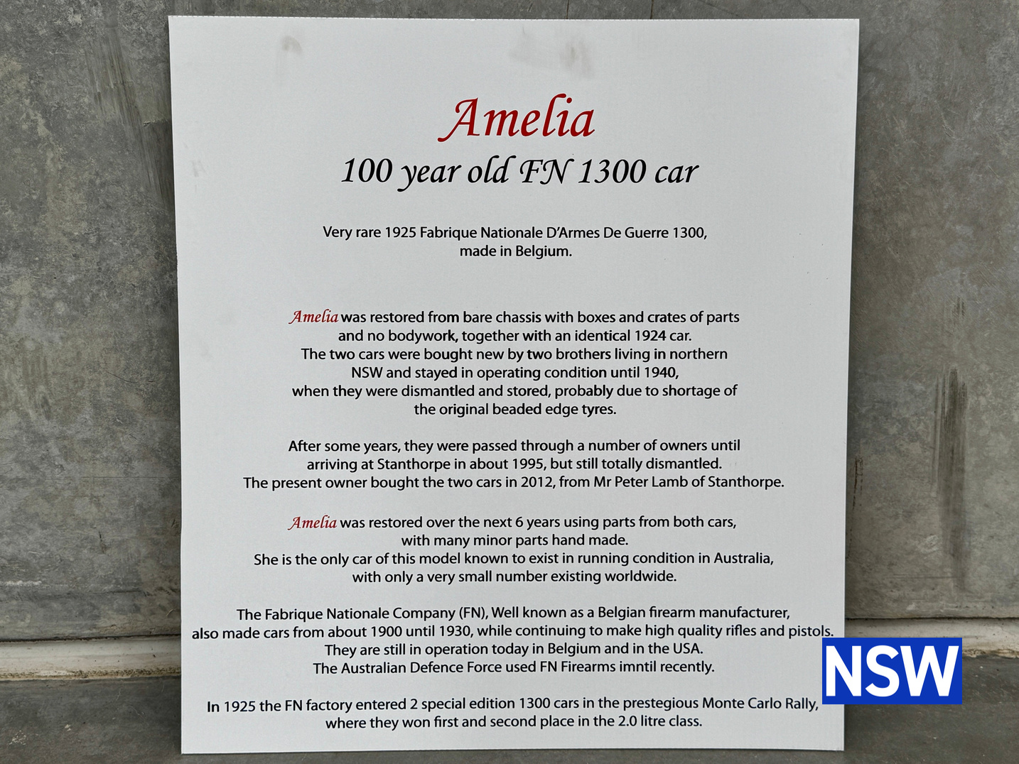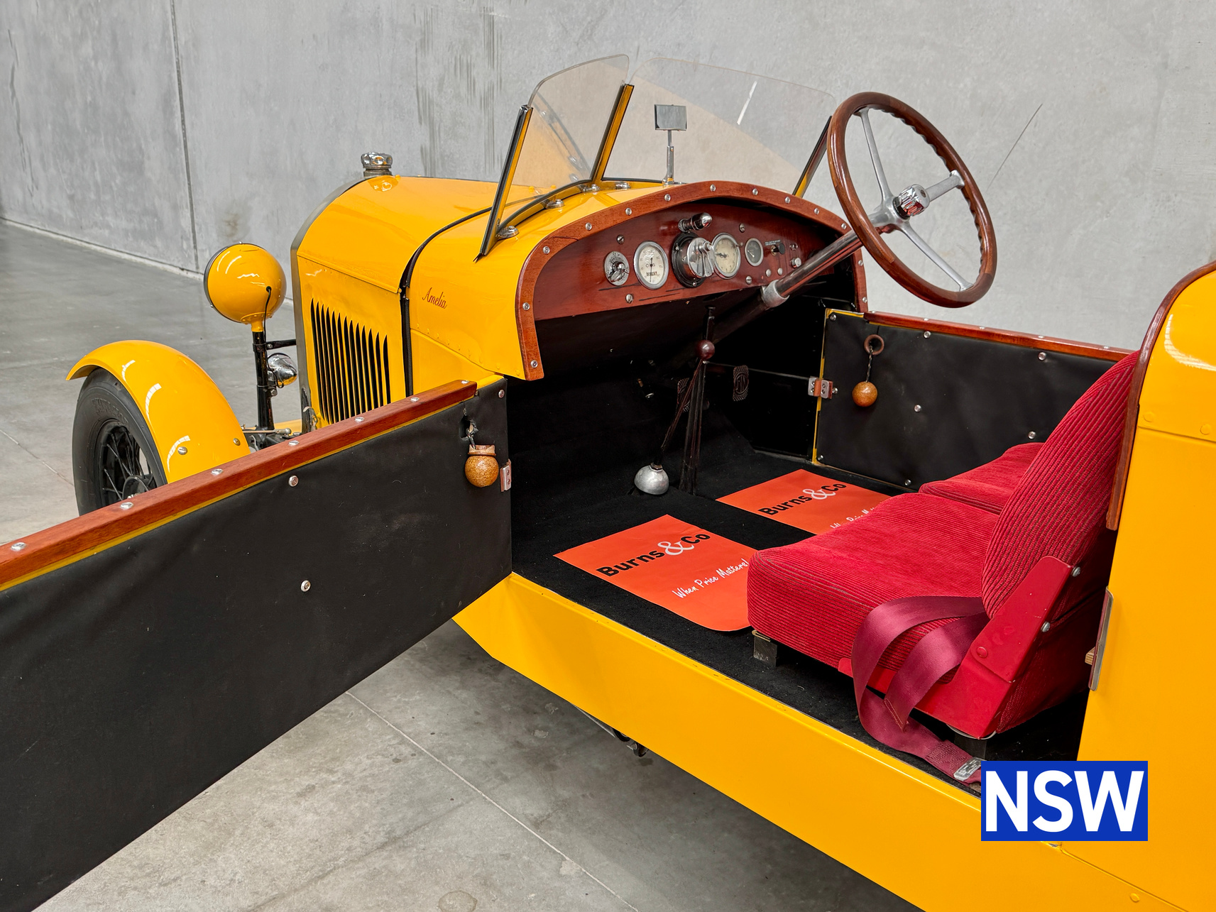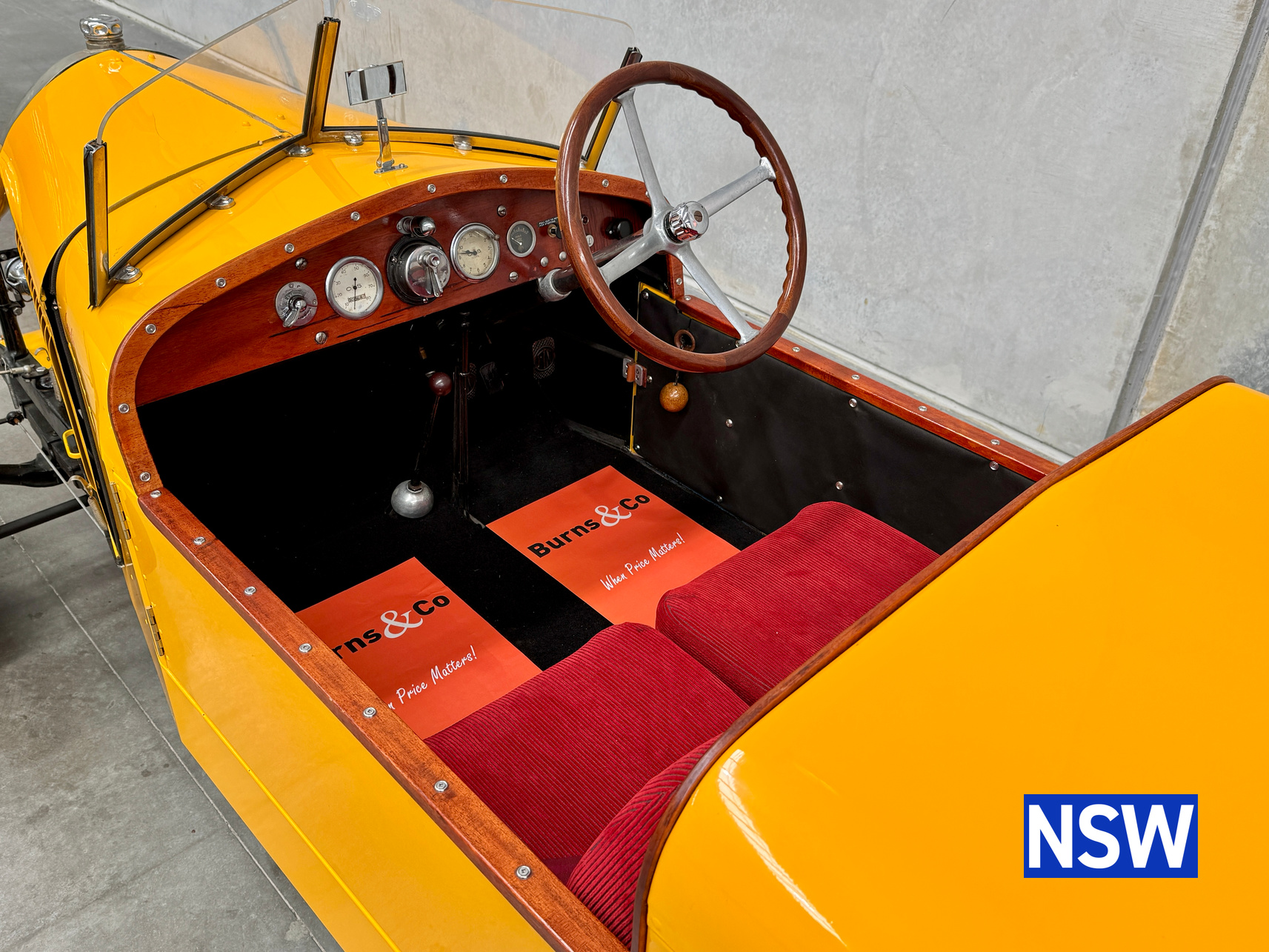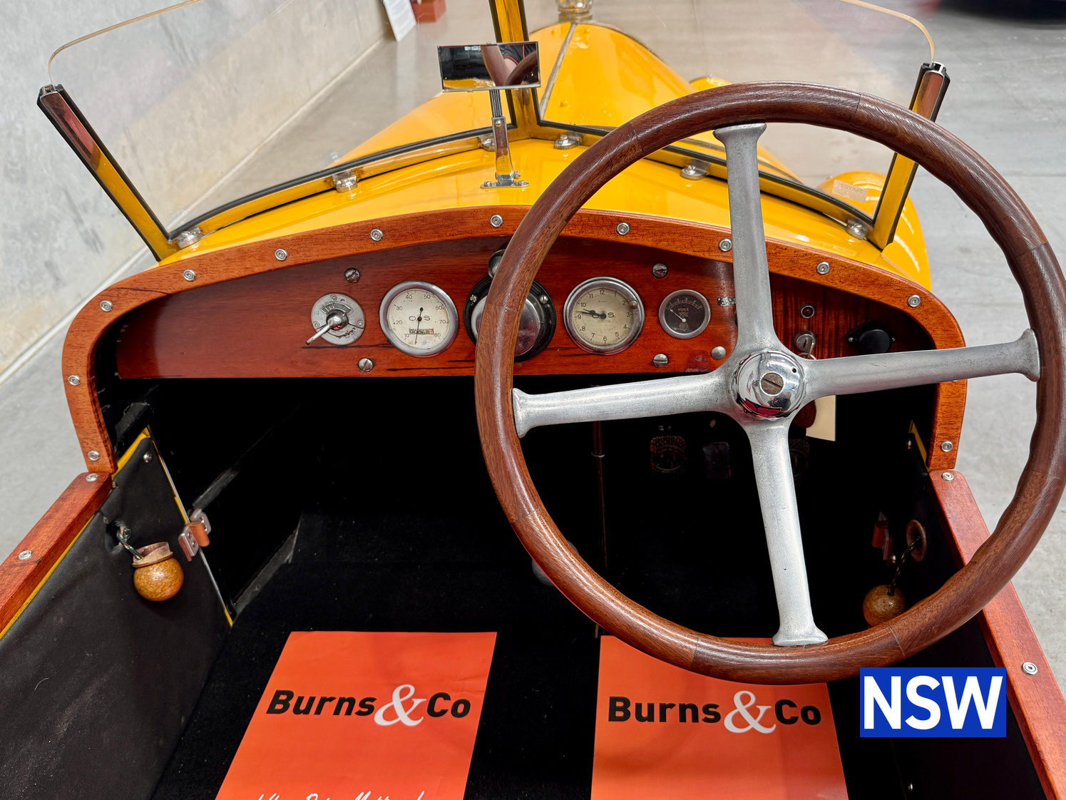 This example affectionately known as Amelia was restored from bare chassis with boxes and crates of parts and no bodywork, together with an identical 1924 car. The two cars were bought new by two brothers living in northern NSW and stayed in operating condition until 1940, when they were dismantled and stored, probably due to shortage of the original beaded edge tyres. After some years, they were passed through a number of owners until arriving at Stanthorpe in about 1995, but still totally dismantled. The present owner bought the two cars in 2012, from Mr Peter Lamb of Stanthorpe and caried out an extensive restoration over the next 6 years using parts from both cars, with many minor parts hand made. The vendor advises that this is the only known example of this model known to exist in running condition in Australia, with only a very small number existing worldwide.