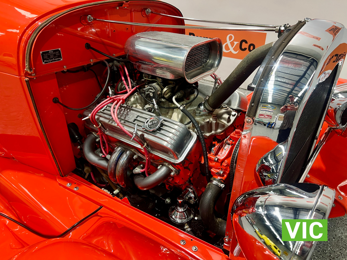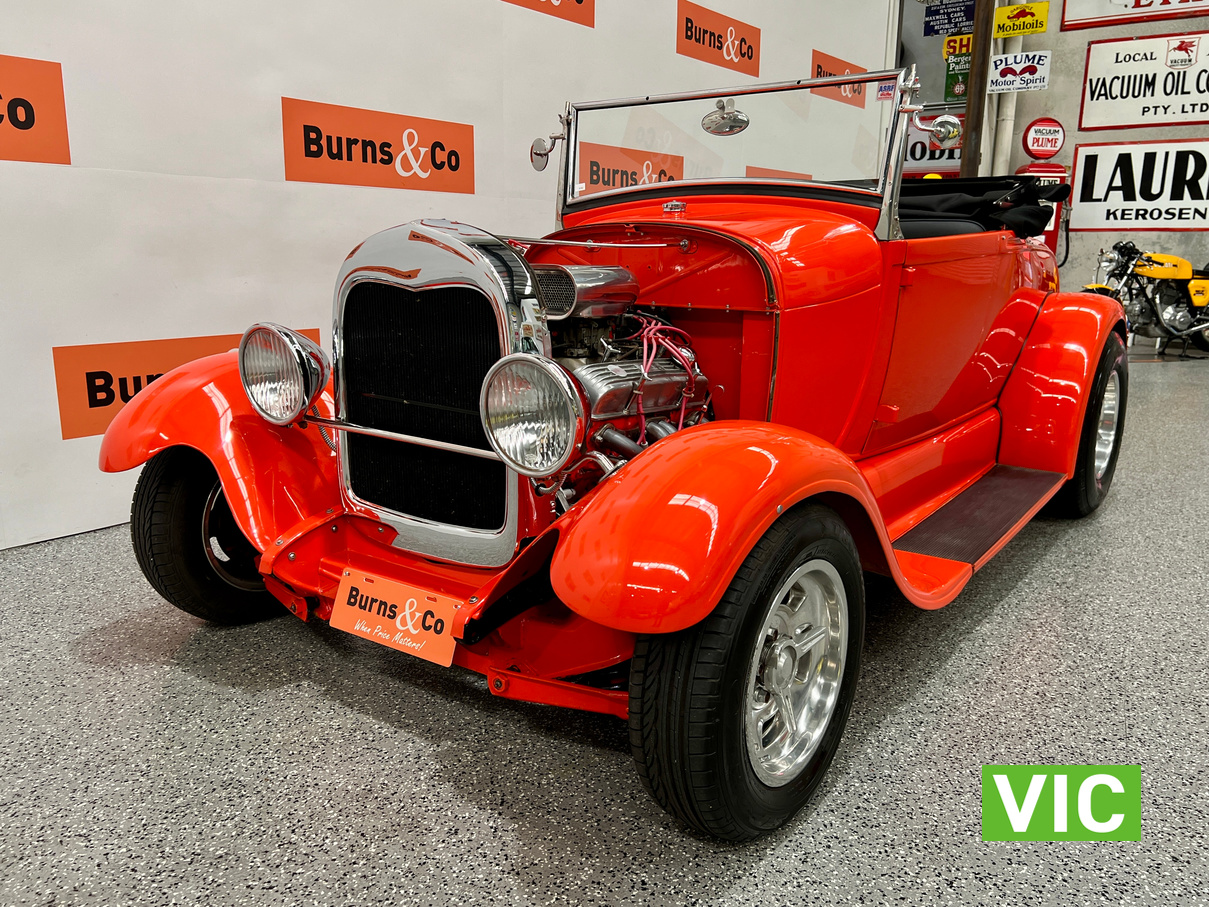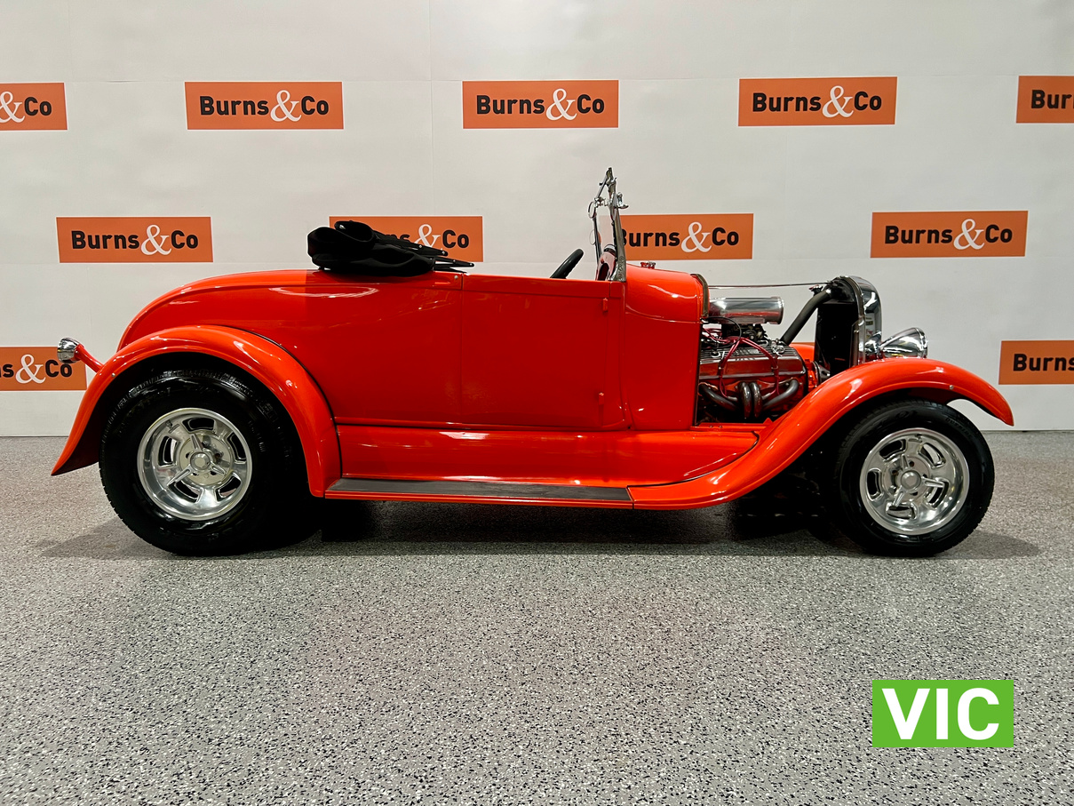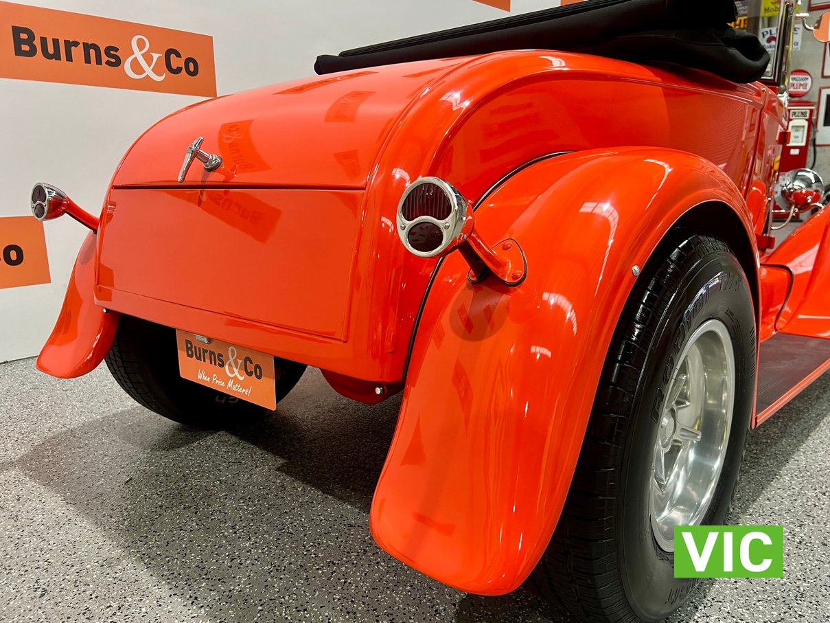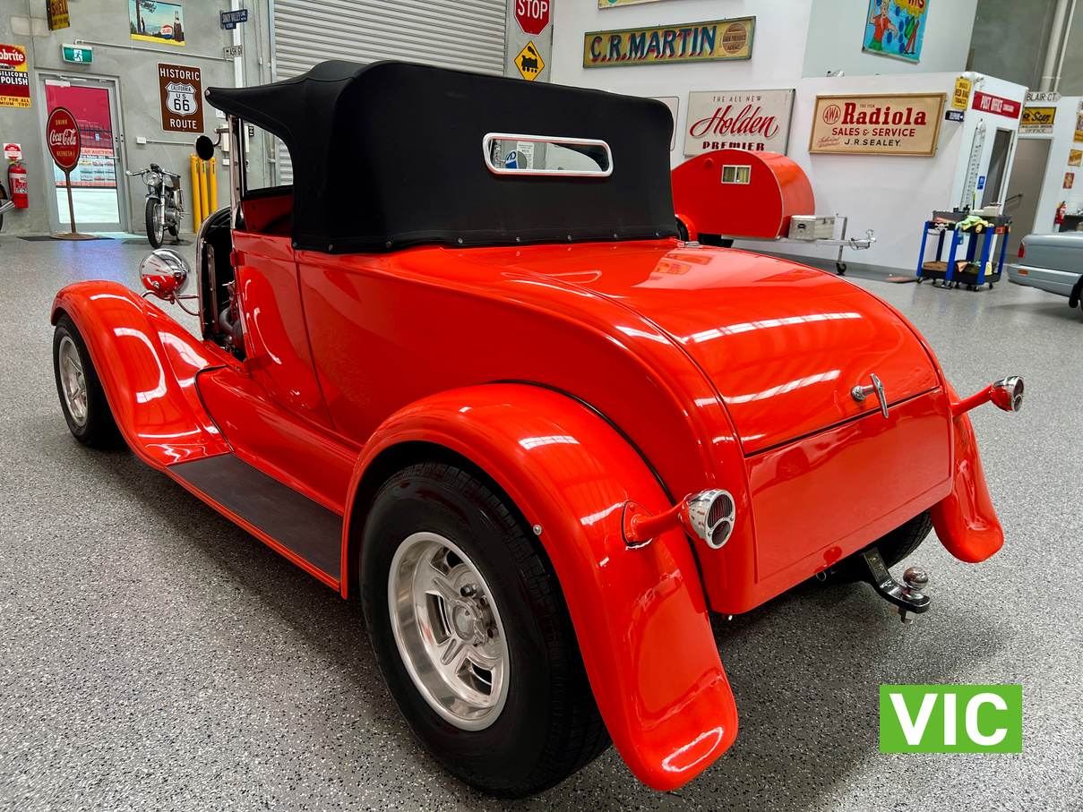 Interior was professionally reupholstered 12 months ago and is finished in supple black. Body presents well and is a perfect club car. All steel body with fibreglass guards. Vendor purchased the vehicle with a VASS certificate that was current at the time (10 years ago) and has made some minor modifications since, including indicators and seat belts. A customized caravan built specifically for this hot rod is the following lot in the catalogue. A great opportunity and an even better looking hot rod.