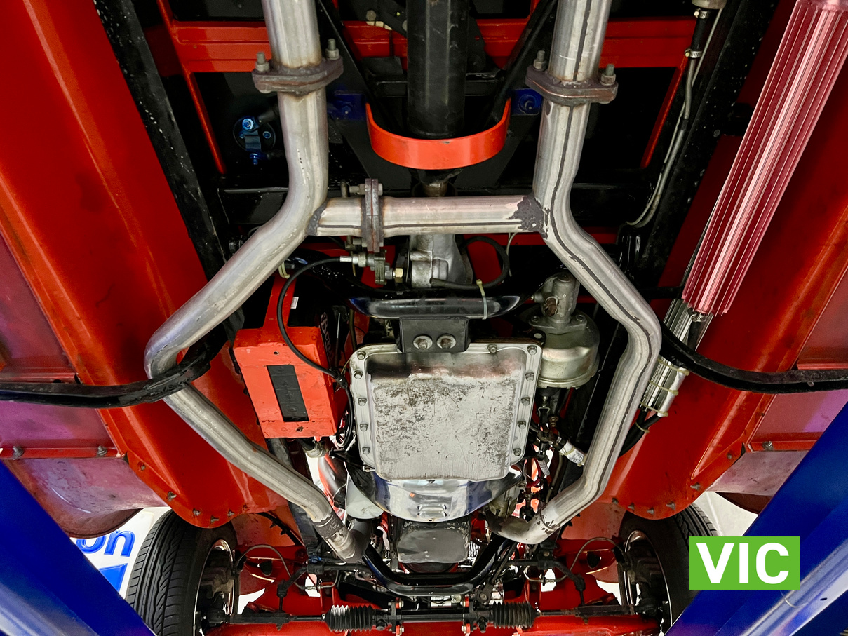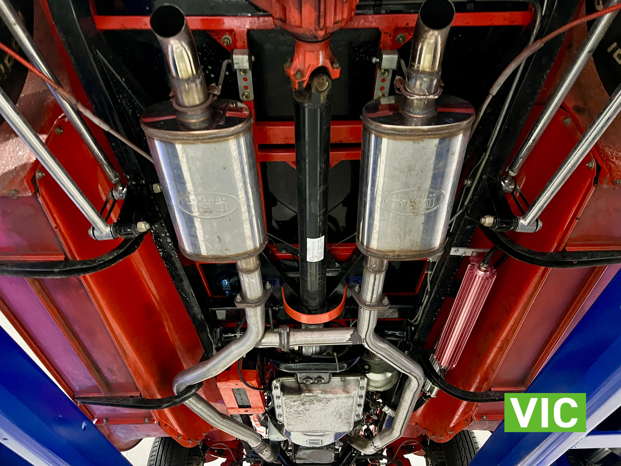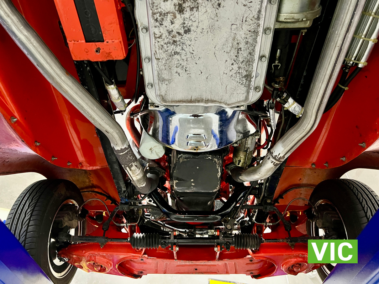 Driven into our Bayswater showroom on SR registration (sold unregistered). Fitted with a 350 Chevy V8 with gear drive, turbo 700 transmission, Mustang 8.5” diff, HK Holden front suspension, HQ front stub axles, P76 rotors, HZ brake callipers, Morris Major rack and pinion, Mazda Capella steering column, Gemini brake booster with Falcon master cylinder, genuine Halibrand wheels and electronic fuel pump booster.