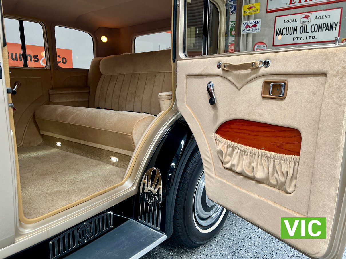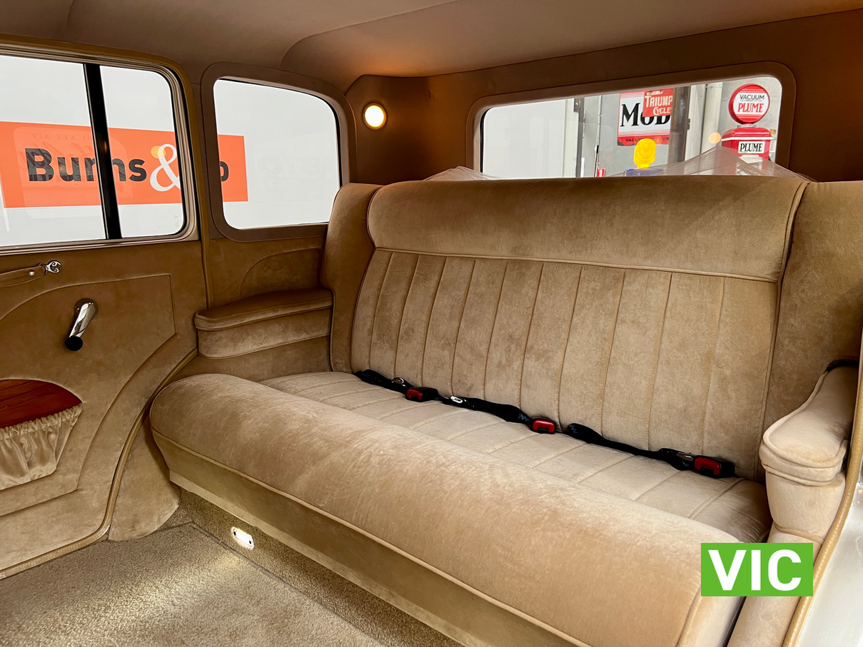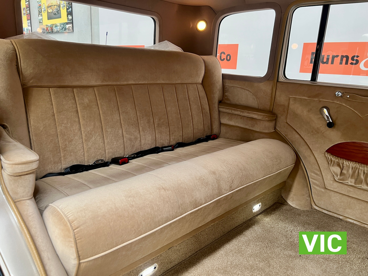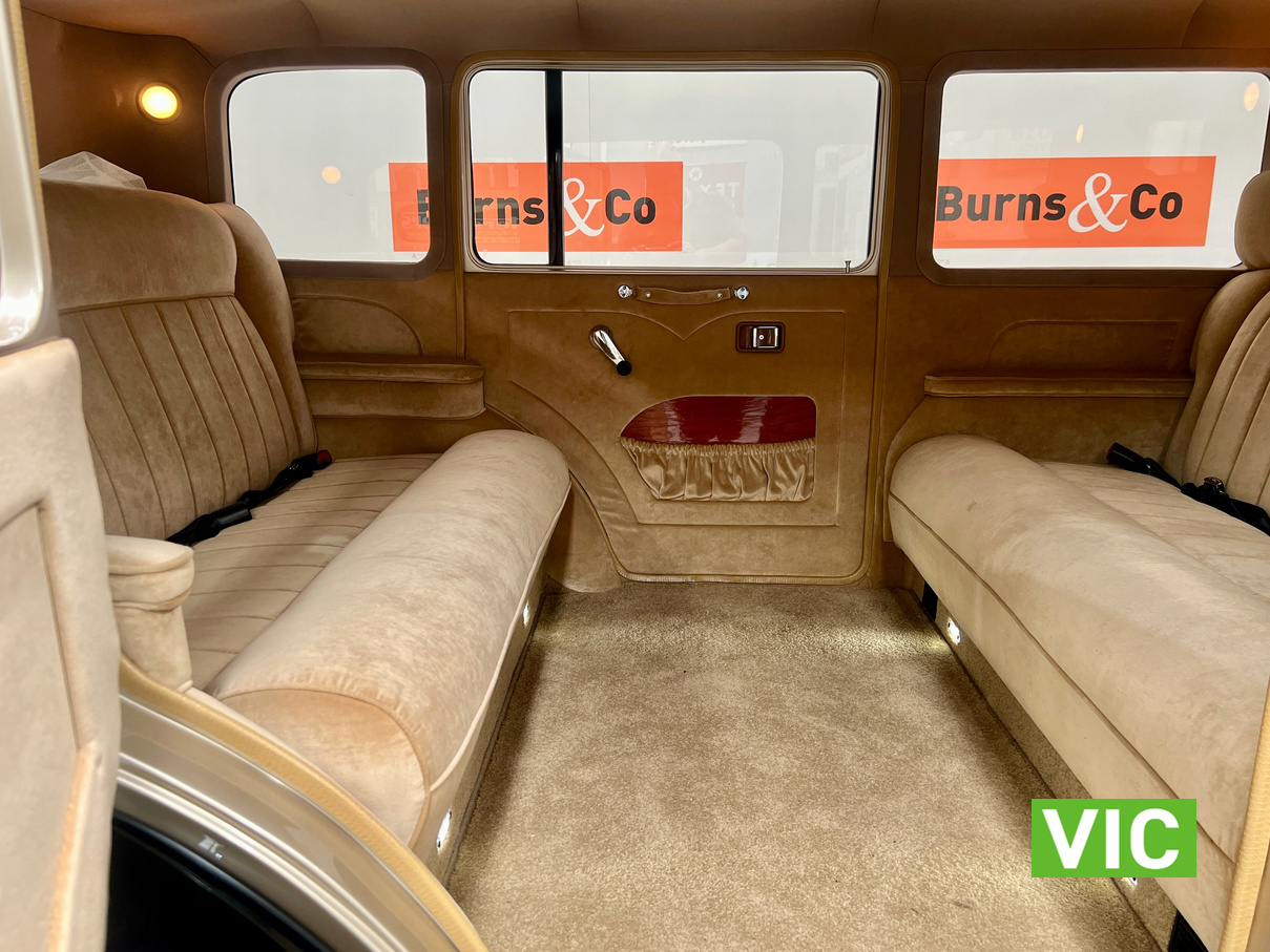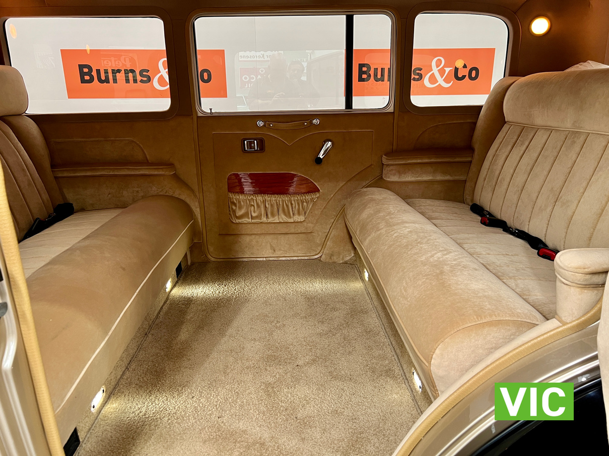 Running on dedicated LPG, this limo is fully equipped, integrated Air conditioning is fitted for those warmer days. The paintwork is flawless as is the interior upholstery and underside of the car. It is fitted with a Ford Windsor V8 EFI Block, C4, Transmission, large furnace braised convertor. 9” Diff with Ford Leaf Springs, 31 Spline Axles. BRAKES: Rear- F100 Drum Brakes; Front- HQ Holden Cast Iron Callipers, Ford Discs. FRONT END: L300 Mitsubishi Coil Front end. STEERING: Commodore Power Rack & Pinion Steering. WHEELS: 15″ Steel Rims with Custom made Hub Caps. The exterior is finished in Gold and Black while the interior has been retrimmed in a plush tan. Since completion of the build, it has only travelled 5969 Kilometres. Excellent opportunity to purchase a very well built limousine.
