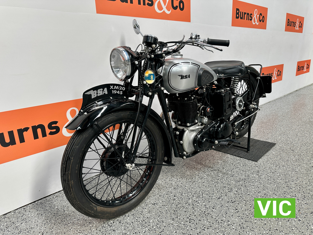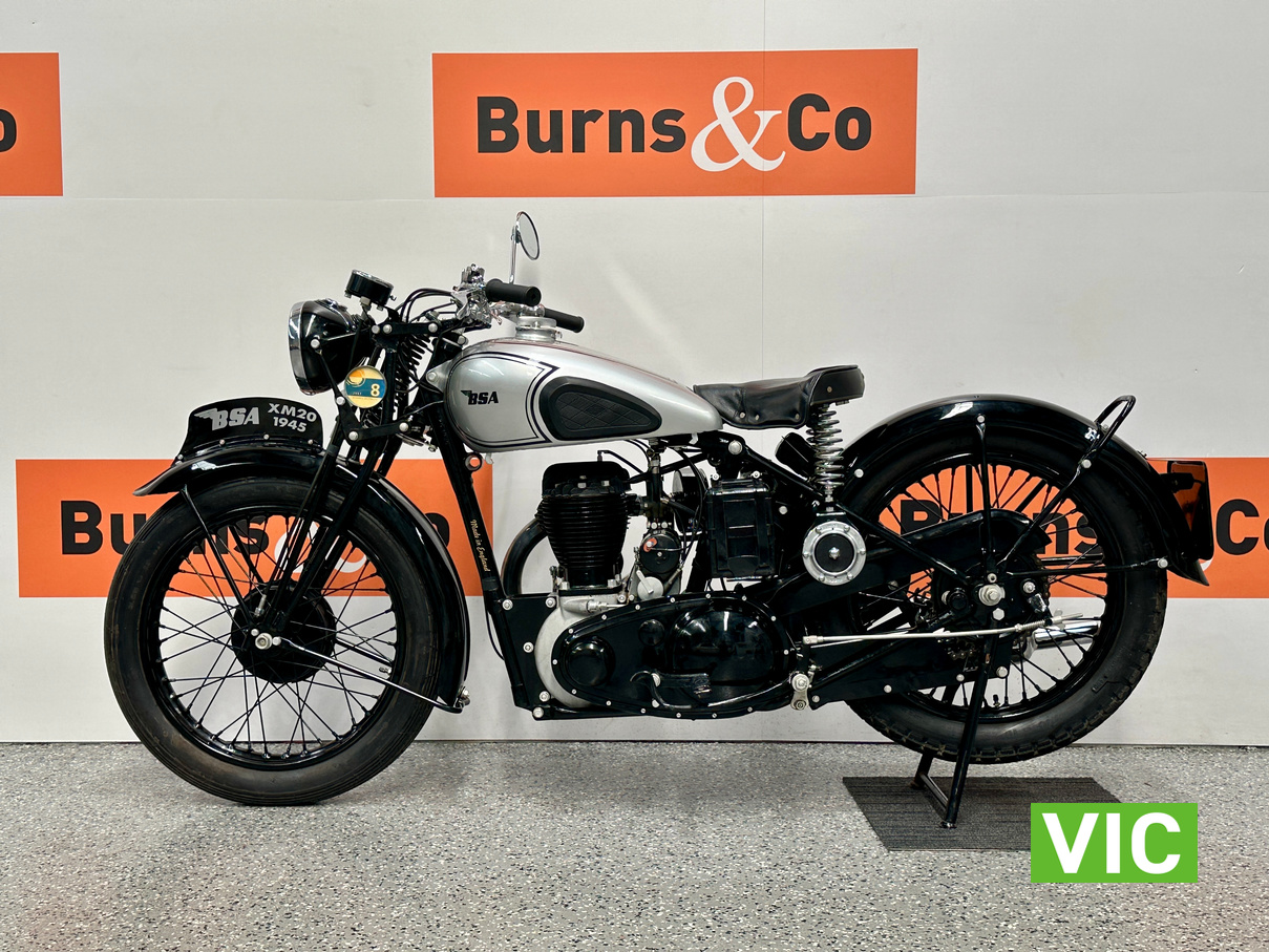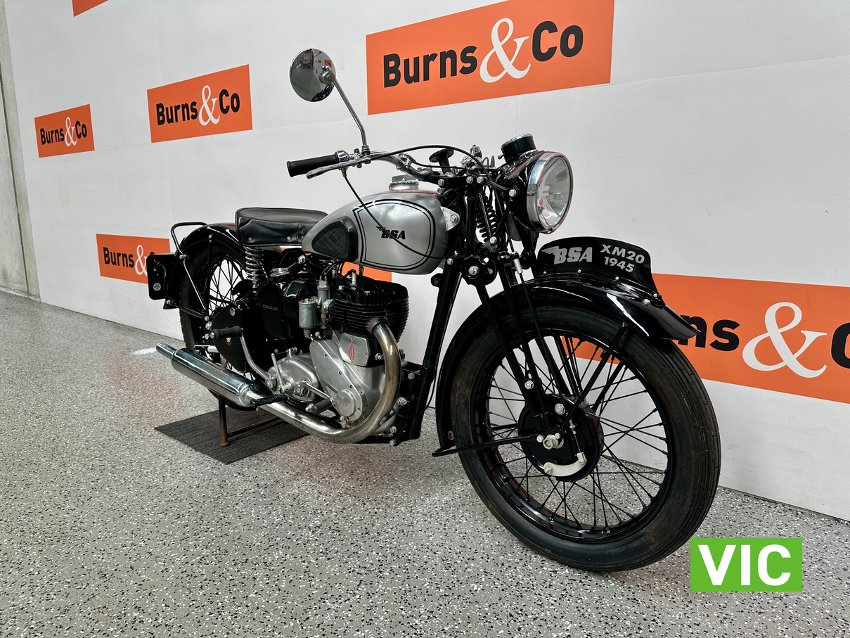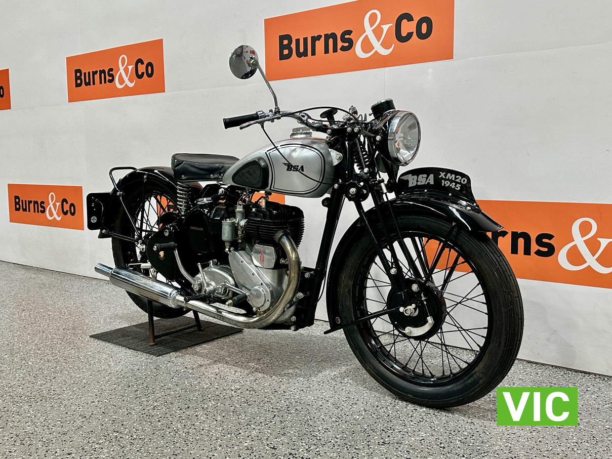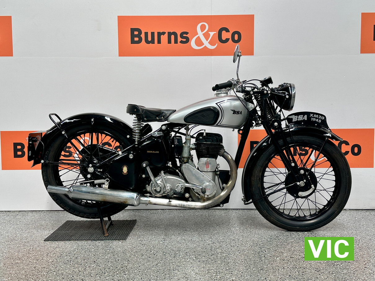 Stunning 1945 BSA XM20! Here’s one for the mid century vintage English motorcycle enthusiast, very well presented BSA XM20. Genuine civilian delivered XM20. Full museum restoration approximately 19 years ago. Last registered in WA in 2007. Has been in dry storage in a private collection since. Vendor advises that it runs well having only covered 96 miles since restoration. Great rally motorcycle as parts are easily available.