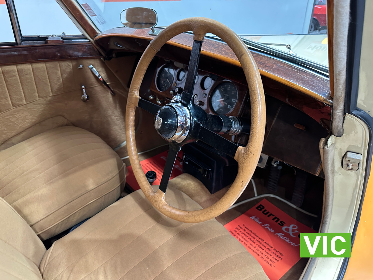 Driven into our Bayswater showroom from rural Victoria. This Mark V has spent most of its life in Western, owned by a doctor in WA, it was well known in the area. In recent years it has participated in many motoring events and has been the recipient of awards for best in its class. For added comfort, air conditioning has been fitted along with power steering, a brake booster and seat belts to make this a really comfortable driver still retaining its 1940s charm. An ideal club car and one that’s sure to turn heads.