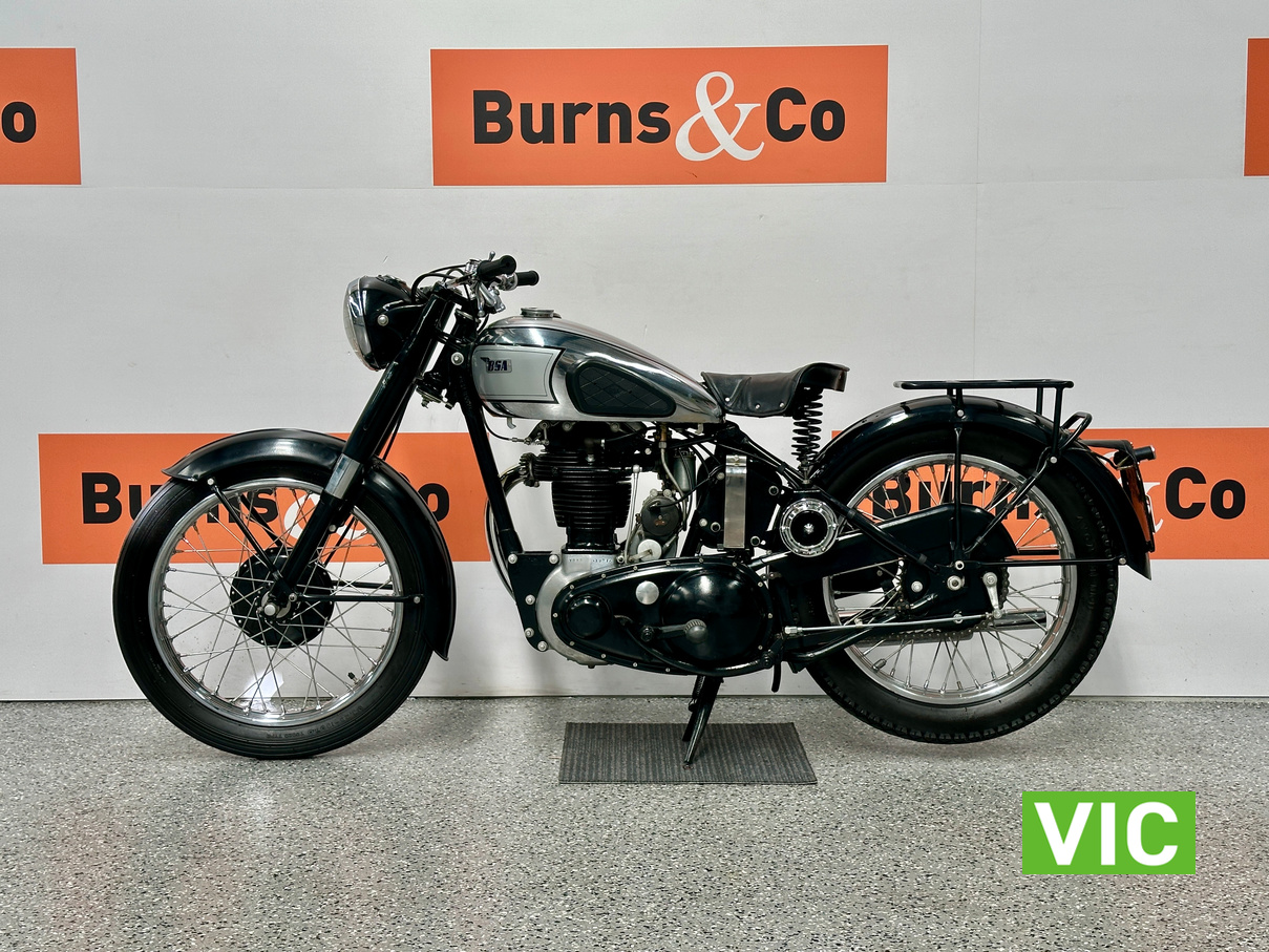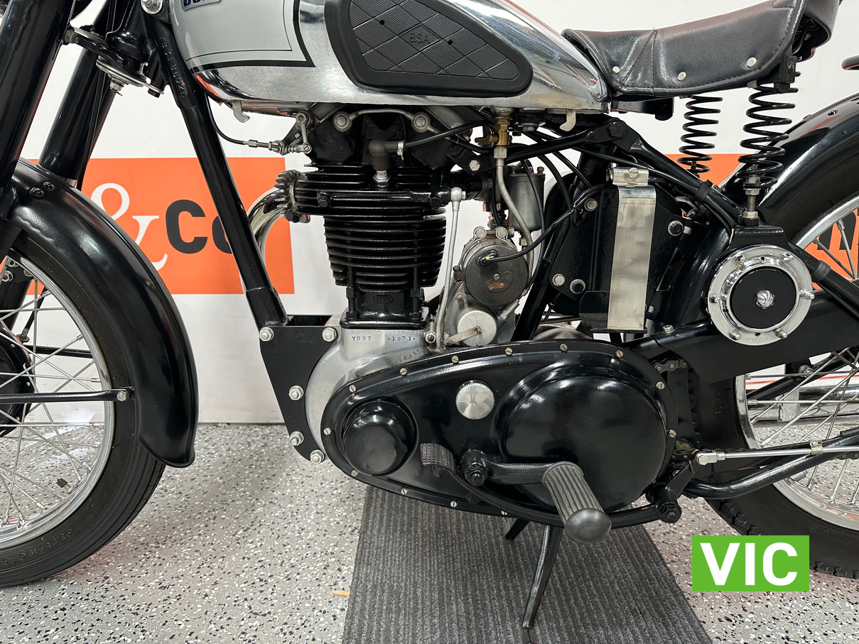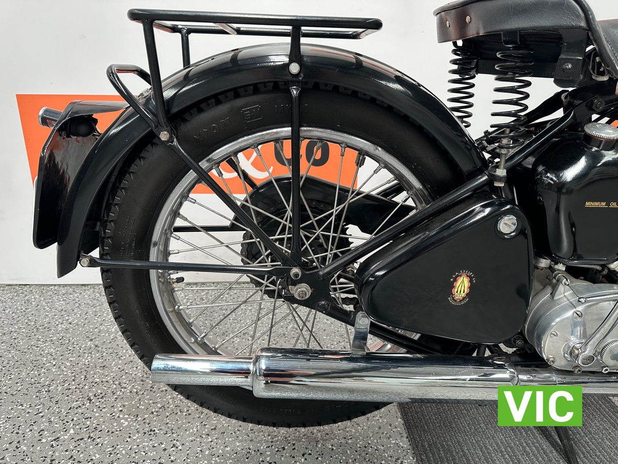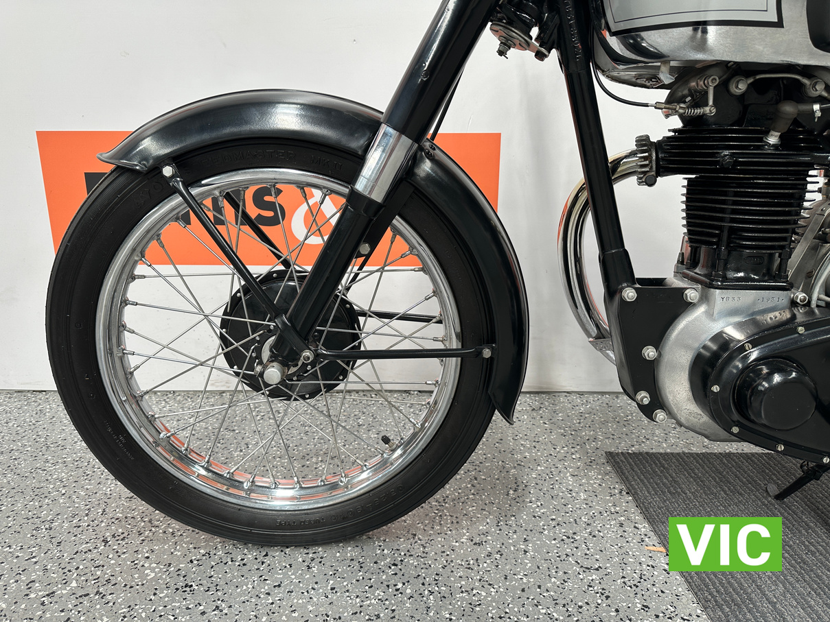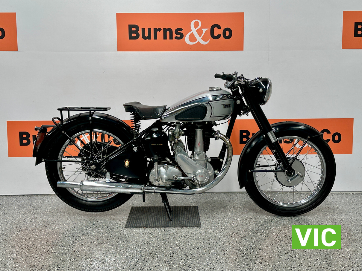 Classic British motorcycle in excellent condition! A full rebuild of the engine has recently taken place resulting in a running example. Very collectable model, introduced in 1947 as a 1948 model, the BSA B33 was a 499cc “all-iron” OHV single, acting as a post-WWII workhorse derived from the 350cc B31. Known for extreme reliability, the 1948 rigid-frame, telescopic-fork model was popular for sidecar work, cruising at 60 mph, and capable of over 70 mph. It featured a 85mm x 88mm bore/stroke. Excellent example perfect for the museum or collector.