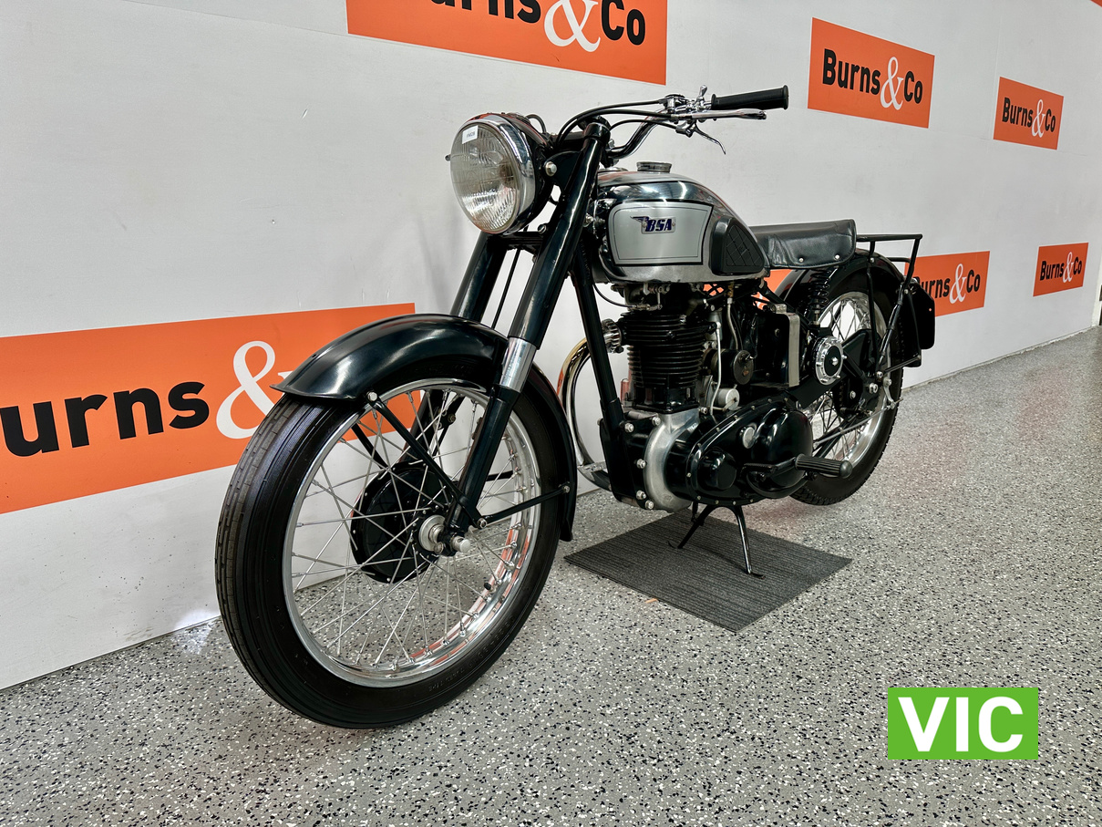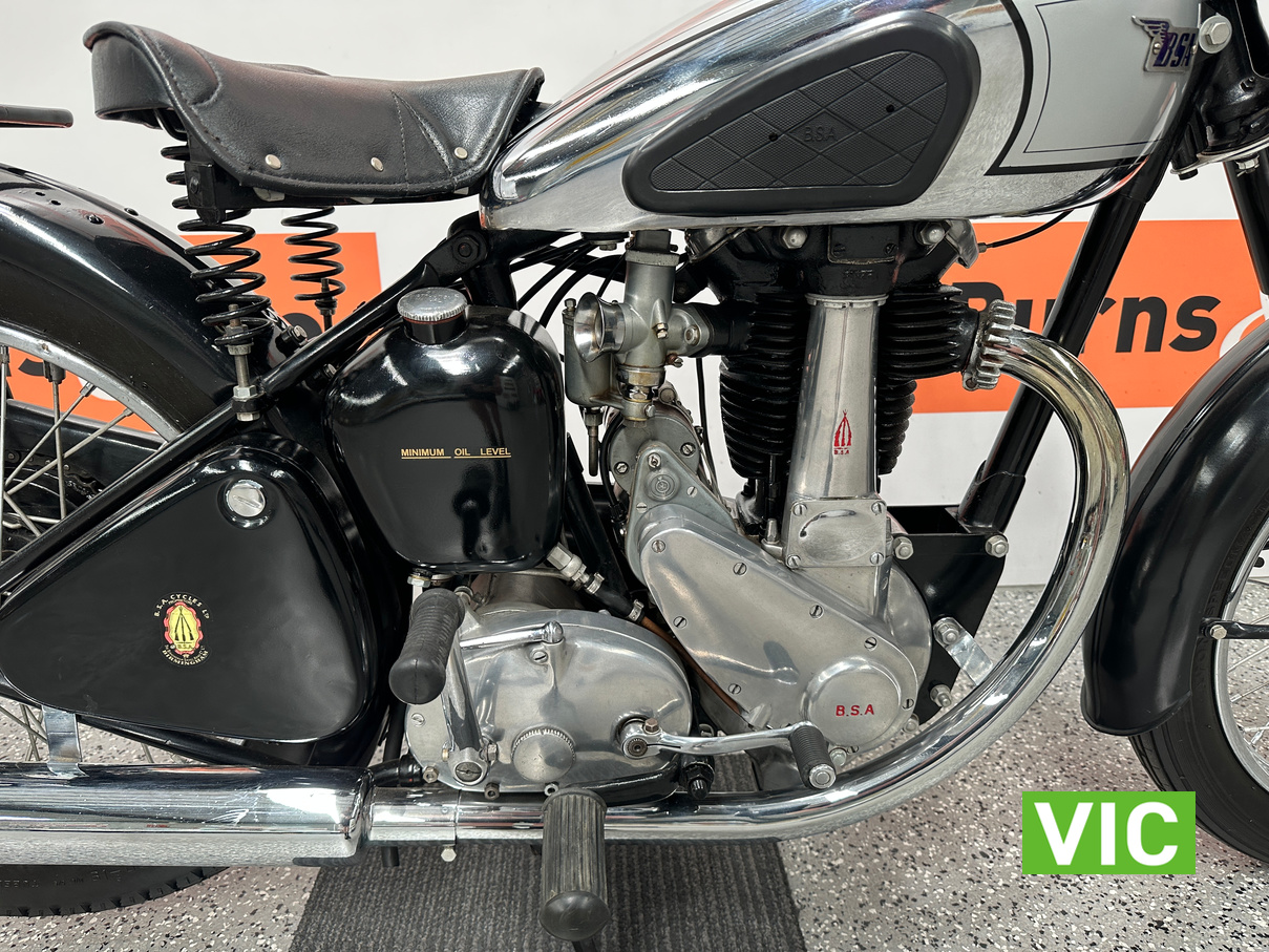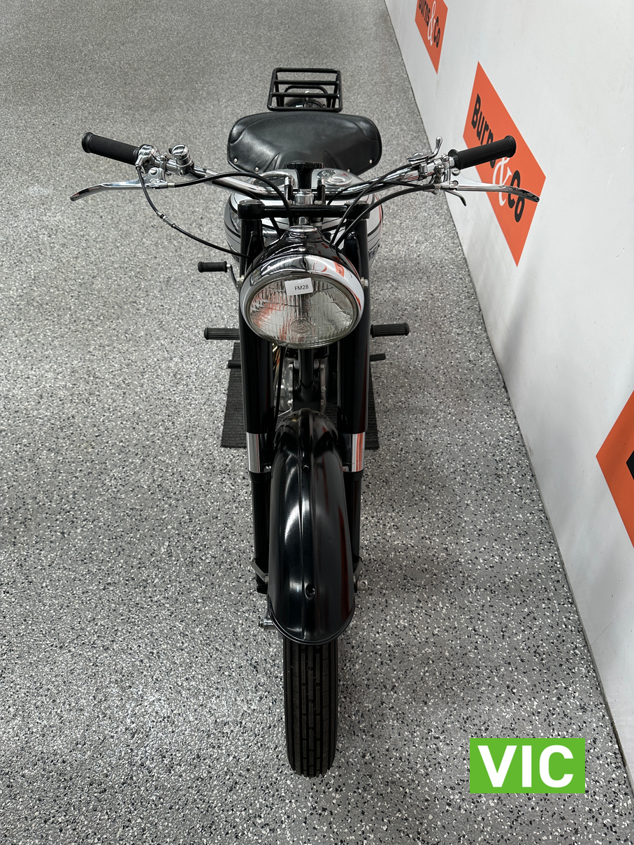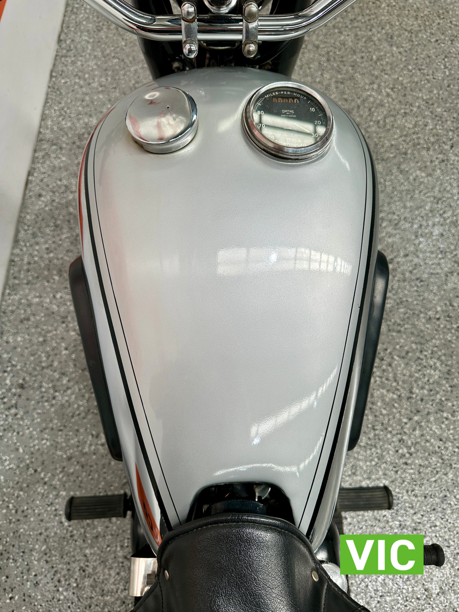 Classic British motorcycle in excellent condition! A full rebuild of the engine has recently taken place resulting in a running example. Very collectable model, introduced in 1947 as a 1948 model, the BSA B33 was a 499cc “all-iron” OHV single, acting as a post-WWII workhorse derived from the 350cc B31. Known for extreme reliability, the 1948 rigid-frame, telescopic-fork model was popular for sidecar work, cruising at 60 mph, and capable of over 70 mph. It featured a 85mm x 88mm bore/stroke. Excellent example perfect for the museum or collector.