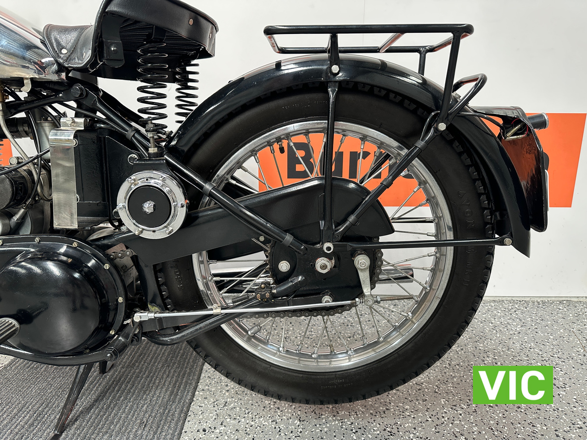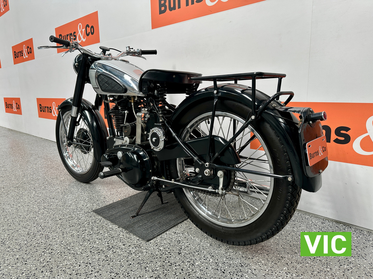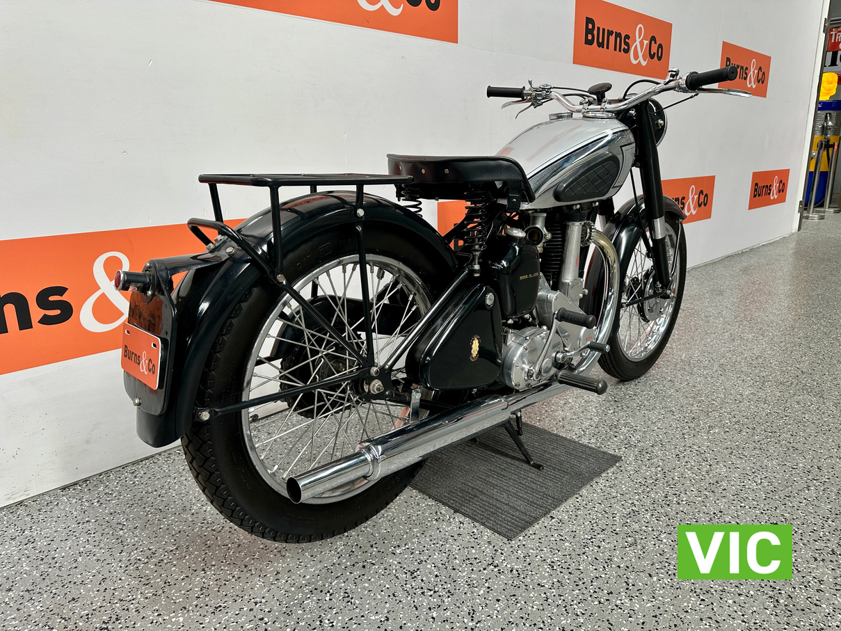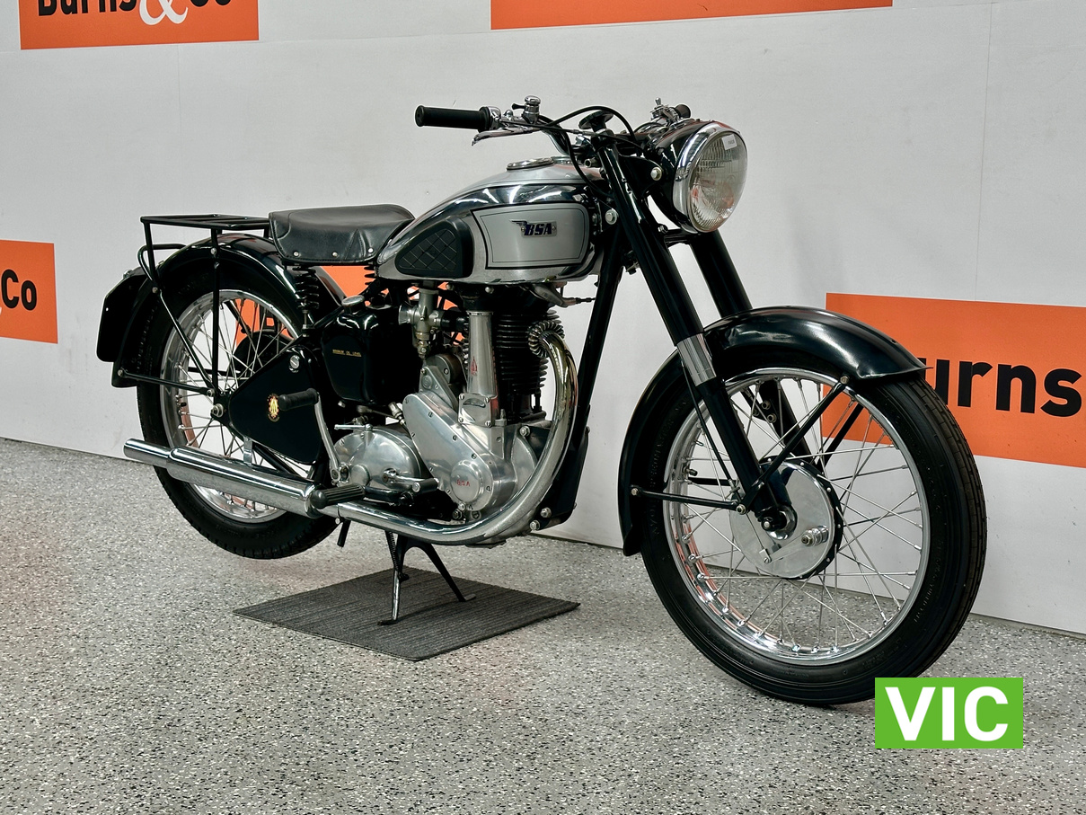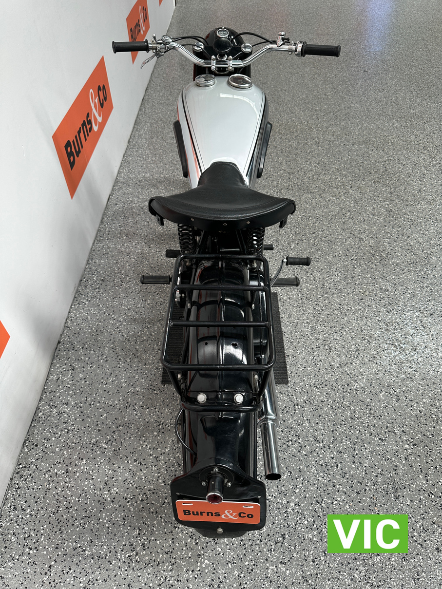 Classic British motorcycle in excellent condition! A full rebuild of the engine has recently taken place resulting in a running example. Very collectable model, introduced in 1947 as a 1948 model, the BSA B33 was a 499cc “all-iron” OHV single, acting as a post-WWII workhorse derived from the 350cc B31. Known for extreme reliability, the 1948 rigid-frame, telescopic-fork model was popular for sidecar work, cruising at 60 mph, and capable of over 70 mph. It featured a 85mm x 88mm bore/stroke. Excellent example perfect for the museum or collector.