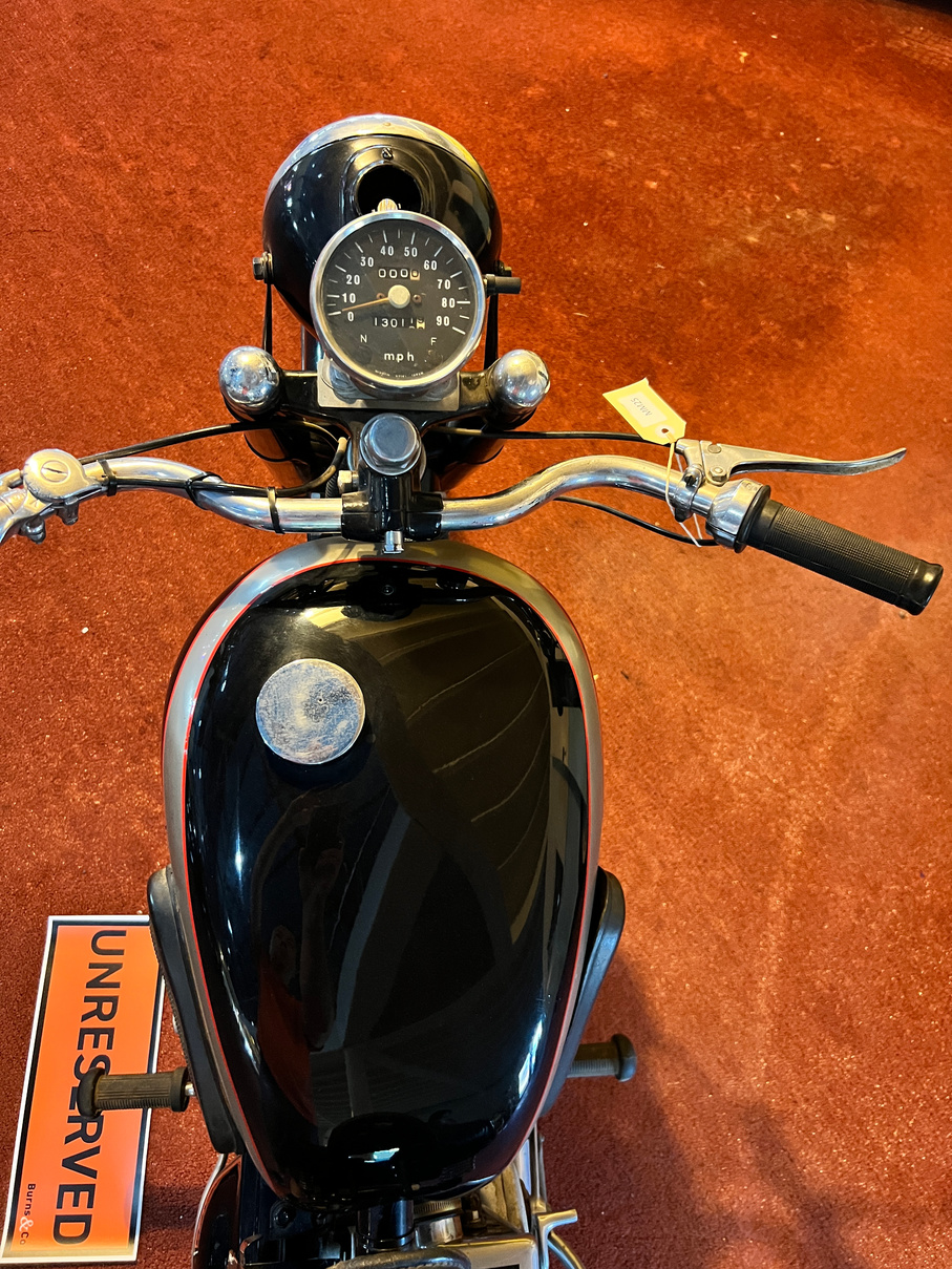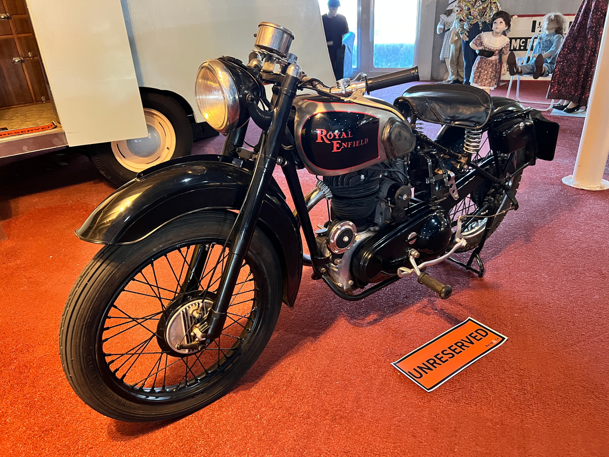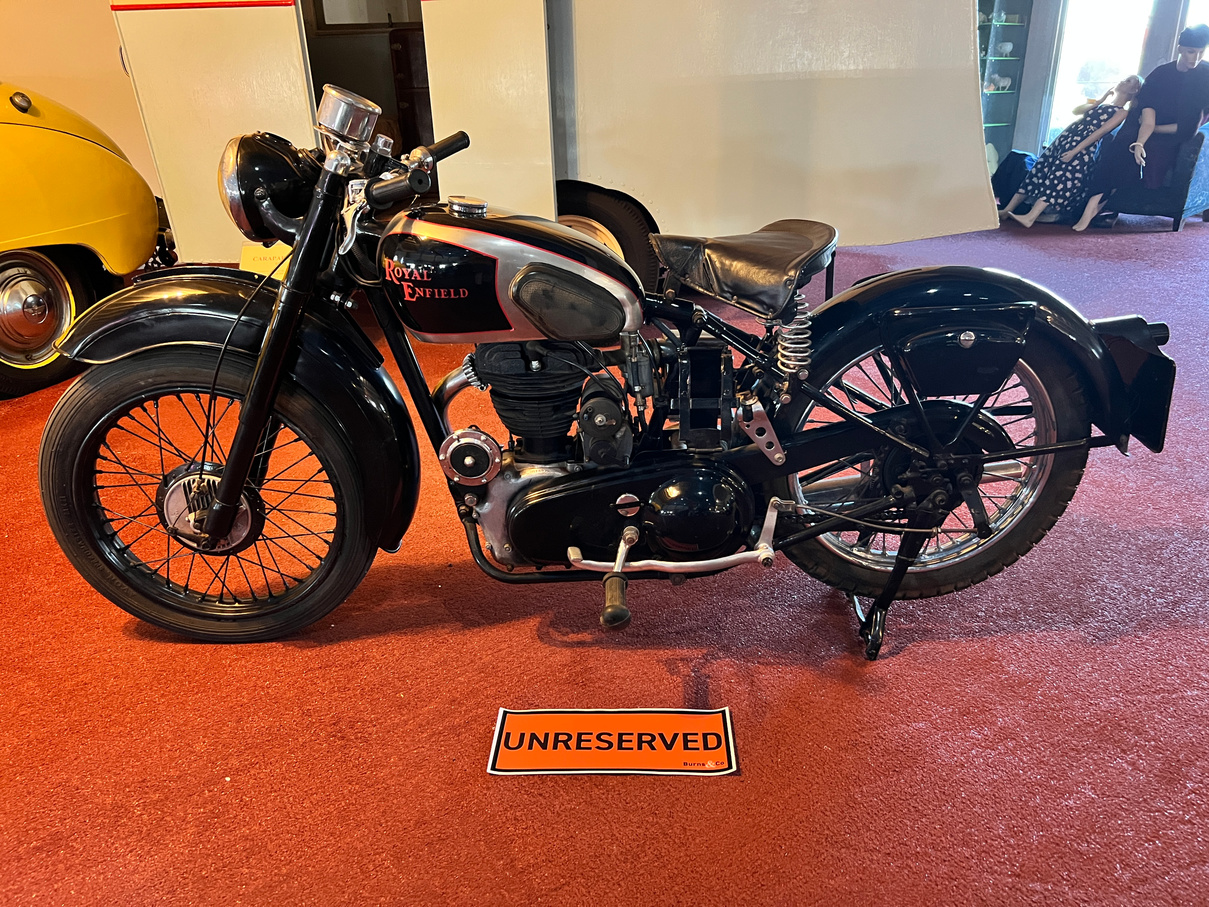 Royal Enfield motorcycle, has been under the same ownership for over 12 years. Vendor advises it has not been run or started under his ownership. Has been on display in the McFeeters museum for some years. No attempt to stat. Appears original.