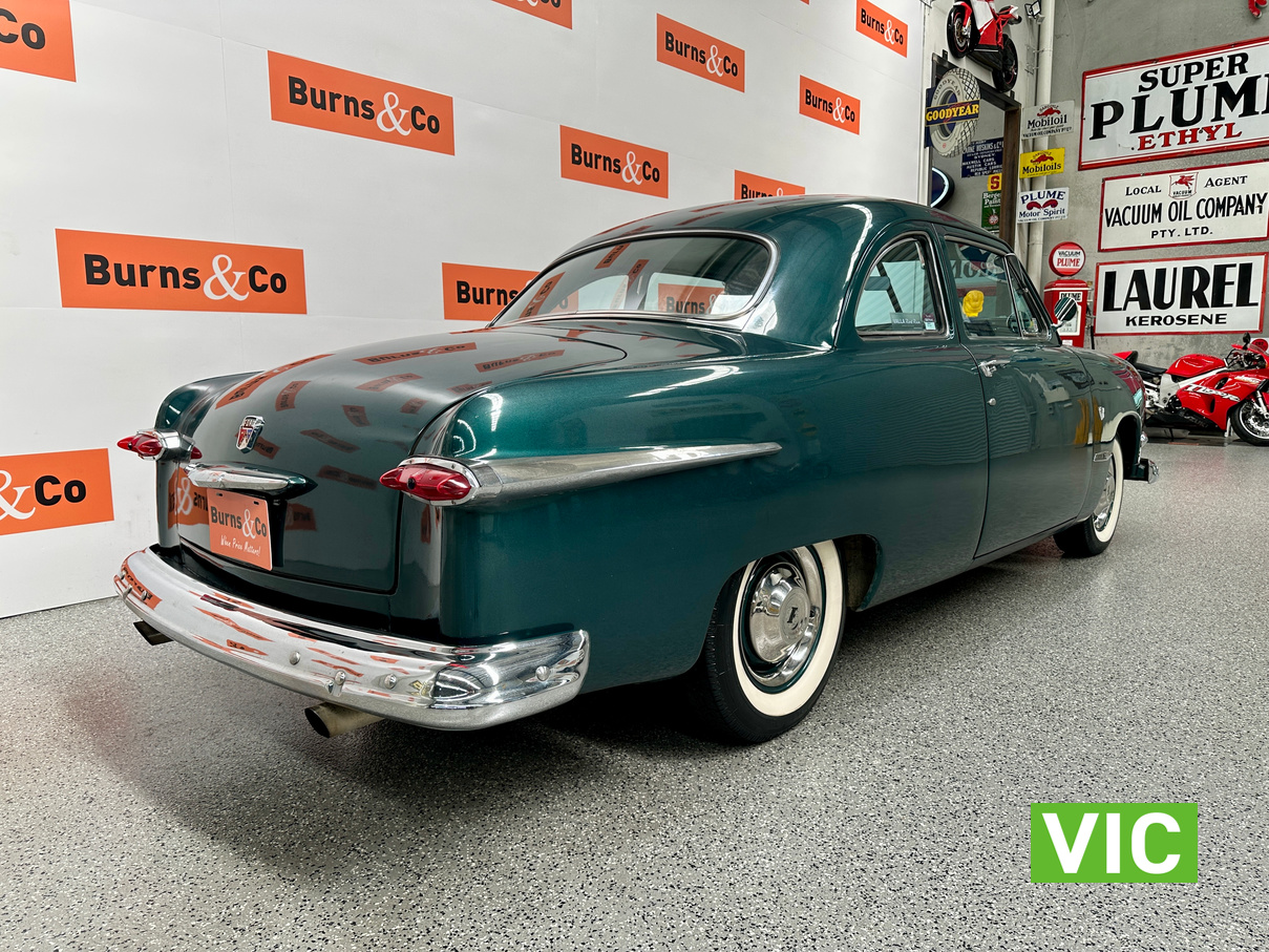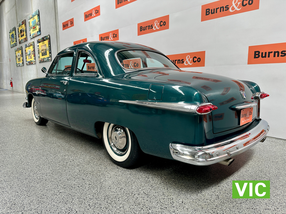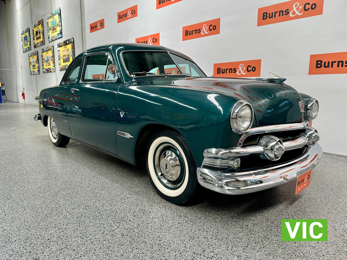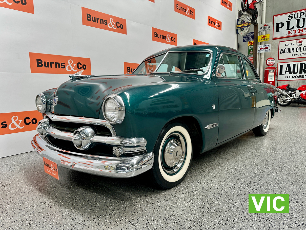 Very nicely presented 1951 Ford Twin Spinner Business coupe. Finished in an eye catching green with 2 tone green interior. An exceptionally solid example all round, driven into our Bayswater showroom, it has been on New South Wales and Victorian club plates (sold unregistered). A large folder of receipts from its restoration in the USA dating back to the early-mid 2000s are also supplied along with maintenance receipts throughout its time in Australia. This is an excellent example all round and would make a perfect weekend cruiser.