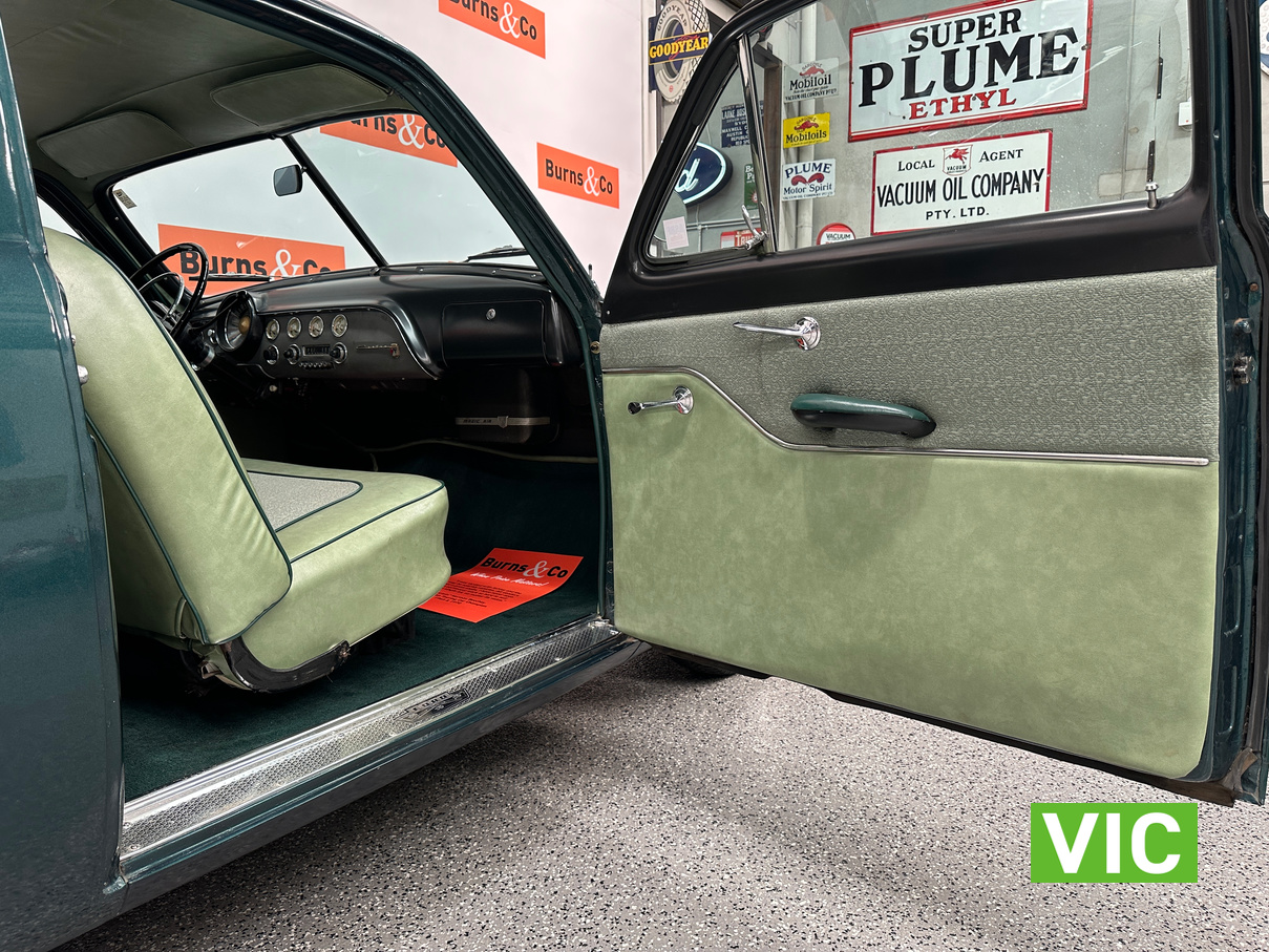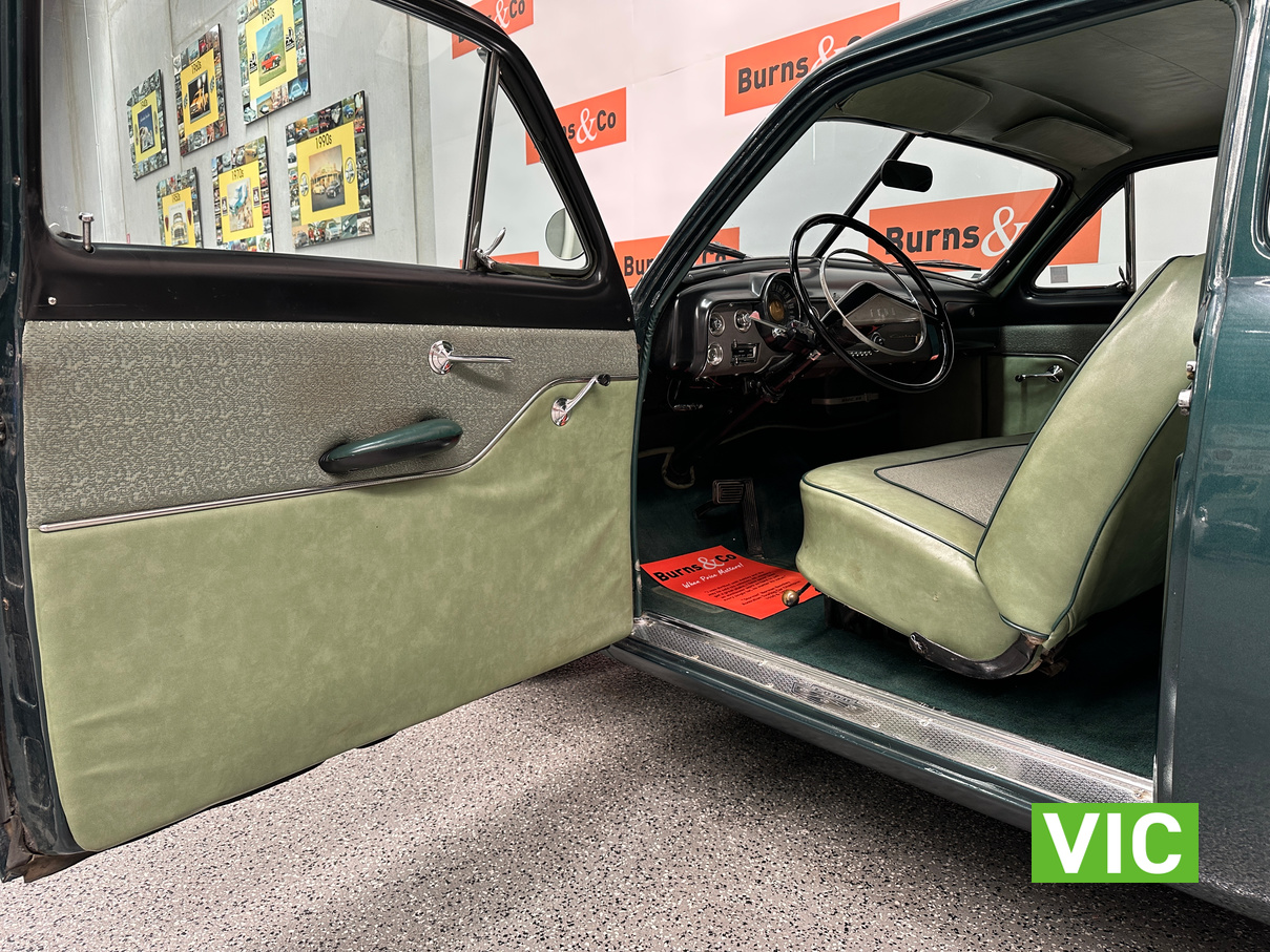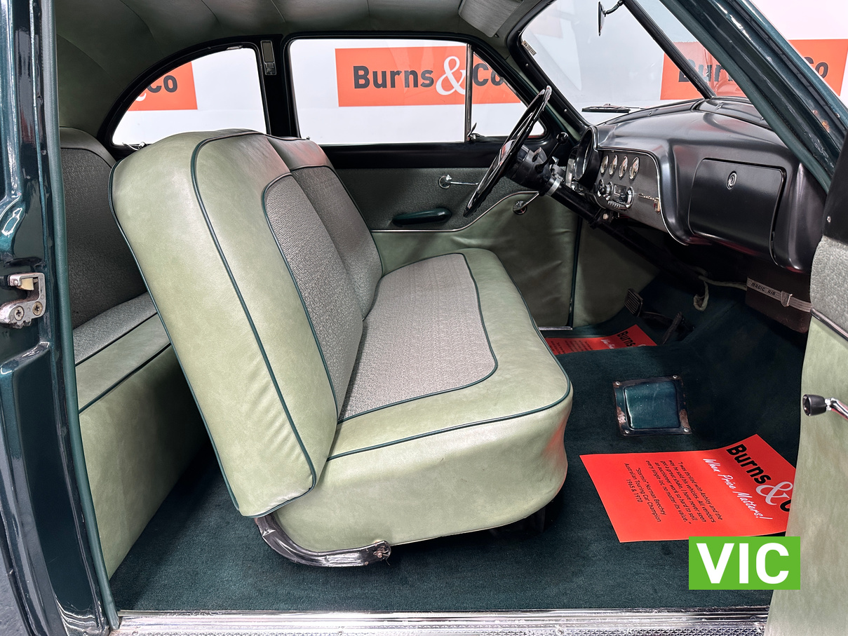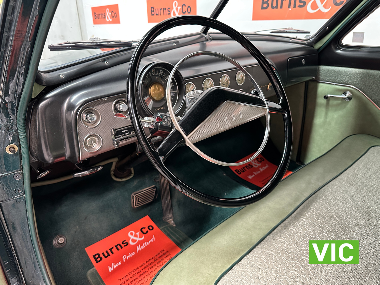 Very nicely presented 1951 Ford Twin Spinner Business coupe. Finished in an eye catching green with 2 tone green interior. An exceptionally solid example all round, driven into our Bayswater showroom, it has been on New South Wales and Victorian club plates (sold unregistered). A large folder of receipts from its restoration in the USA dating back to the early-mid 2000s are also supplied along with maintenance receipts throughout its time in Australia. This is an excellent example all round and would make a perfect weekend cruiser.