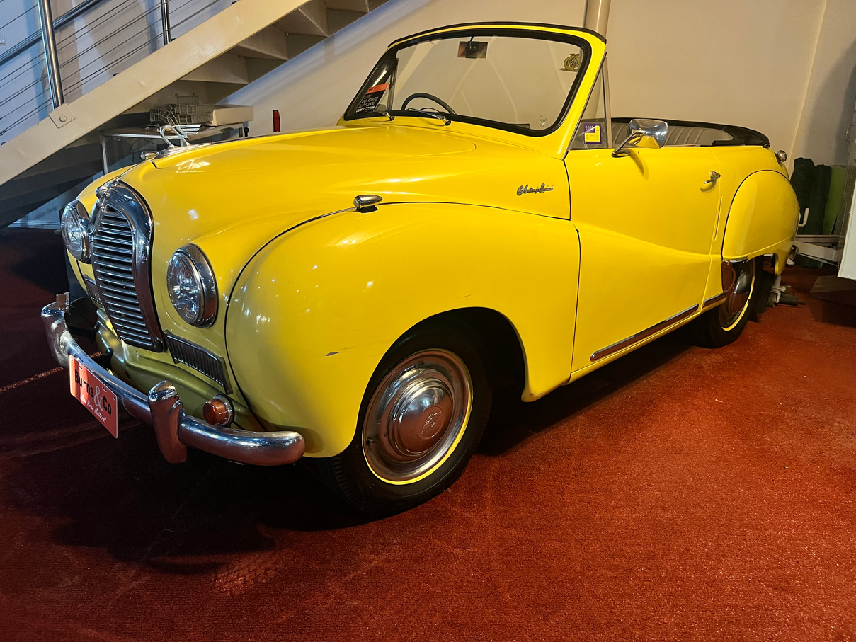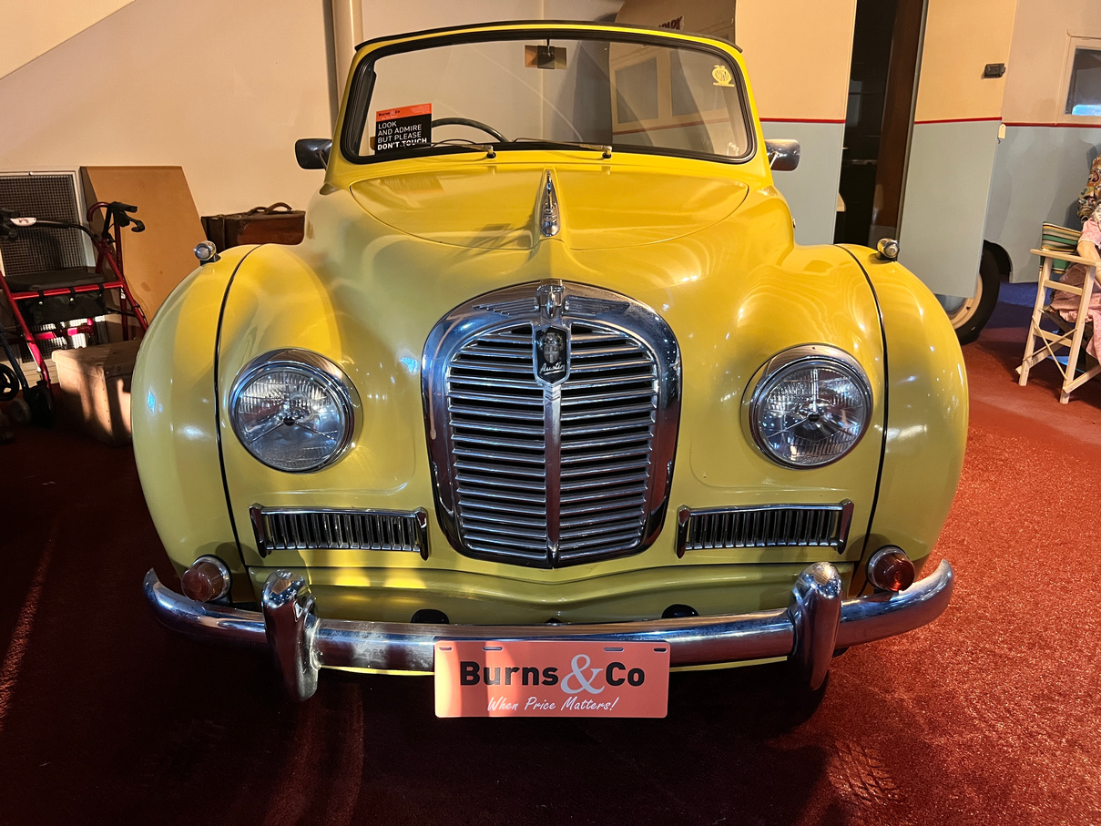Being offered UNRESERVED. Part of the McFeeters motor museum for over 16 years, this 1953 Austin A40 Somerset convertible affectionately known as Blossom is a rare and sought after model. Mrs McFeeter bought the vehicle for Mr McFeeter’s 70th birthday from their friends Mr and Mrs Palmer. Complete with the original brochure and service manual. Absolute eye catcher finished in the bright yellow. No attempt to start.