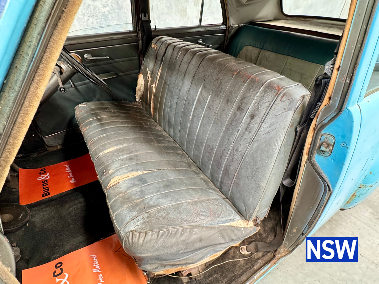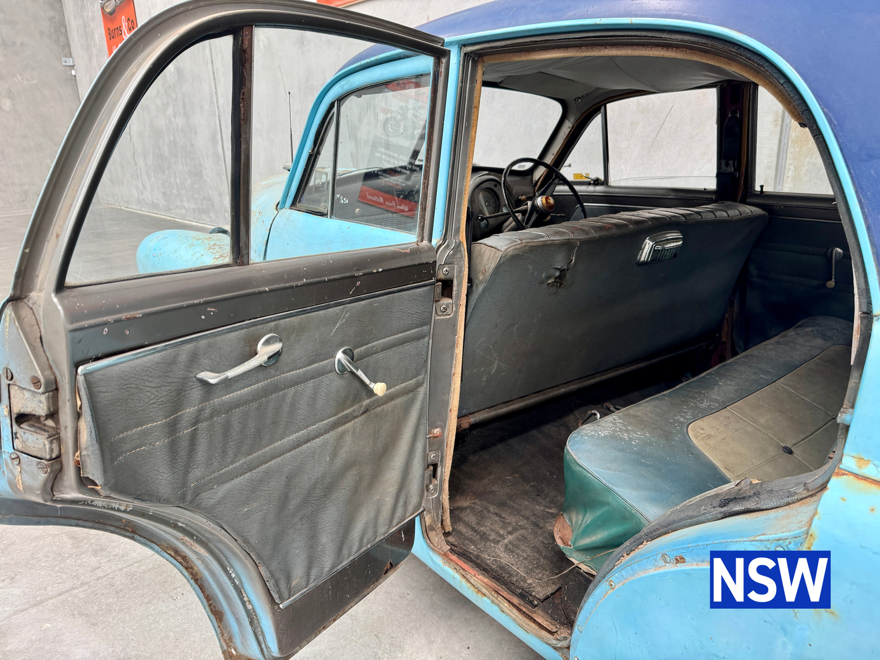 FJ 215 Standard sedan! Here’s a very solid example, perfect opportunity for a full restoration or give it a mechanical freshen up and drive as is with the patina look. Excellent original Skipper blue colour scheme. Appears to be a complete car, no attempt to start has been made. Note RH front wheel hub requires mechanical attention as the wheel is loose.