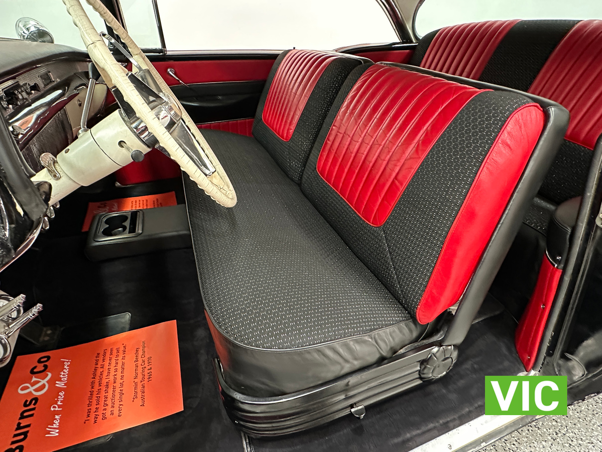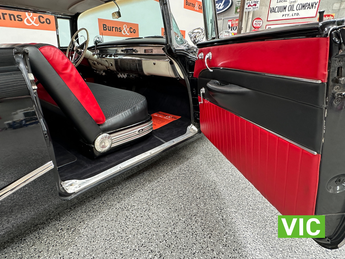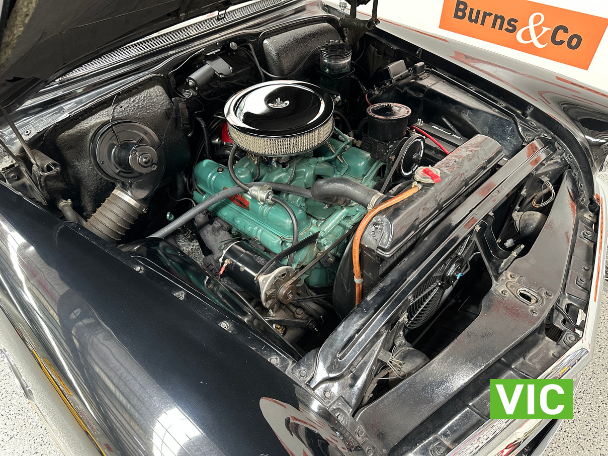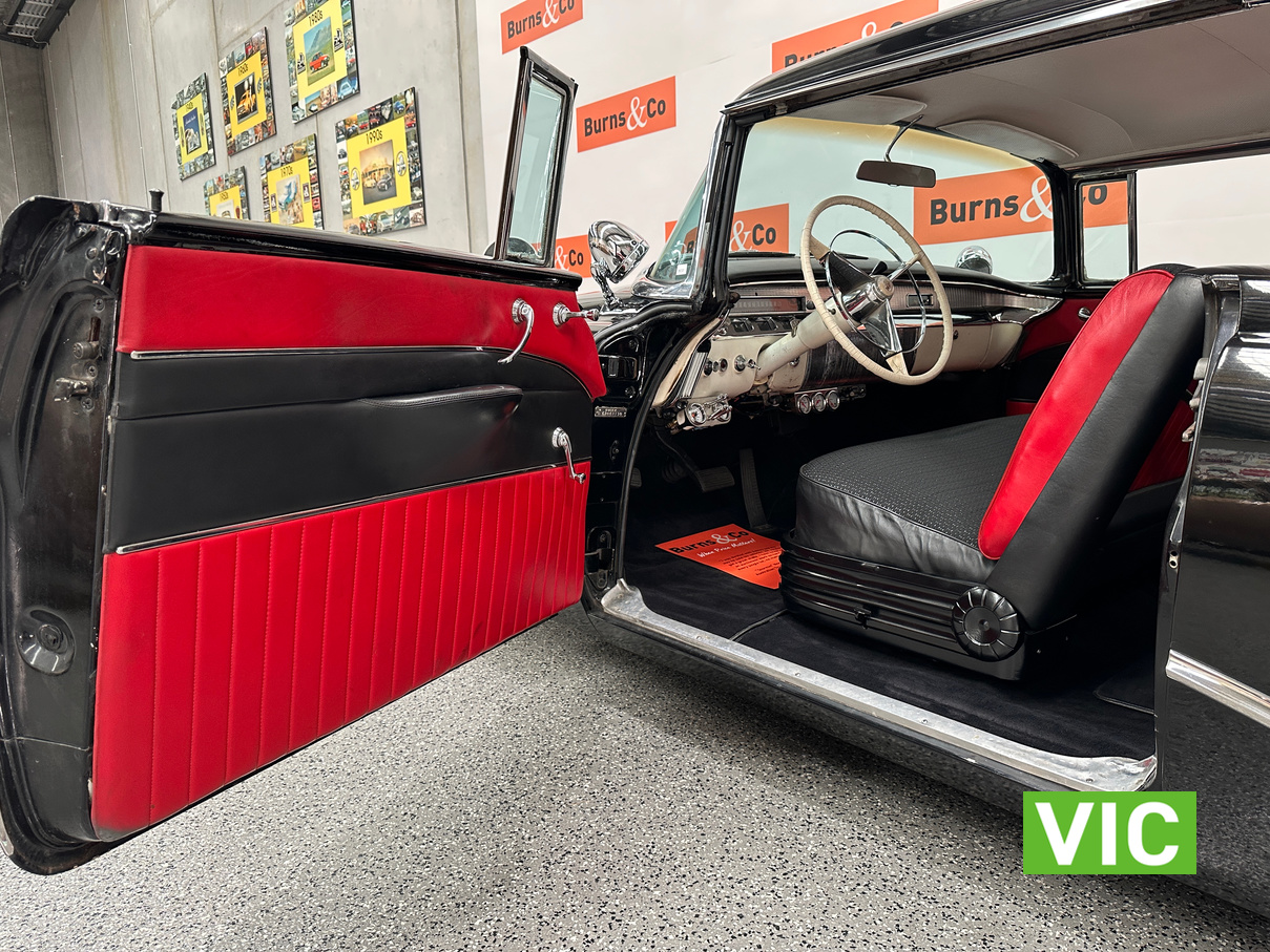 From the mirror finished black duco, to the stunning reupholstered interior this is a very good example. Originally a Californian car, it has been registered on Victorian Club Plates and was driven into our Bayswater showroom (Sold unregistered). Fitted with 322 Nailhead V8 coupled to the 2 speed Dynaflow transmission, noble customs air ride suspension, Edelbrock carburetor, MSD electronic ignition while the brake system including master cylinder and booster have been rebuilt.