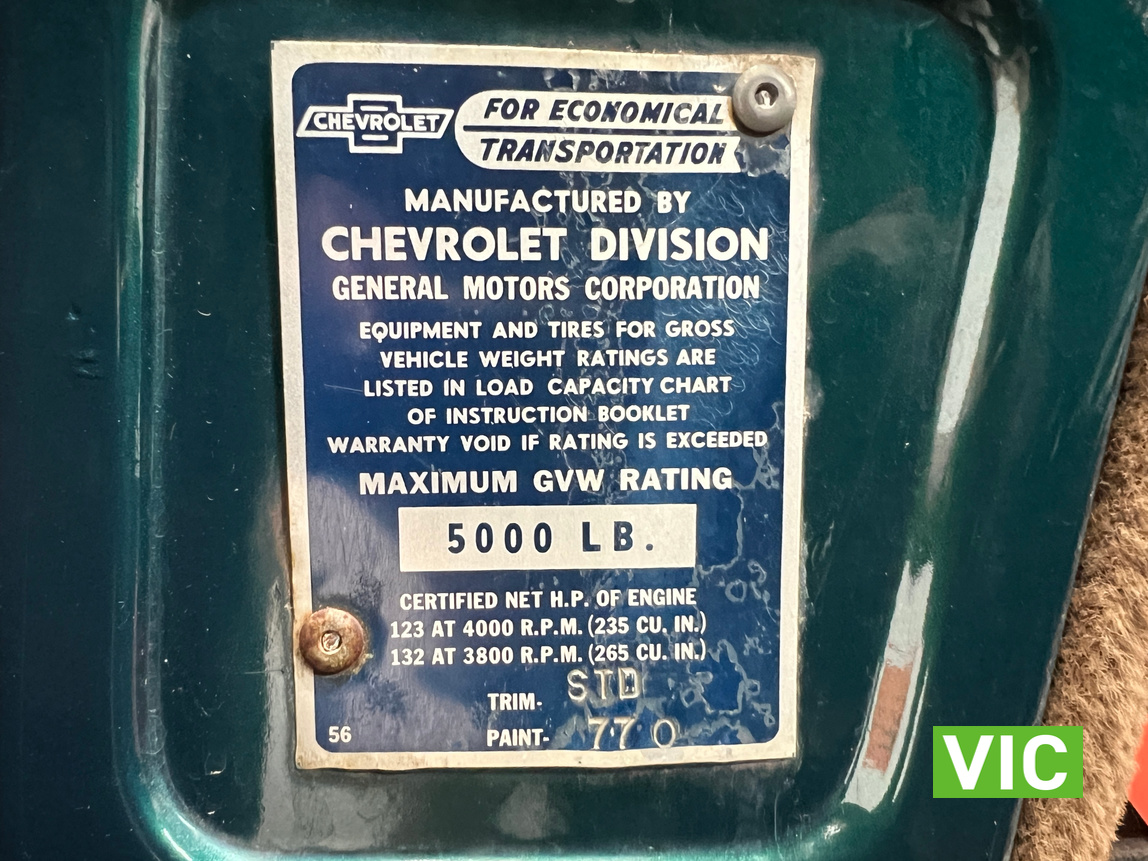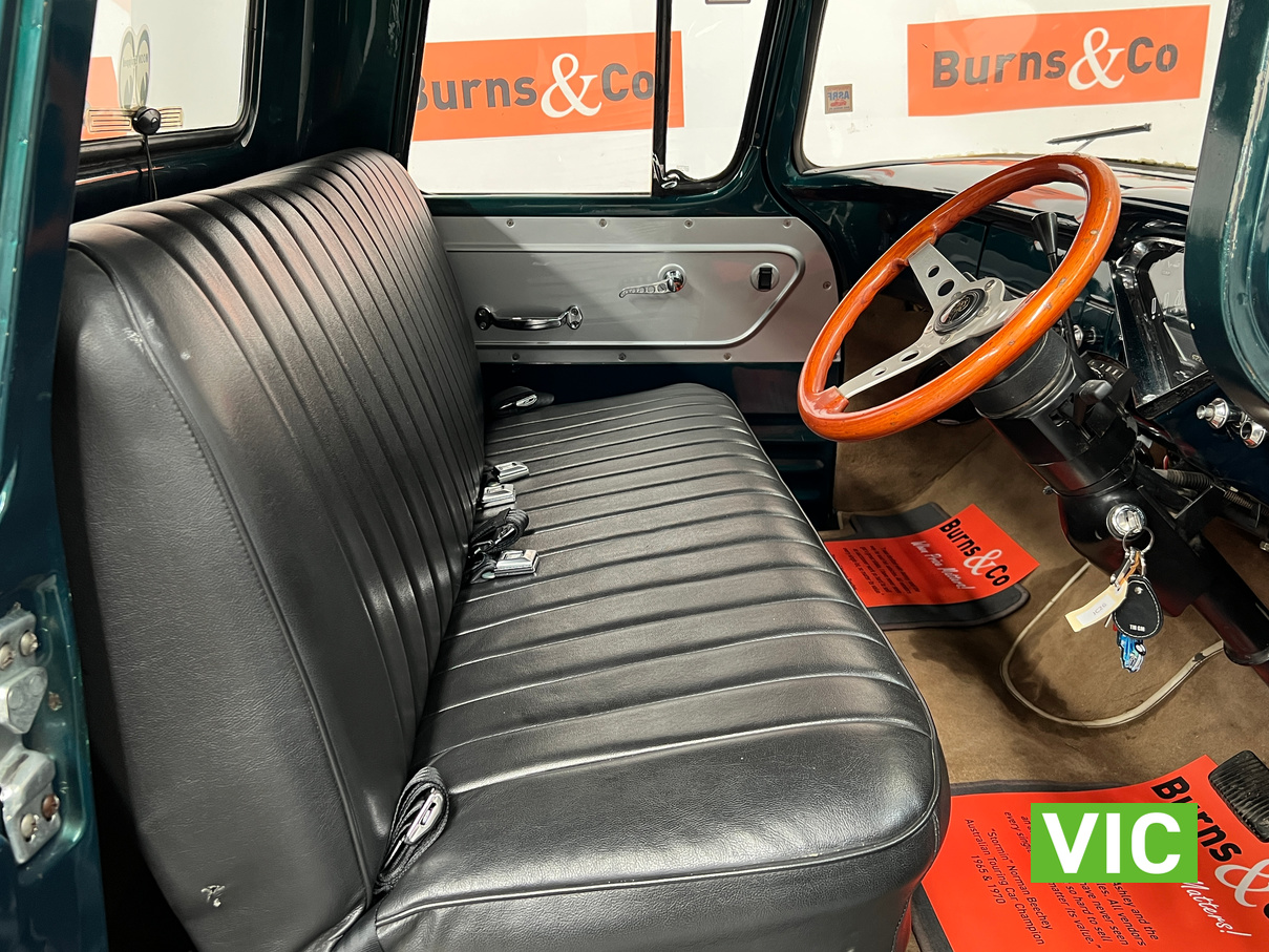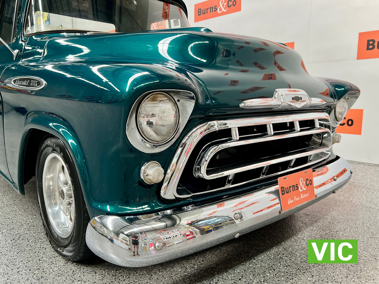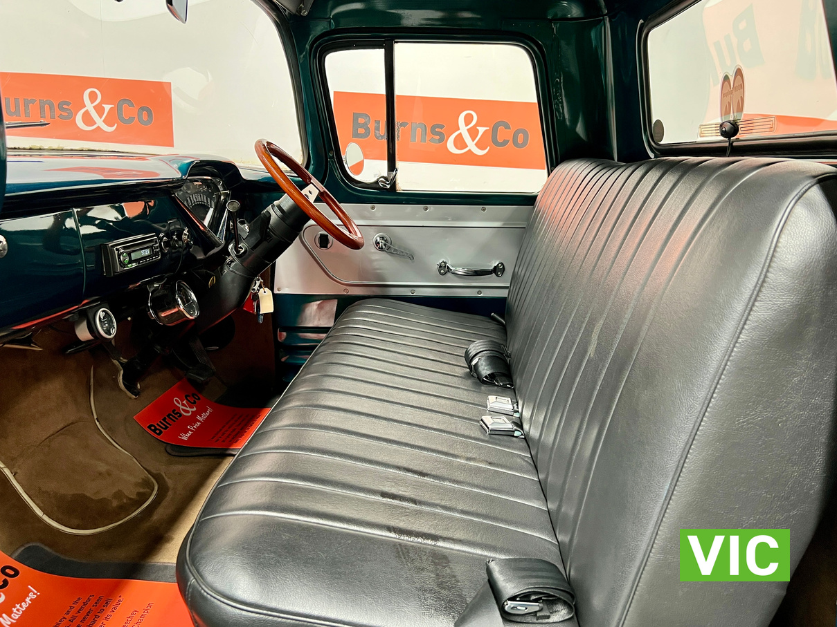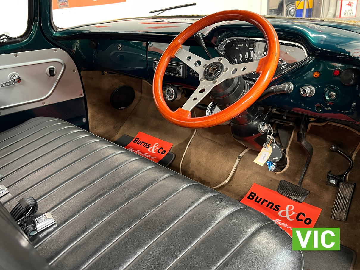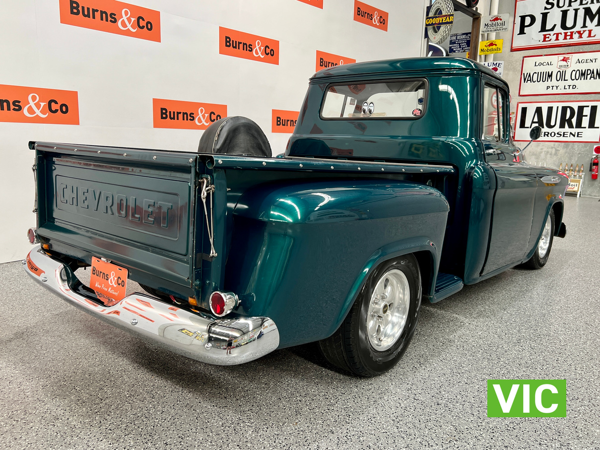 Being offered as part of a deceased estate. Very well presented 1957 Chevrolet 3100, fitted with the big 307 V8 coupled to an automatic transmission. Finished in a vibrant coat of metallic green with a bold black interior. Chrome-work is in great shape and gleams as is the body and general condition of the car. Has been on Victorian club registration (sold unregistered). Fantastic opportunity for a great weekend cruiser.