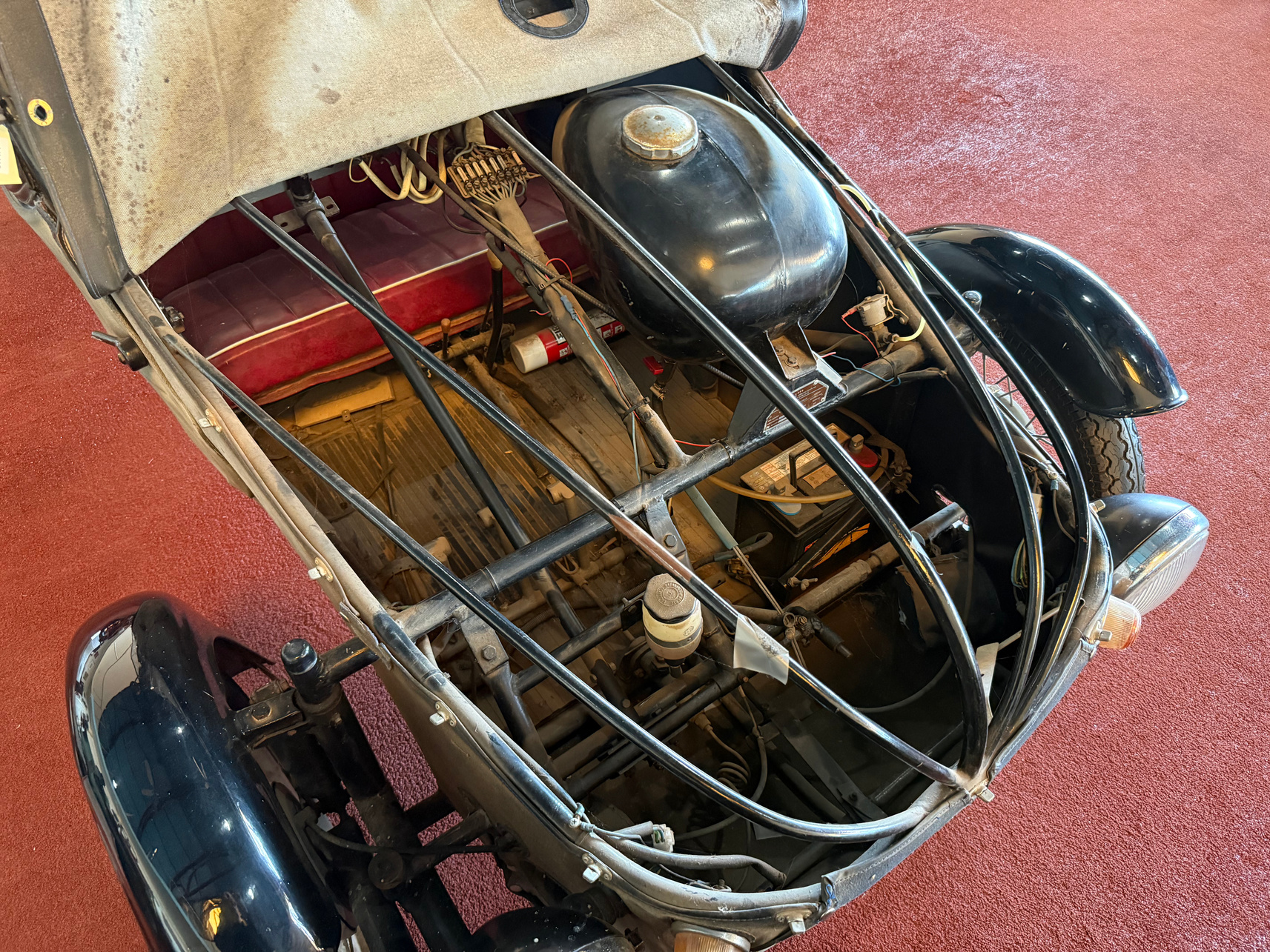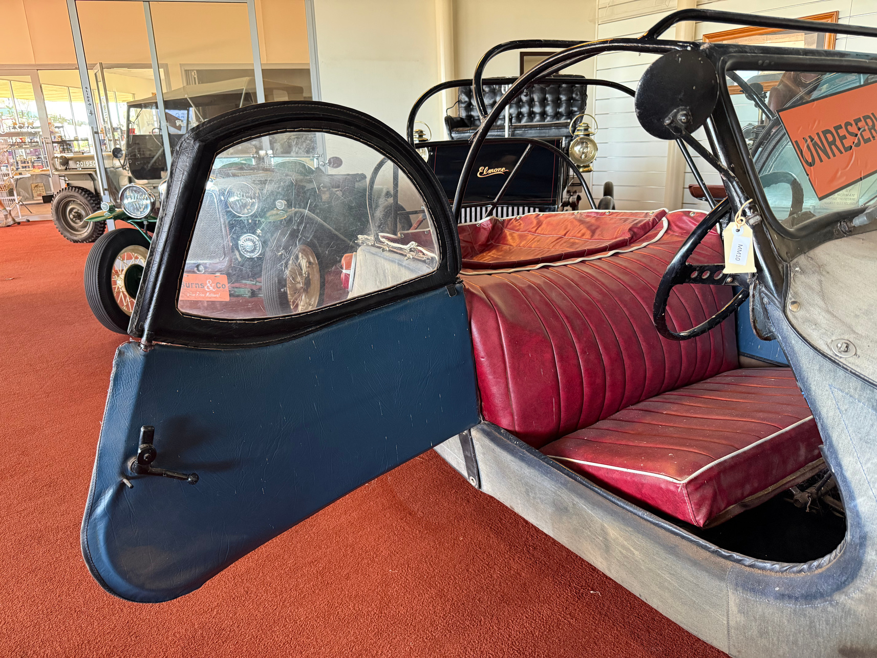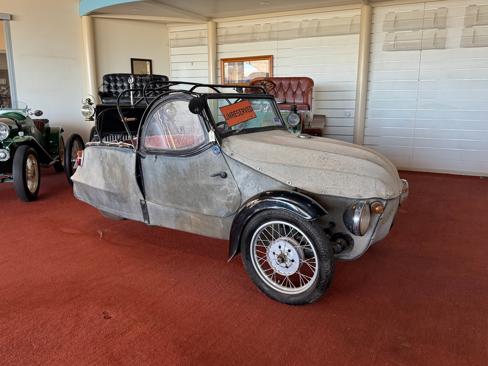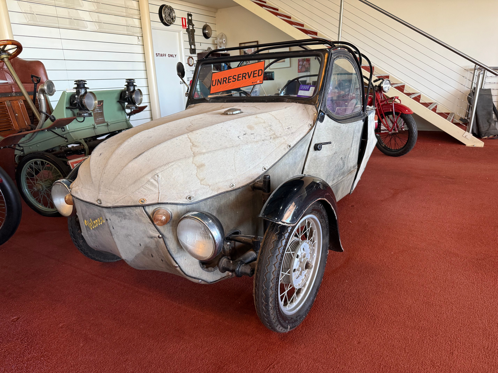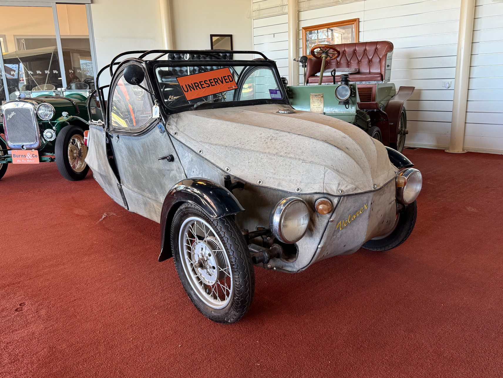 Being offered UNRESERVED. Part of the McFeeters motor museum since its opening, this 1958 Velorex 16/350 is a unique and head turning talking point. Fitted with a motorcycle engine, Jawa 350 – 572, two-stroke two cylinders with forced air cooling, 344 cm³, 11.8 kW (16 HP) with 4,750 rpm, it was capable of achieving a cruising speed of60 km/h (max 85 km/h). Believed to be covered in old army tent canvas, the museum advises it was last run and drove approximately 13 years ago. A folder of paperwork including owner’s handbook and additional documentation is provided with the car. Measures 3350mm Length, 1400mm Width and 1350mm Height.