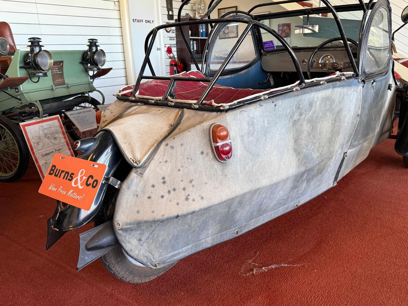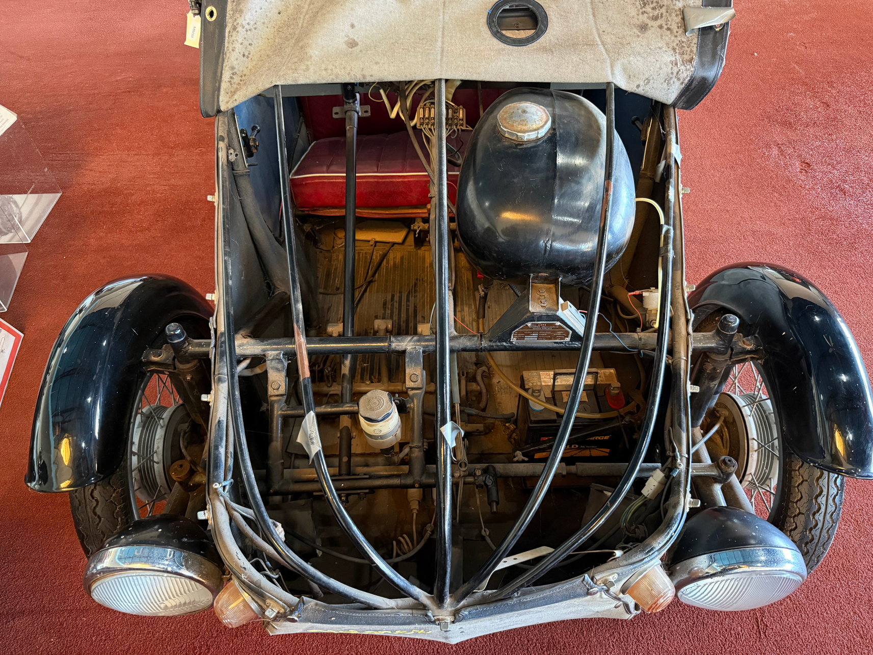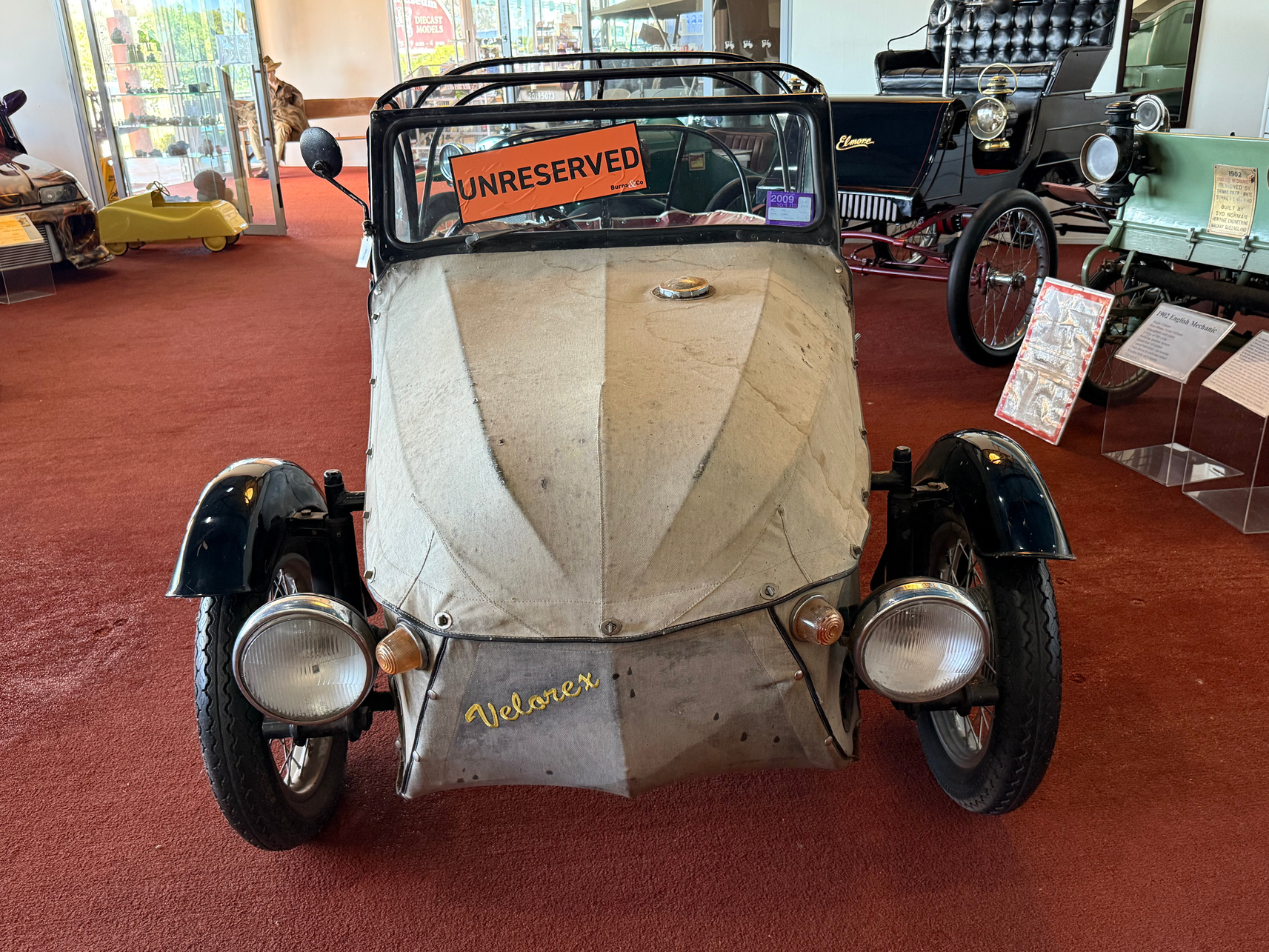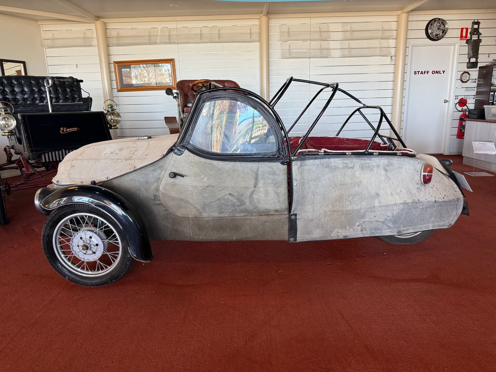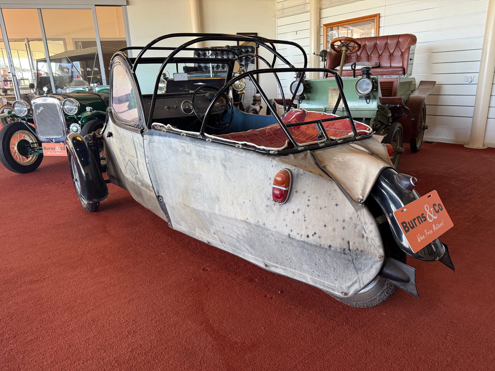 Being offered UNRESERVED. Part of the McFeeters motor museum since its opening, this 1958 Velorex 16/350 is a unique and head turning talking point. Fitted with a motorcycle engine, Jawa 350 – 572, two-stroke two cylinders with forced air cooling, 344 cm³, 11.8 kW (16 HP) with 4,750 rpm, it was capable of achieving a cruising speed of60 km/h (max 85 km/h). Believed to be covered in old army tent canvas, the museum advises it was last run and drove approximately 13 years ago. A folder of paperwork including owner’s handbook and additional documentation is provided with the car. Measures 3350mm Length, 1400mm Width and 1350mm Height.