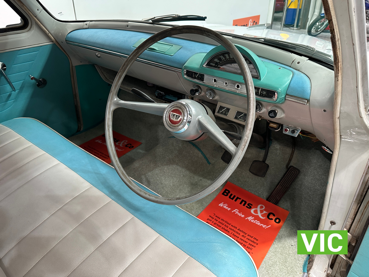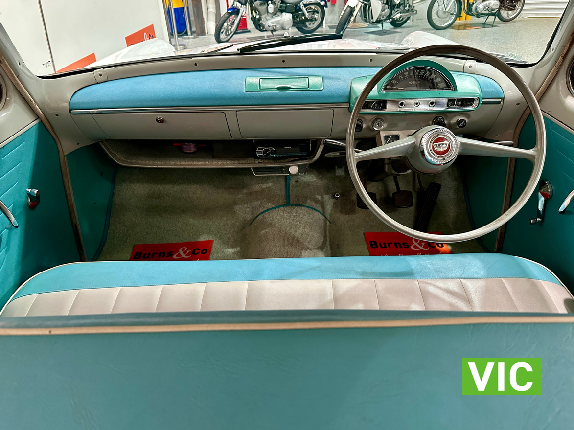 1959 Ford Consul MkII is a very stylish and classy classic car. This one presents very very well which is a credit to the owners and has not missed a beat on it’s way over from Tasmania and since arriving at Burns and Co.