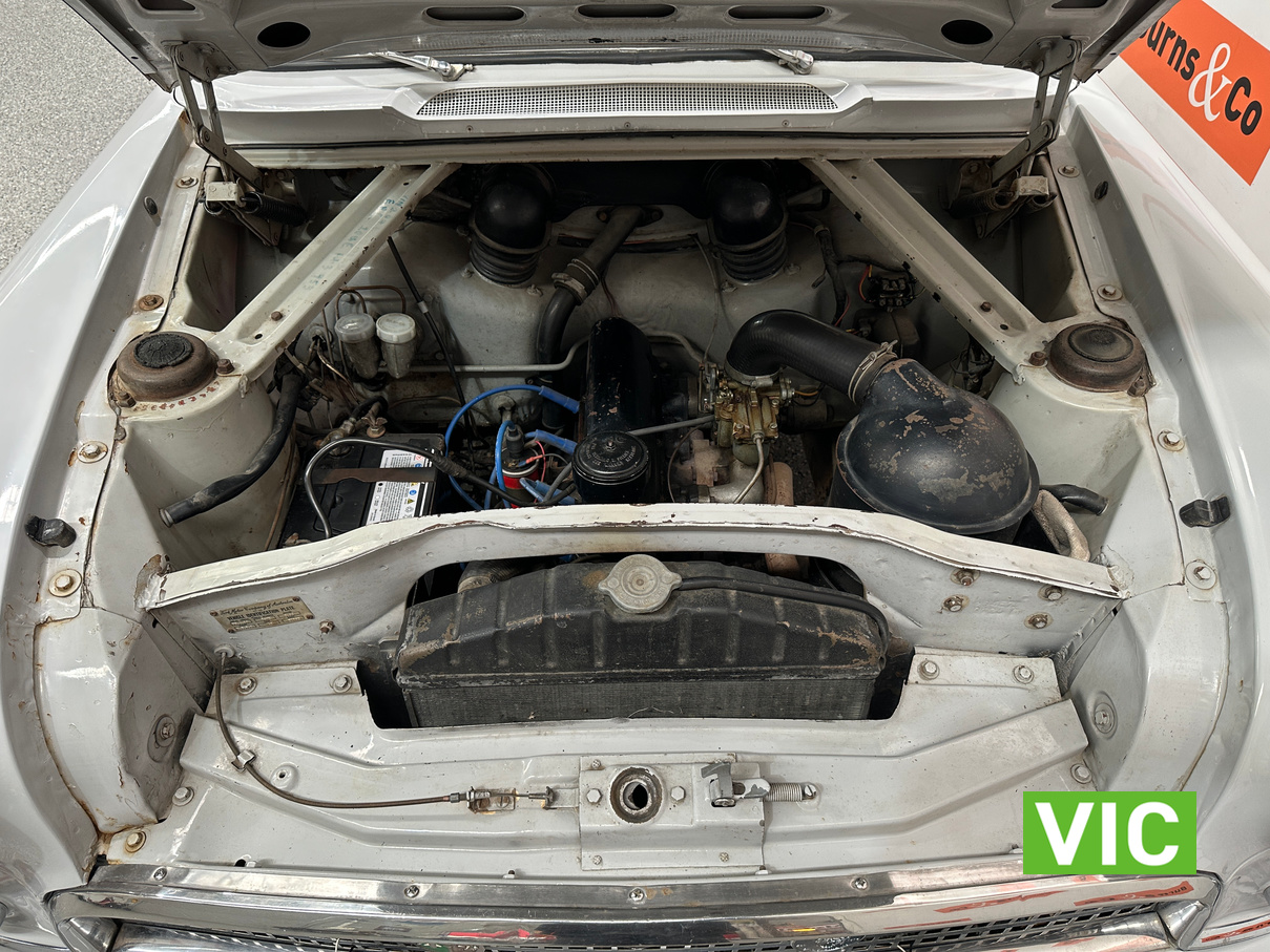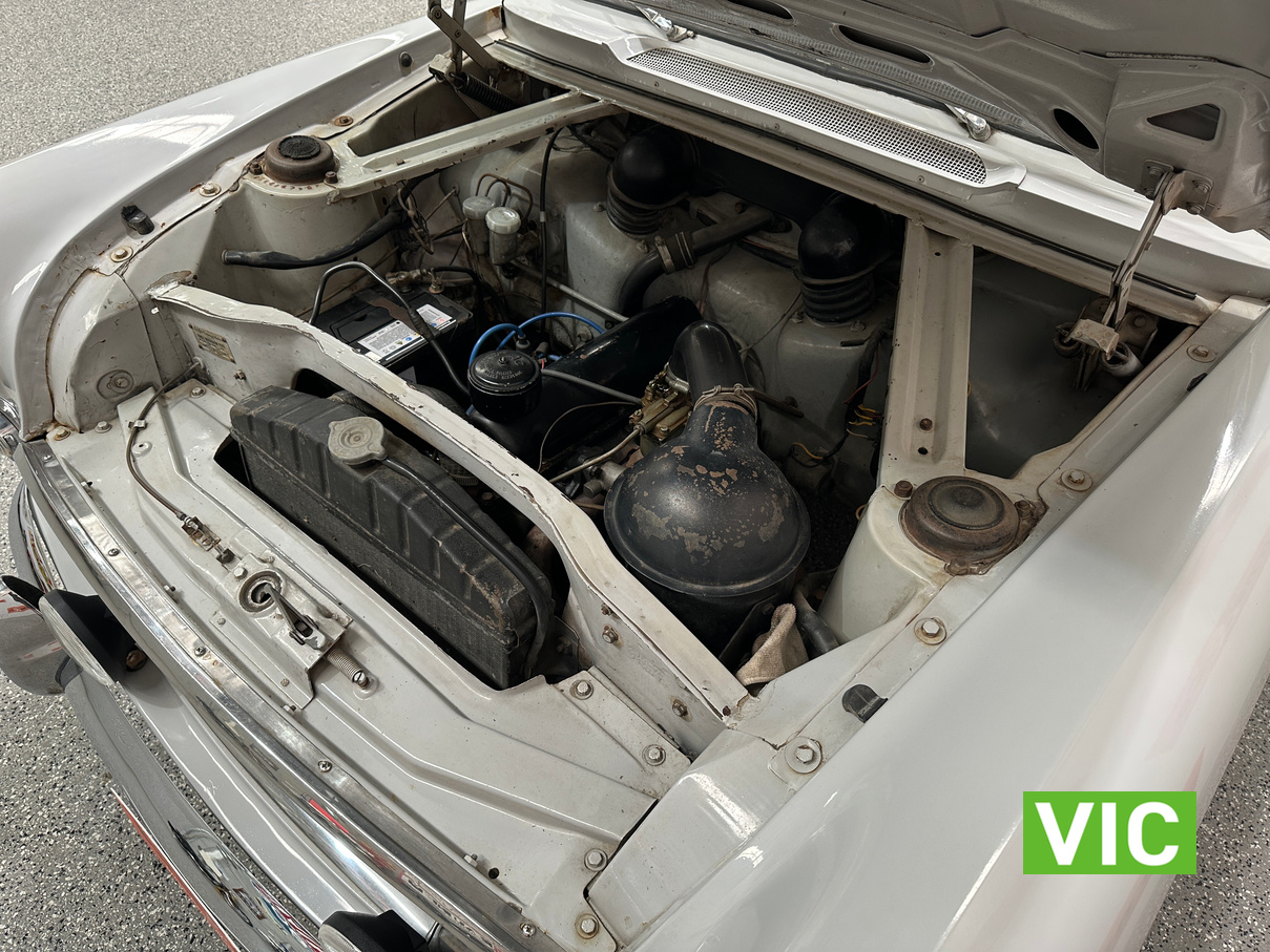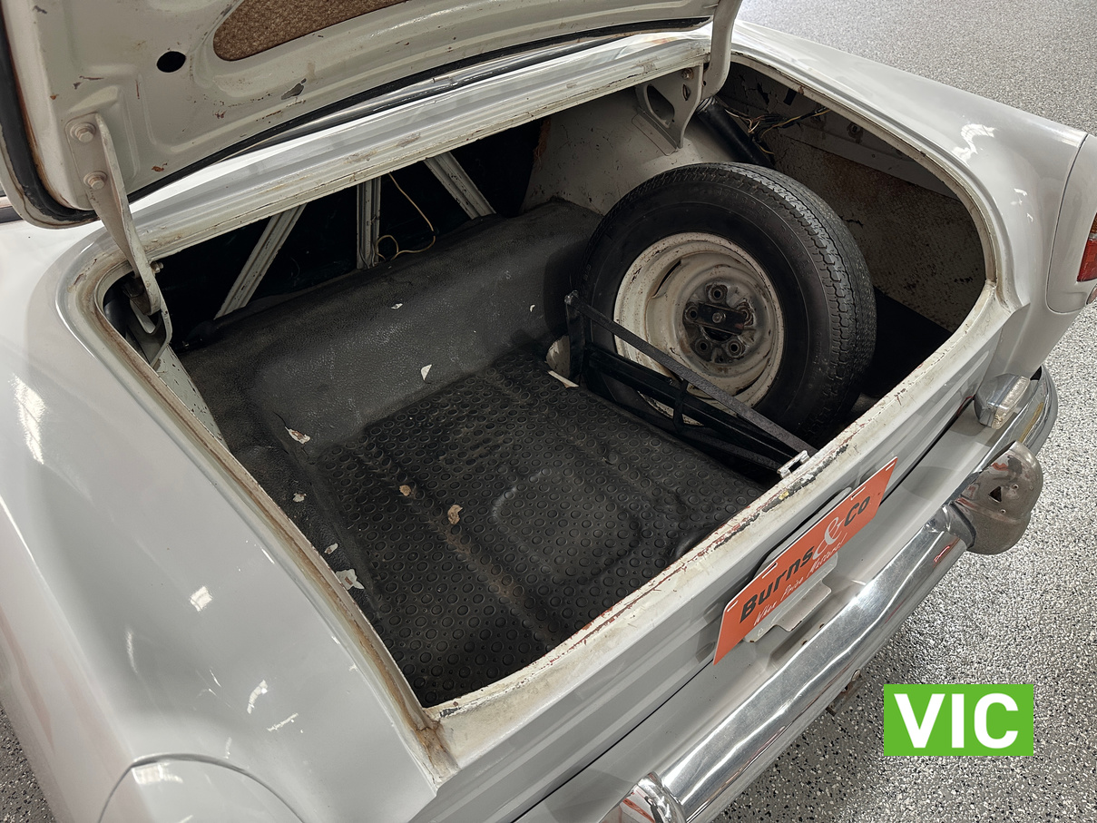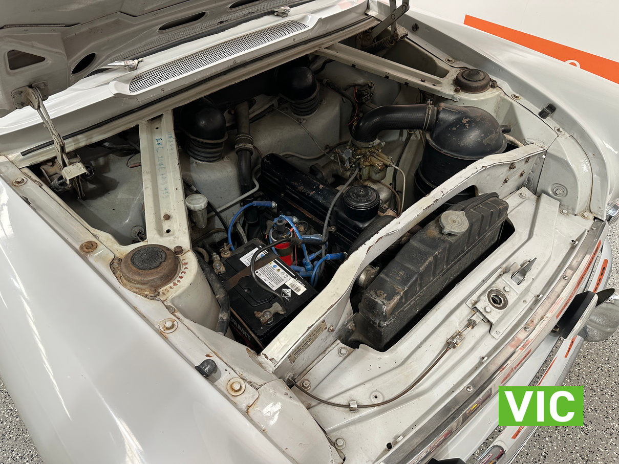 Vendor Notes: This car presents in original condition, only a 2 owner car previously being resprayed in its original colour. It still has all of it’s original factory built running gear. Electronic ignition & a new alternator have been added. No rust. Mechanically in good working condition, runs smoothly & drives well. Has good clutch & brakes. The upholstery is in good presentable condition. Original 82,000 miles. Good near new tyres. Venetians, sunvisor & wheel spats. This great survivor car has been well maintained & serviced.