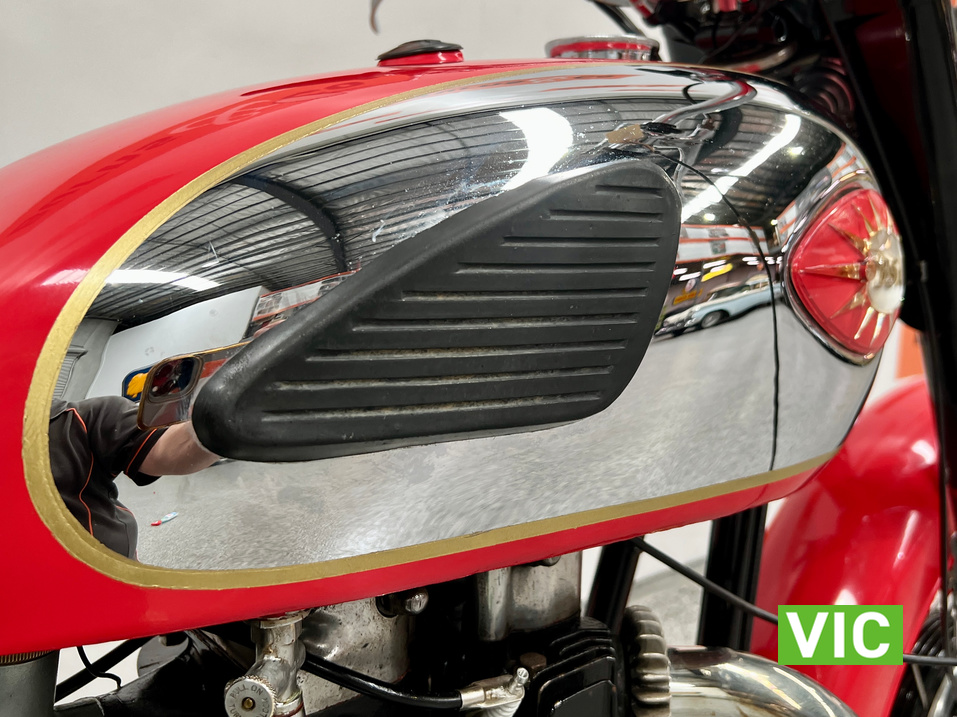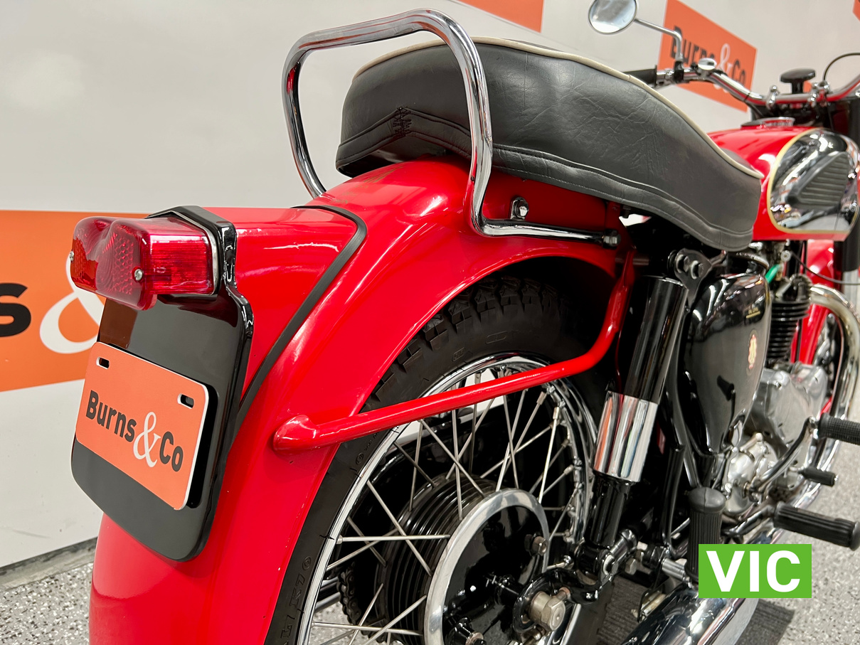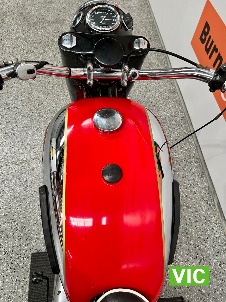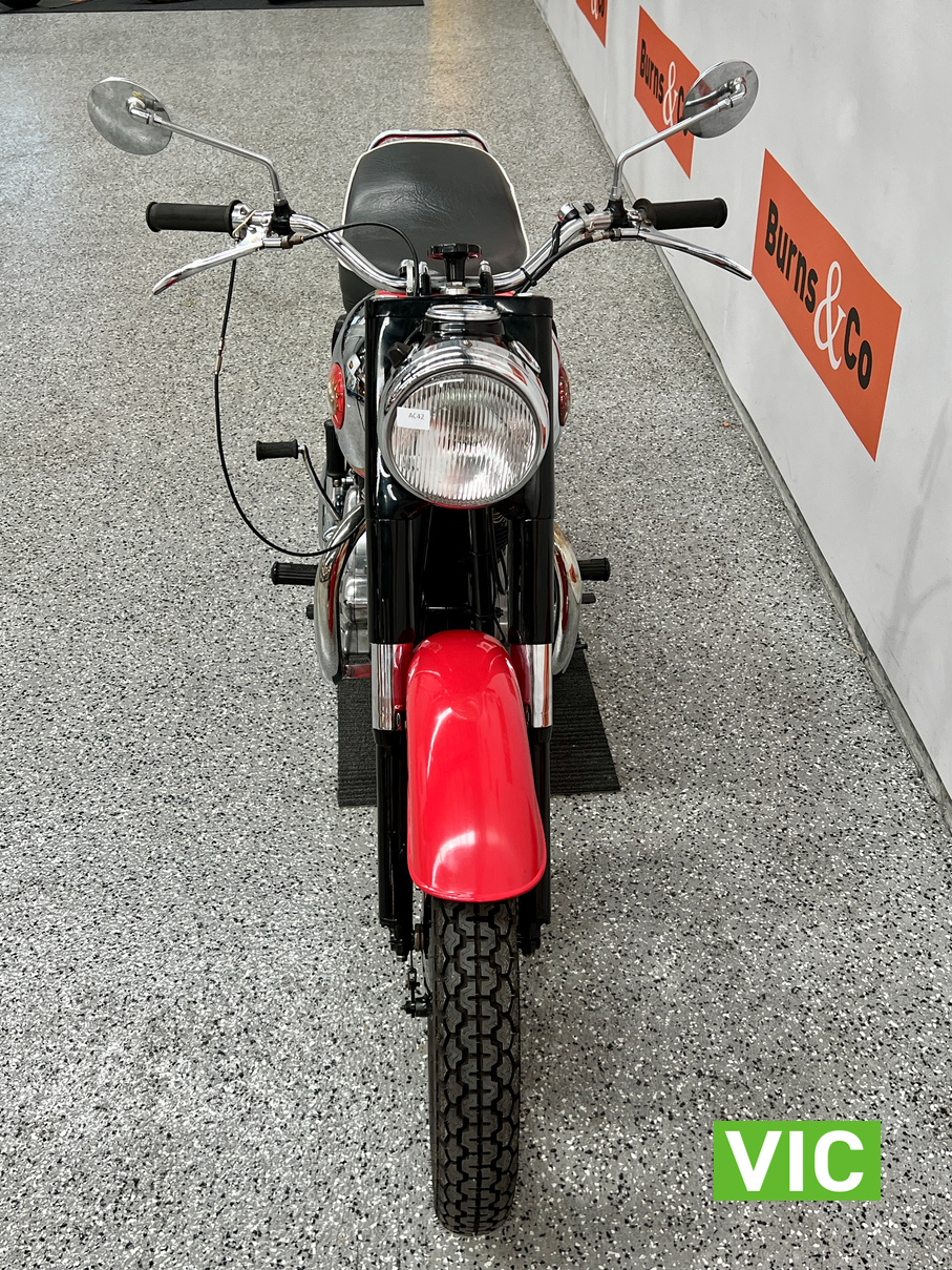 This example, E/N DA10 11067, would have been produced in mid 1960. It has been in storage for at least 10 years and has recently been recommissioned. An excellent older restoration, it starts easily and idles smoothly. Paint and chrome are in excellent condition.