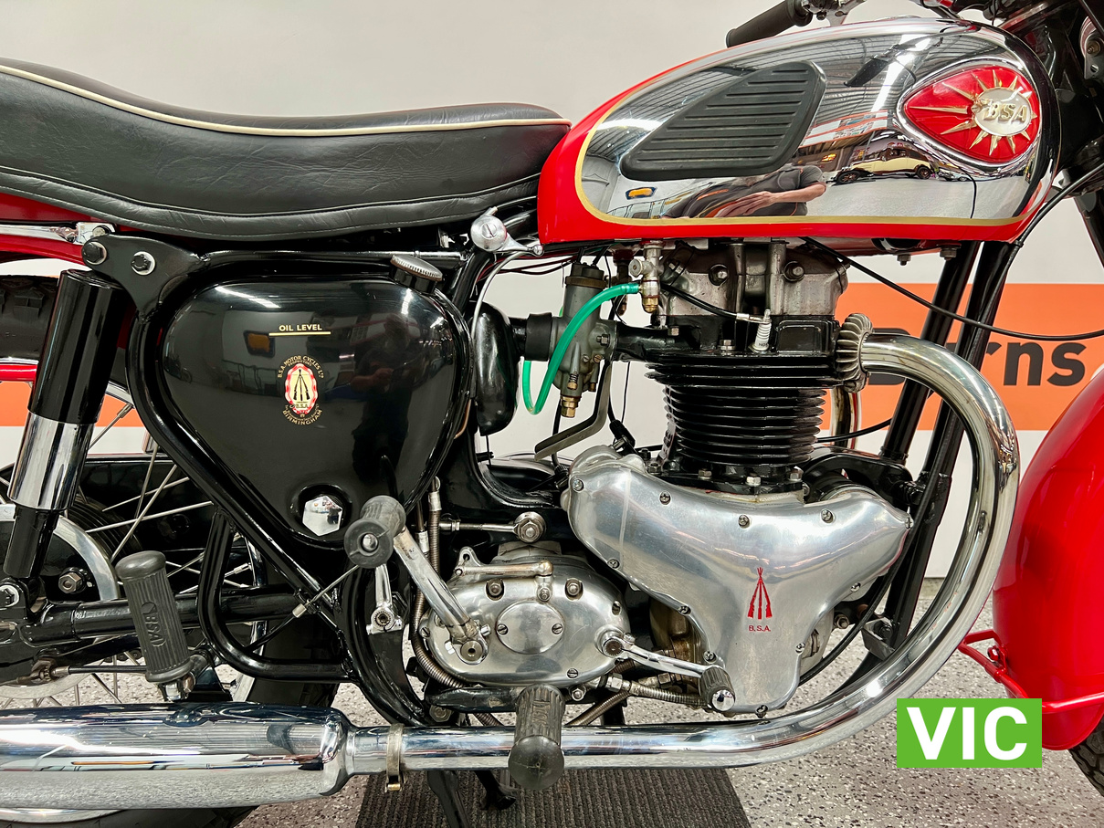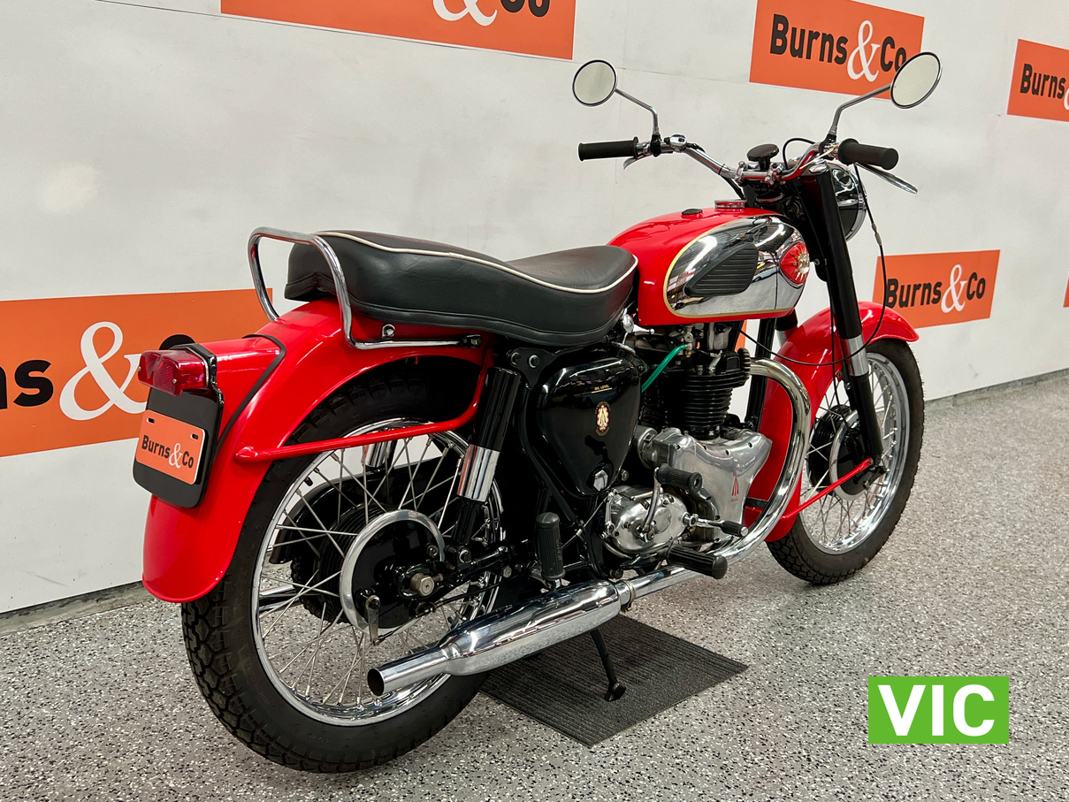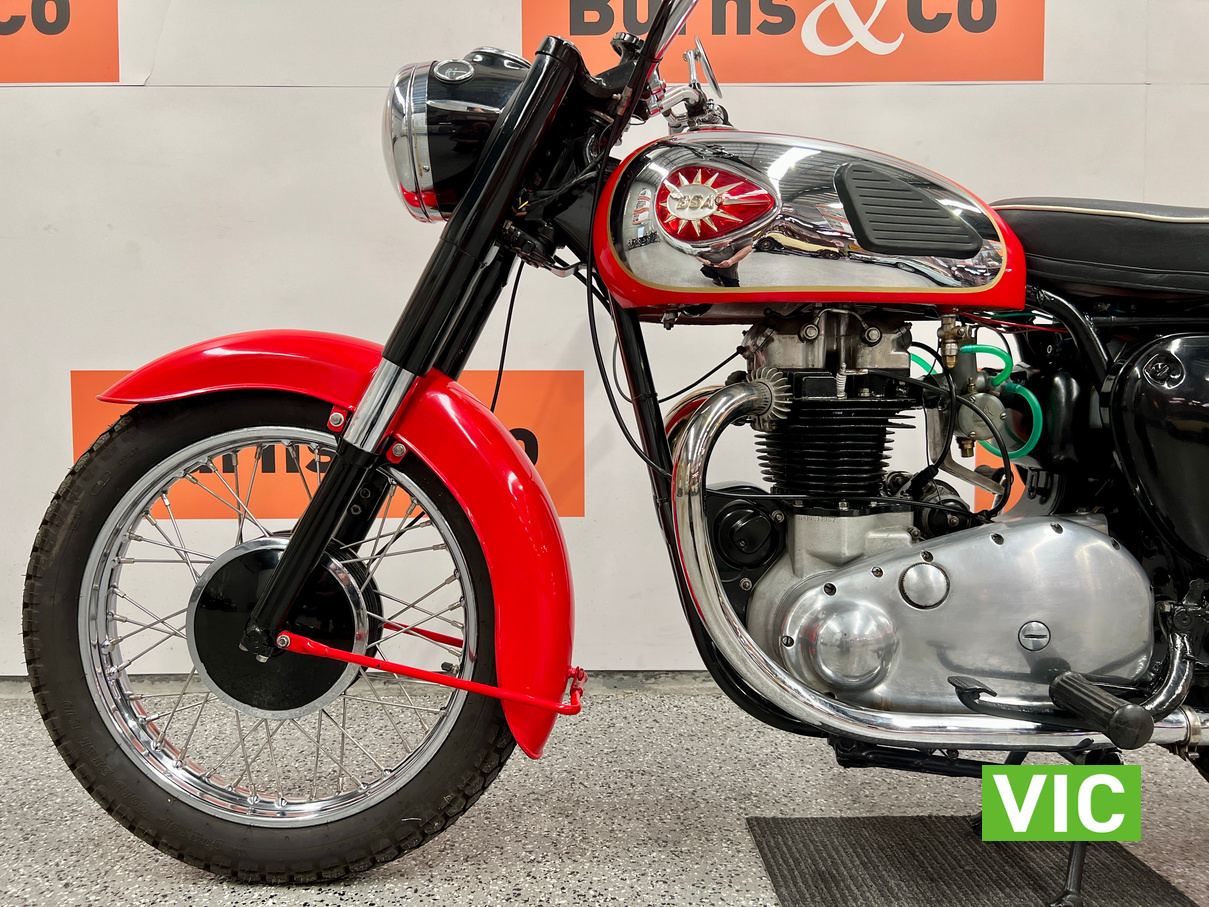 The BSA A10 range was introduced in response to the Triumph sports twins. Originally based on the smaller A7 500 twin and in a plunger frame, the design was continually upgraded and transitioned into a swing arm frame until it was replaced by the A65 in the 1960s. By 1960, the motor had been upgraded to the 356 Sports Camshaft, larger 1 1/8”Amal carb, Thick flange barrels and big bearing crank and rods. This is considered a nicer motor than the finicky Road Rocket version.
