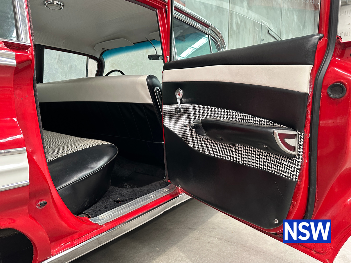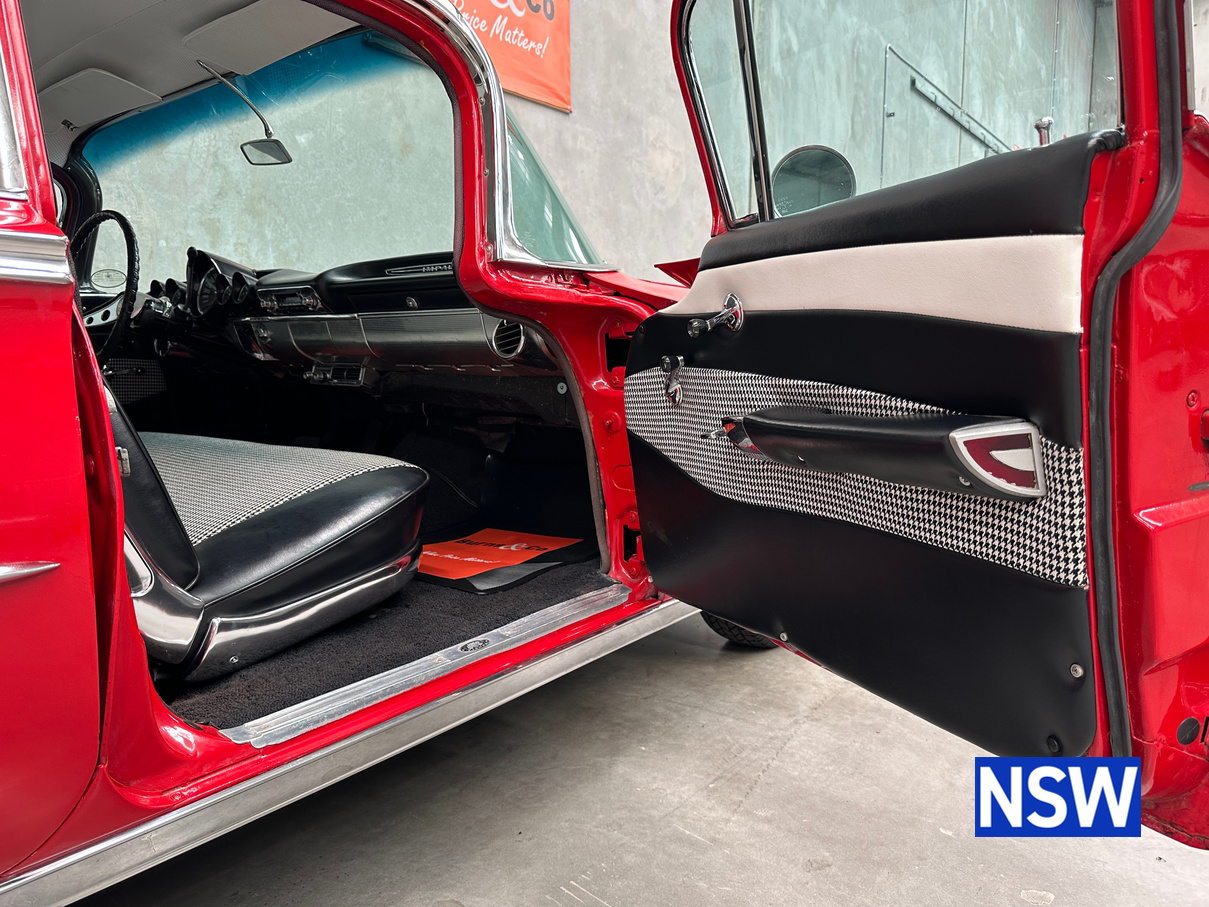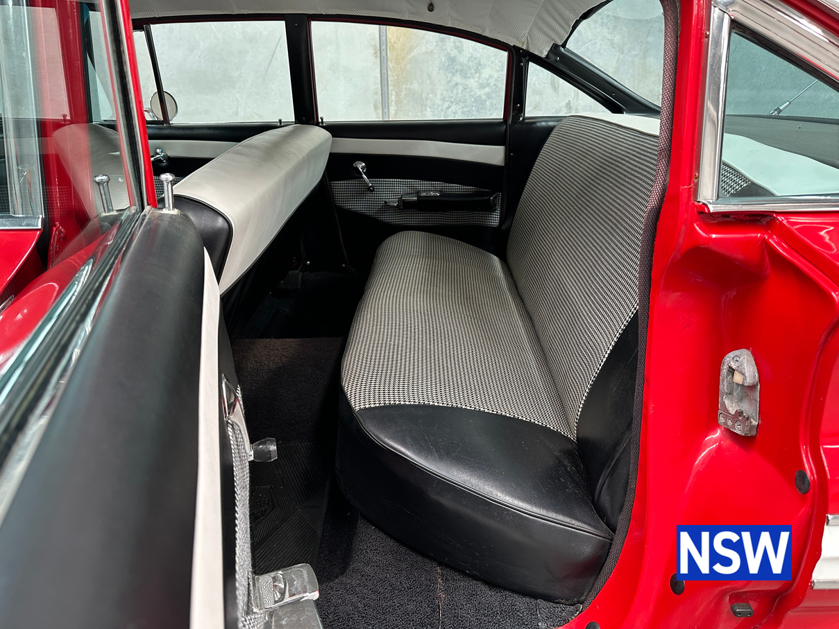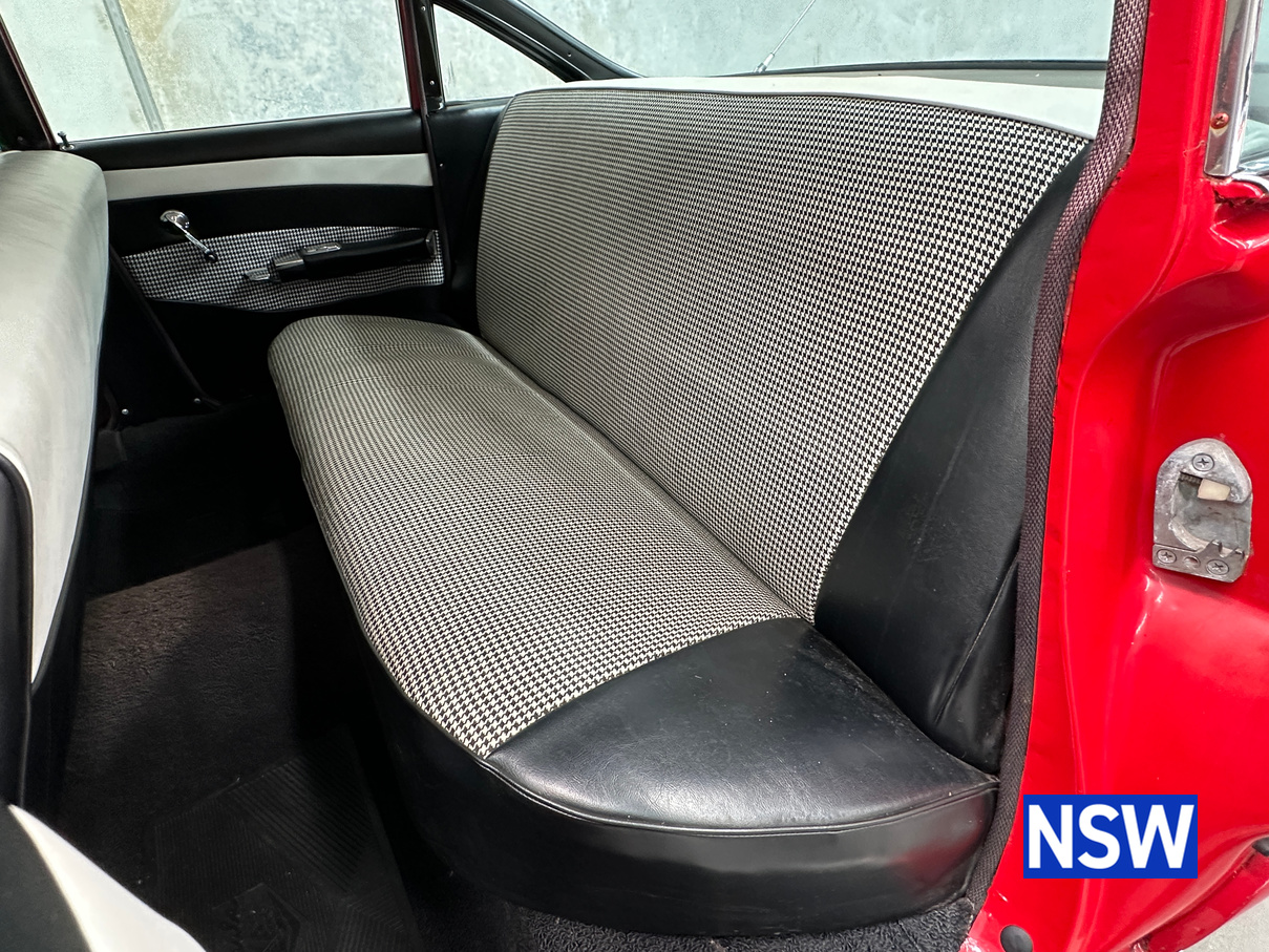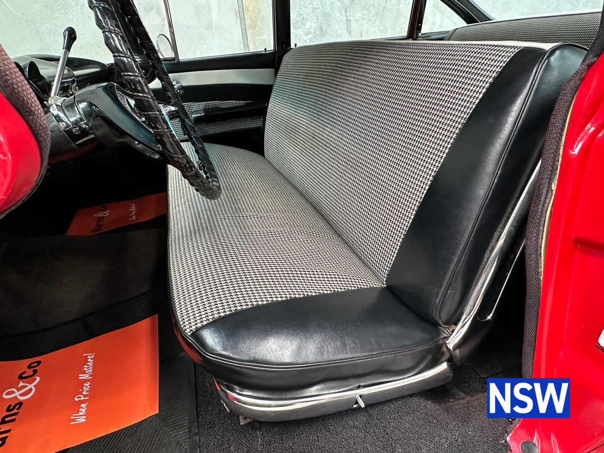 Impeccable houndstooth interior, tidy exterior, what a great package. Fitted with the 283 V8 coupled to an automatic transmission, this would make a terrific family weekend cruiser. Brought in to our Beresfield showroom by the vendor for genuine sale, the red on white colour scheme really grabs the eye.