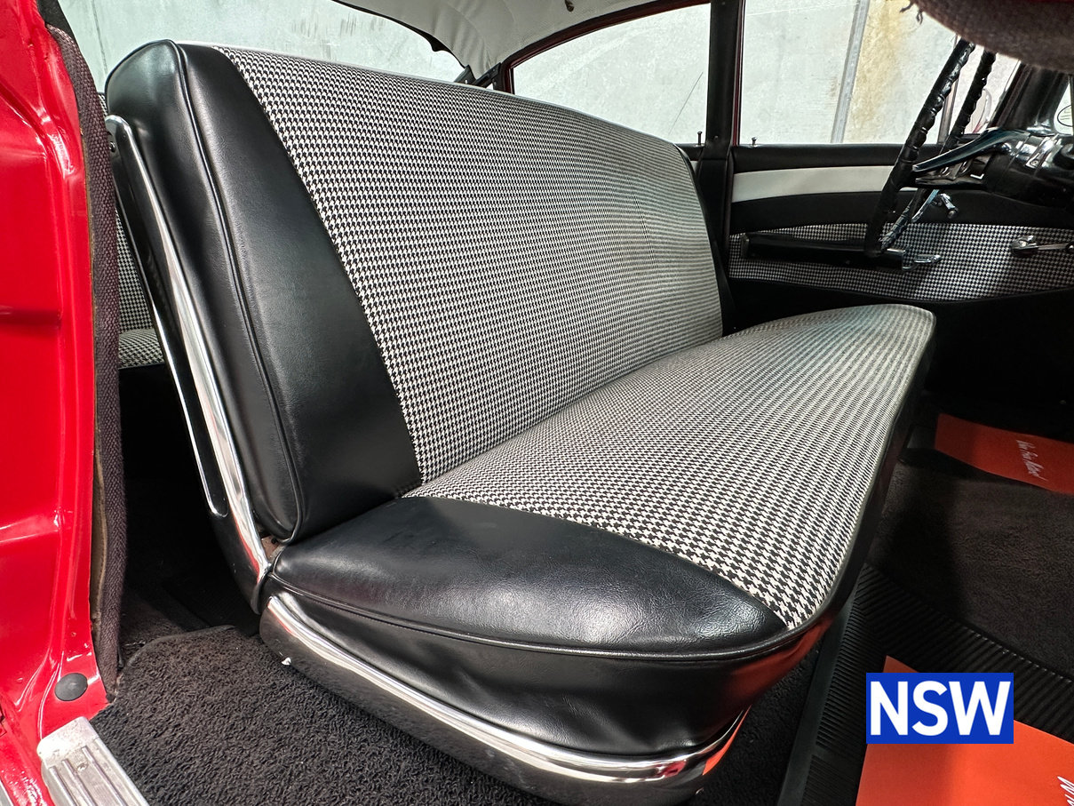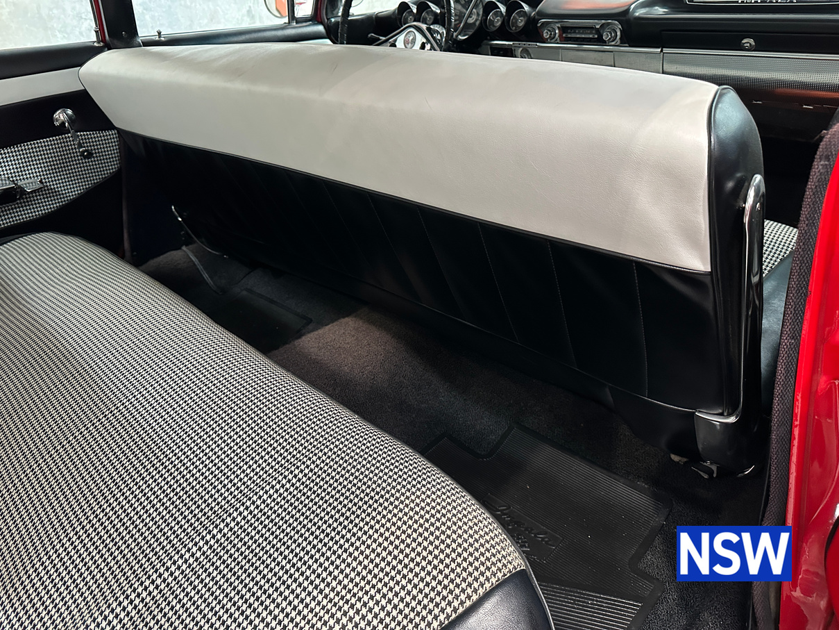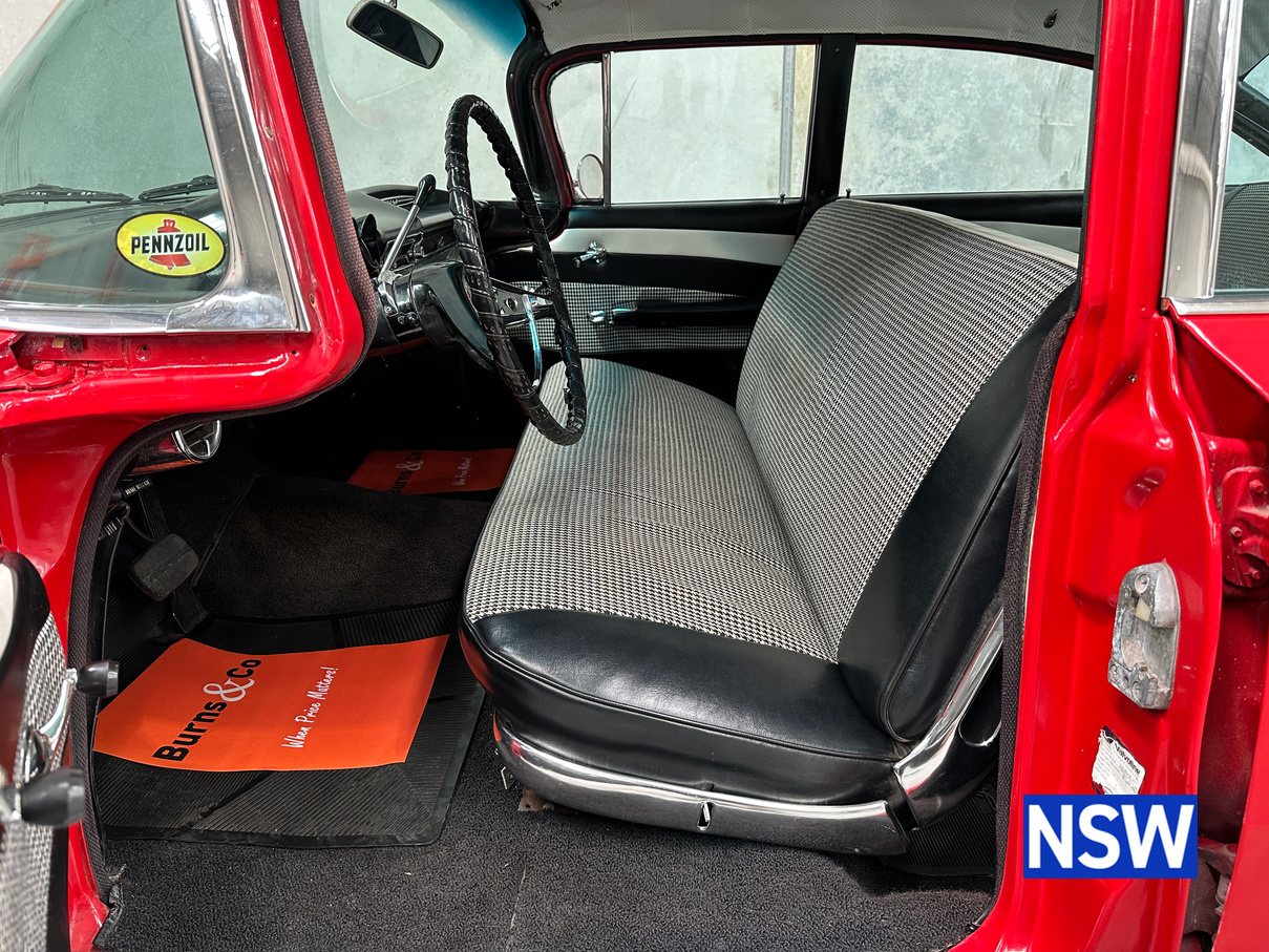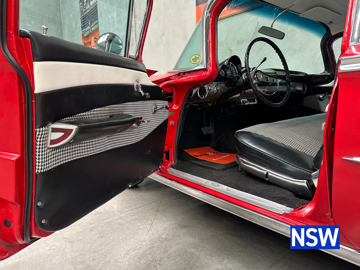 Impeccable houndstooth interior, tidy exterior, what a great package. Fitted with the 283 V8 coupled to an automatic transmission, this would make a terrific family weekend cruiser. Brought in to our Beresfield showroom by the vendor for genuine sale, the red on white colour scheme really grabs the eye.