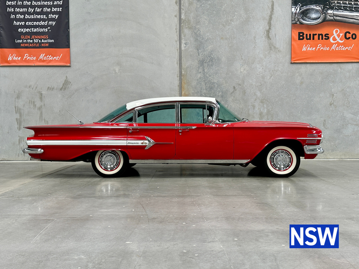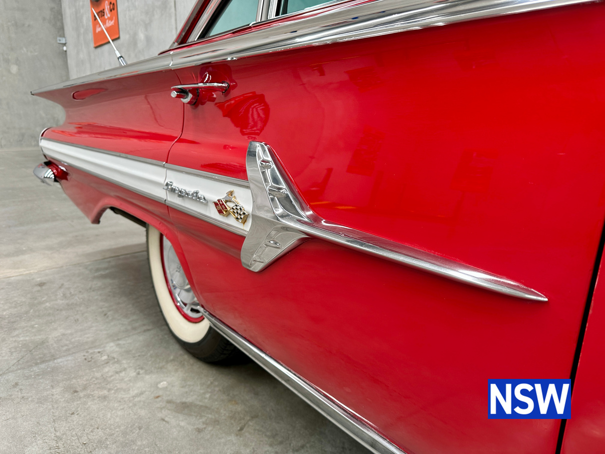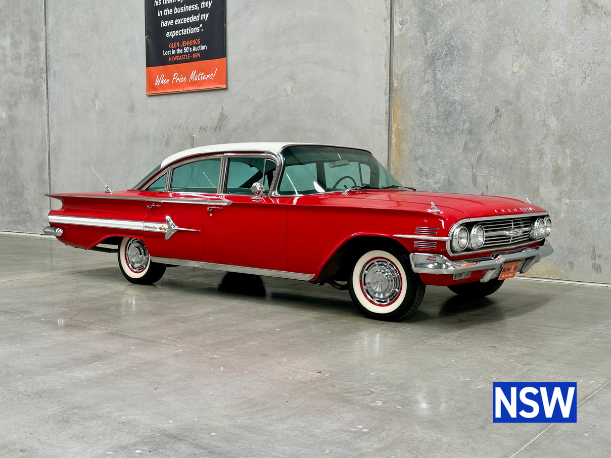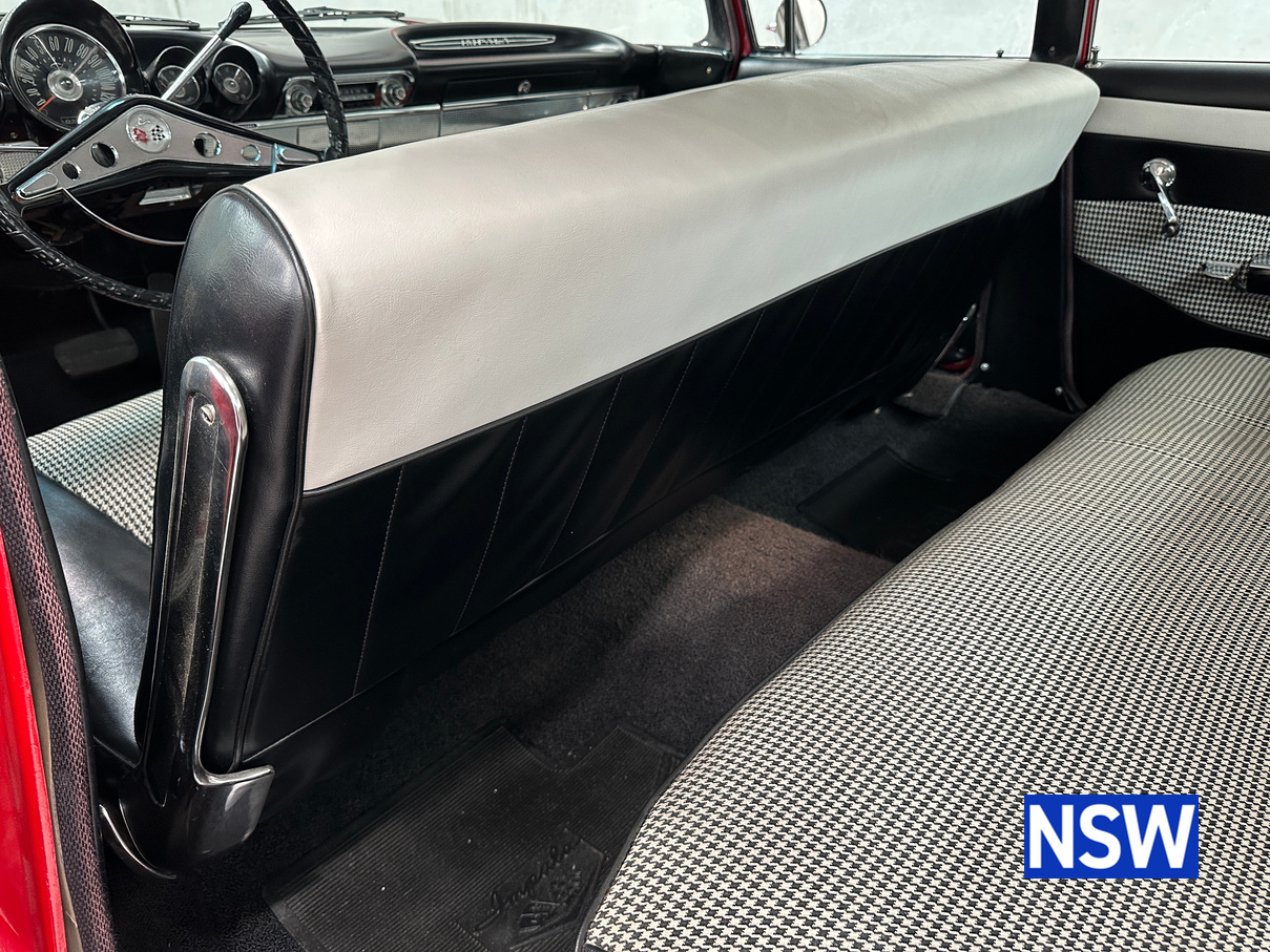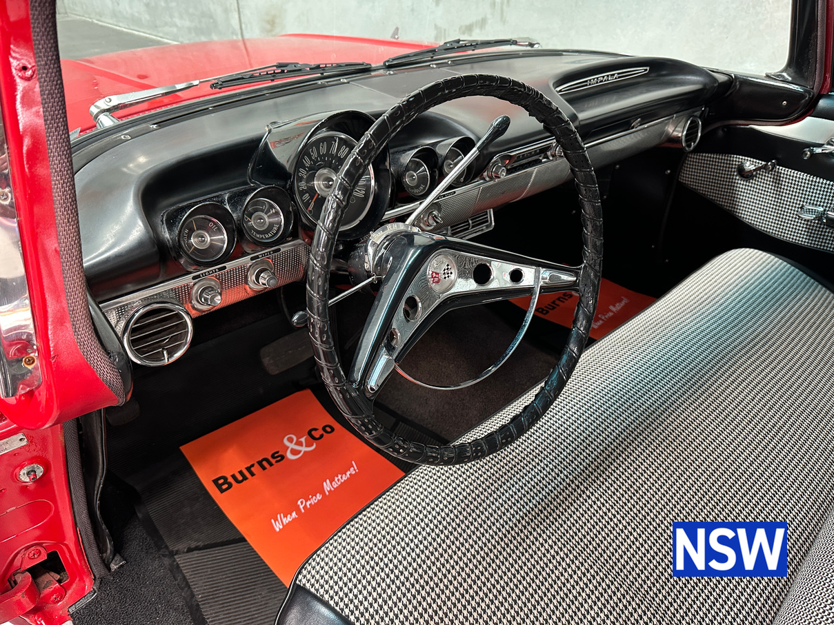 Impeccable houndstooth interior, tidy exterior, what a great package. Fitted with the 283 V8 coupled to an automatic transmission, this would make a terrific family weekend cruiser. Brought in to our Beresfield showroom by the vendor for genuine sale, the red on white colour scheme really grabs the eye.