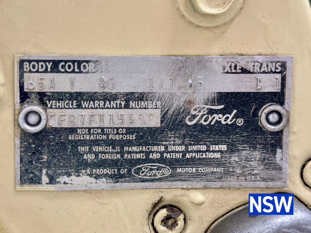 VIN / Chassis No.: 5F07F115692