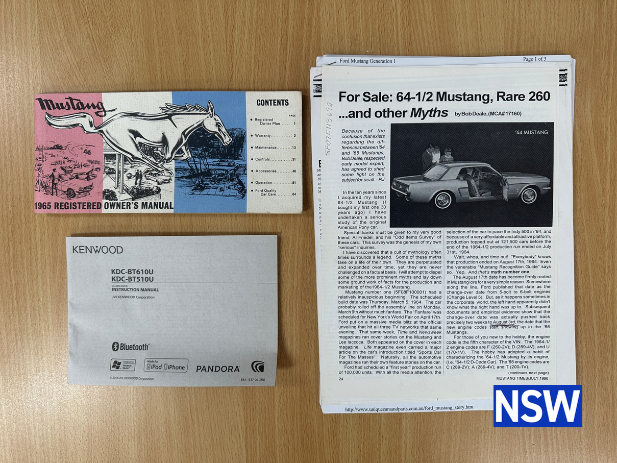 This example is the early 1964 ½ Mustang running a 260 V8 with manual transmission. The engine had a complete rebuild in 2017. Roller rockers fitted in 2023. Purchased by an Adelaide couple in 2009 and current owner has had it since 2012. Extensive paperwork and history is available with the car. It presents beautifully and is a credit to the owner who has lovingly maintained the car.
