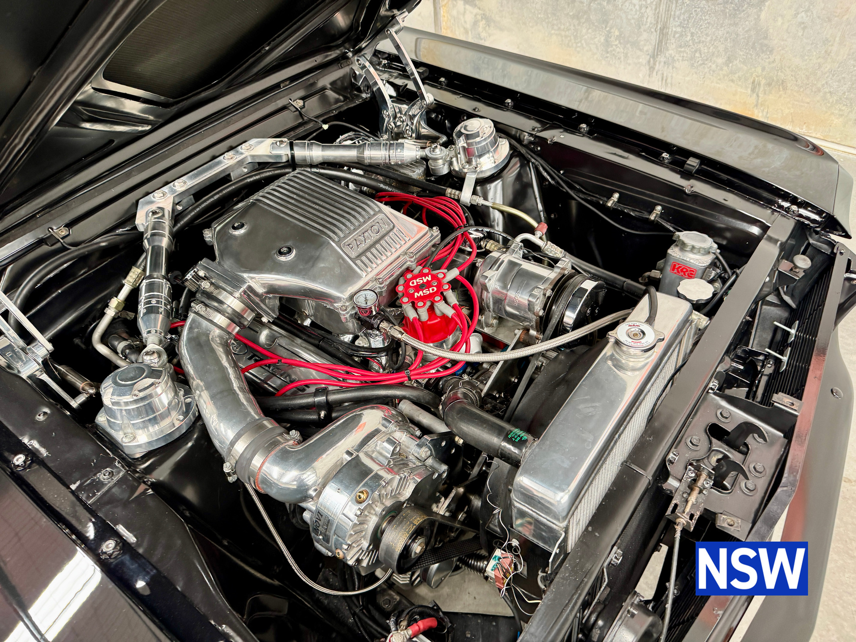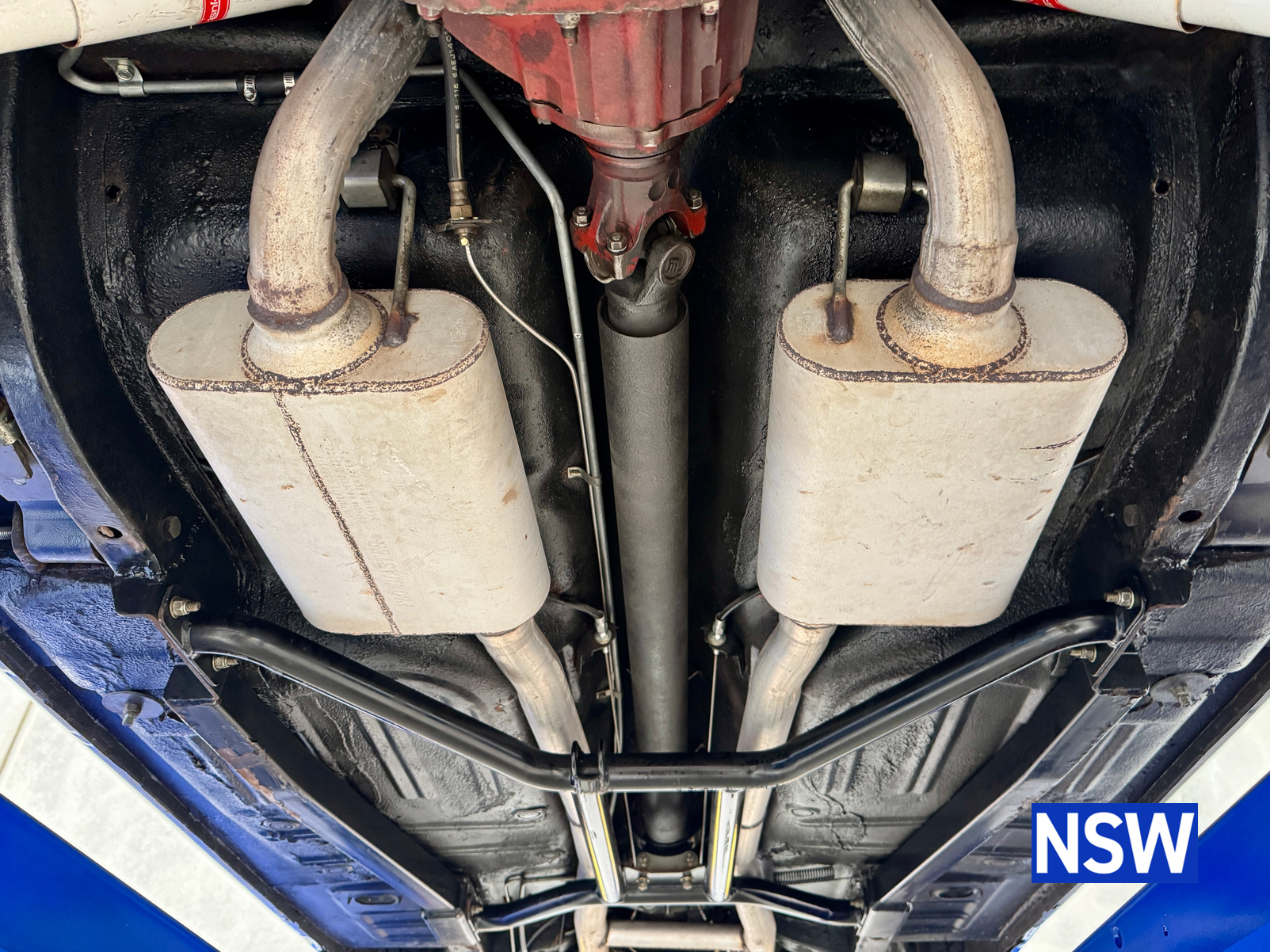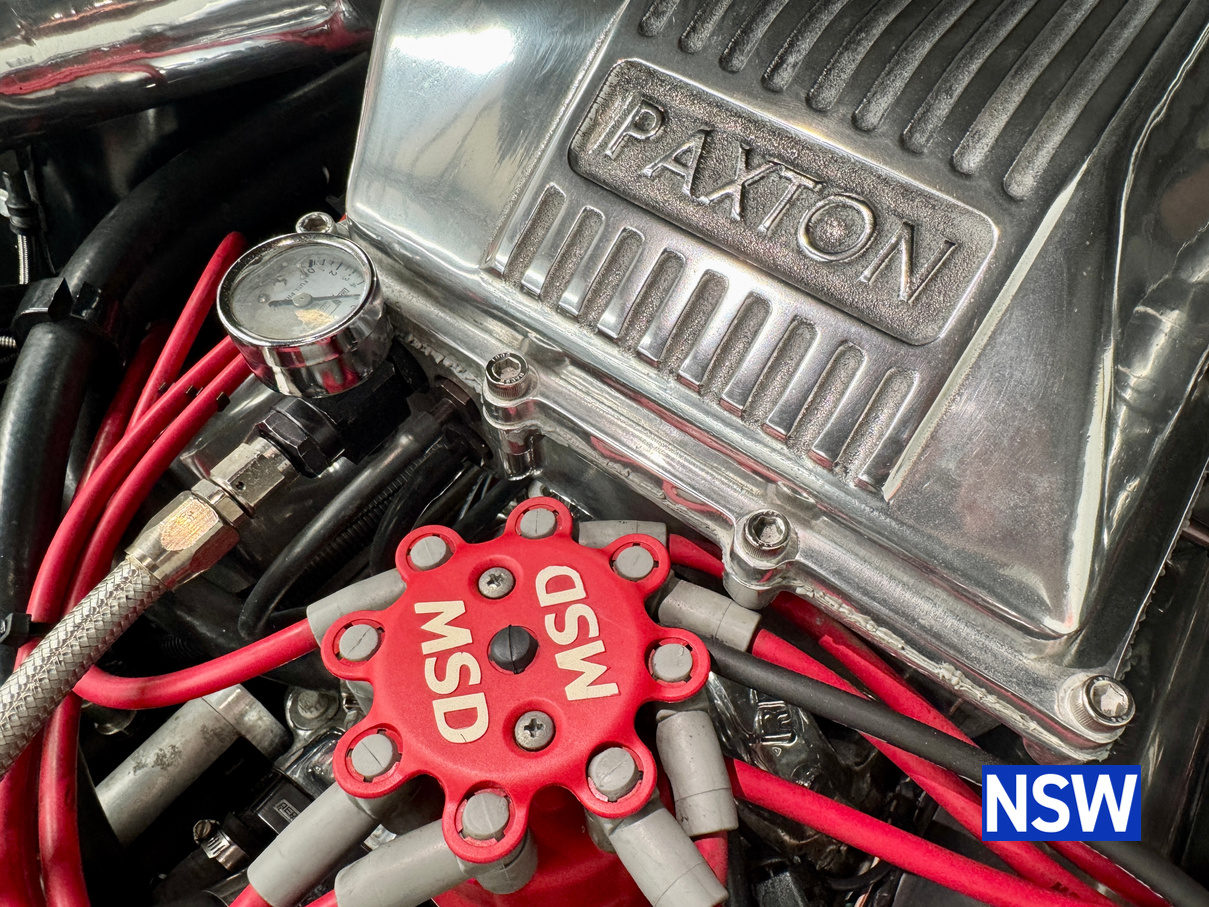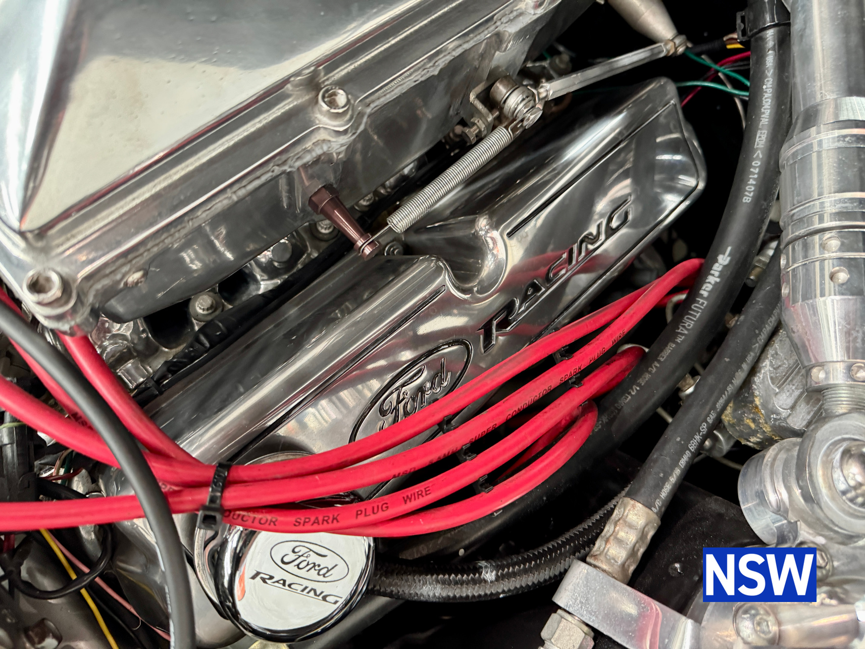 Under the bonnet now lives a Paxton supercharged, 347ci Windsor Stroker V8 built by Abbott Race Engines. The engine build features a Comp Cams Xtreme Energy Hydraulic Roller Cam, ARP Rod bolts, stainless valves, Roller rockers, Forged Crank, CNC-ported aluminium heads, multi angle valve job and a Barry Grant 750 blower carb. The engine is force fed by a Paxton 1200 side mount blower. Spark is provided by an MSD 6AL-2 ignition system and exhaust gasses escape through a set of JBA Headers into a custom exhaust. The car was recently tuned by ASG Motorsport and made over 400hp at the treads. The engine bay is well presented with Ring Brothers engine brace and billet hood hinges & lots more.