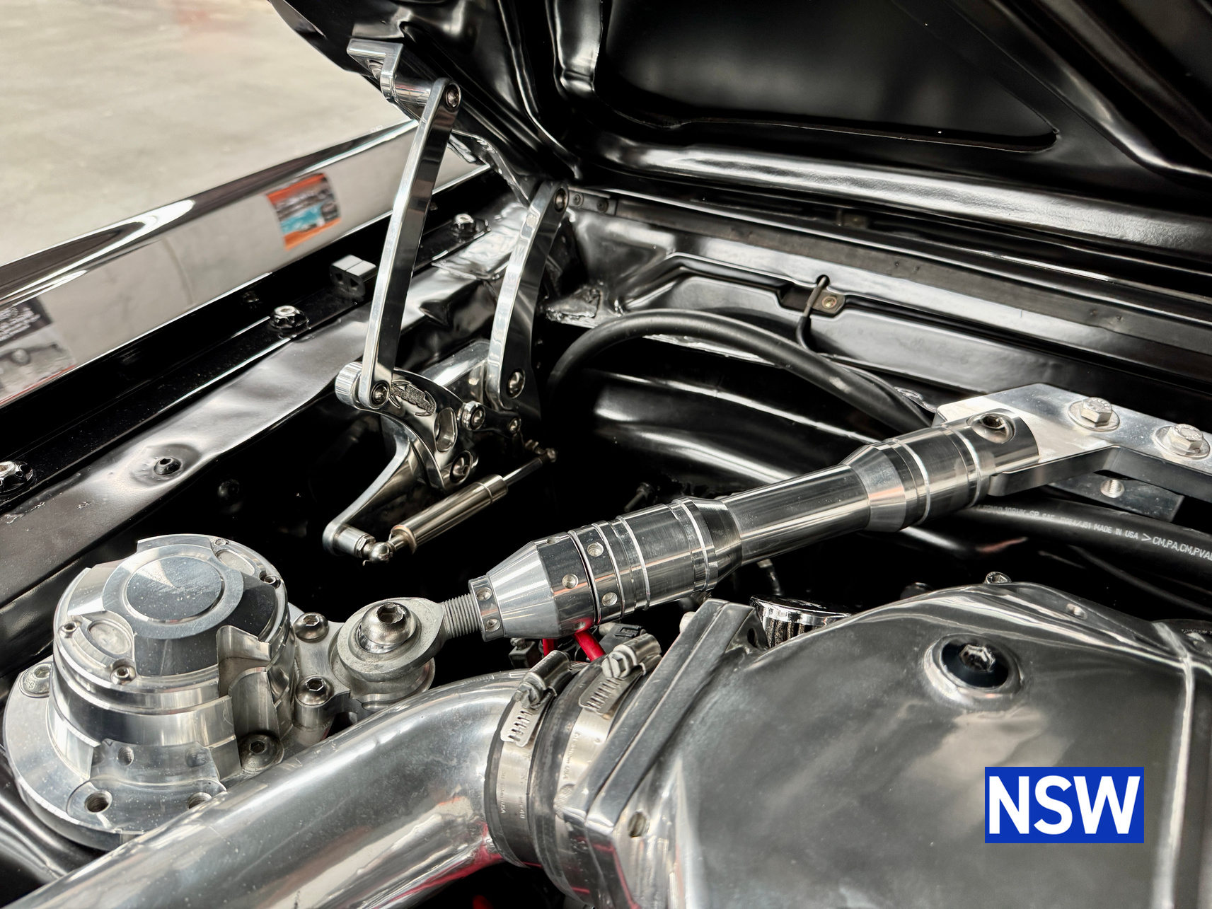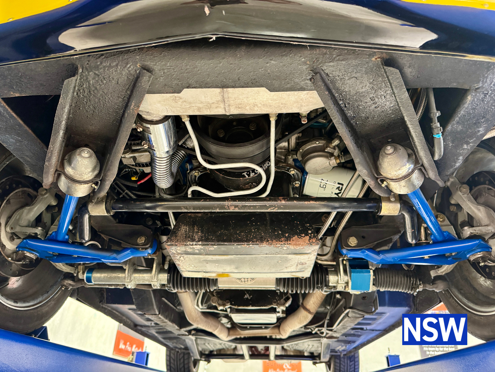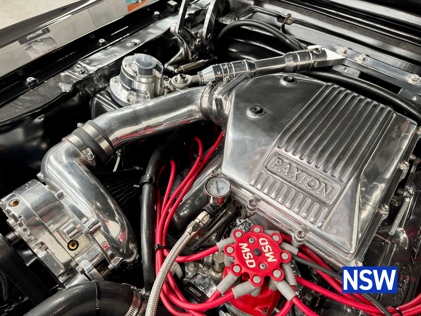 Under the bonnet now lives a Paxton supercharged, 347ci Windsor Stroker V8 built by Abbott Race Engines. The engine build features a Comp Cams Xtreme Energy Hydraulic Roller Cam, ARP Rod bolts, stainless valves, Roller rockers, Forged Crank, CNC-ported aluminium heads, multi angle valve job and a Barry Grant 750 blower carb. The engine is force fed by a Paxton 1200 side mount blower. Spark is provided by an MSD 6AL-2 ignition system and exhaust gasses escape through a set of JBA Headers into a custom exhaust. The car was recently tuned by ASG Motorsport and made over 400hp at the treads. The engine bay is well presented with Ring Brothers engine brace and billet hood hinges & lots more.