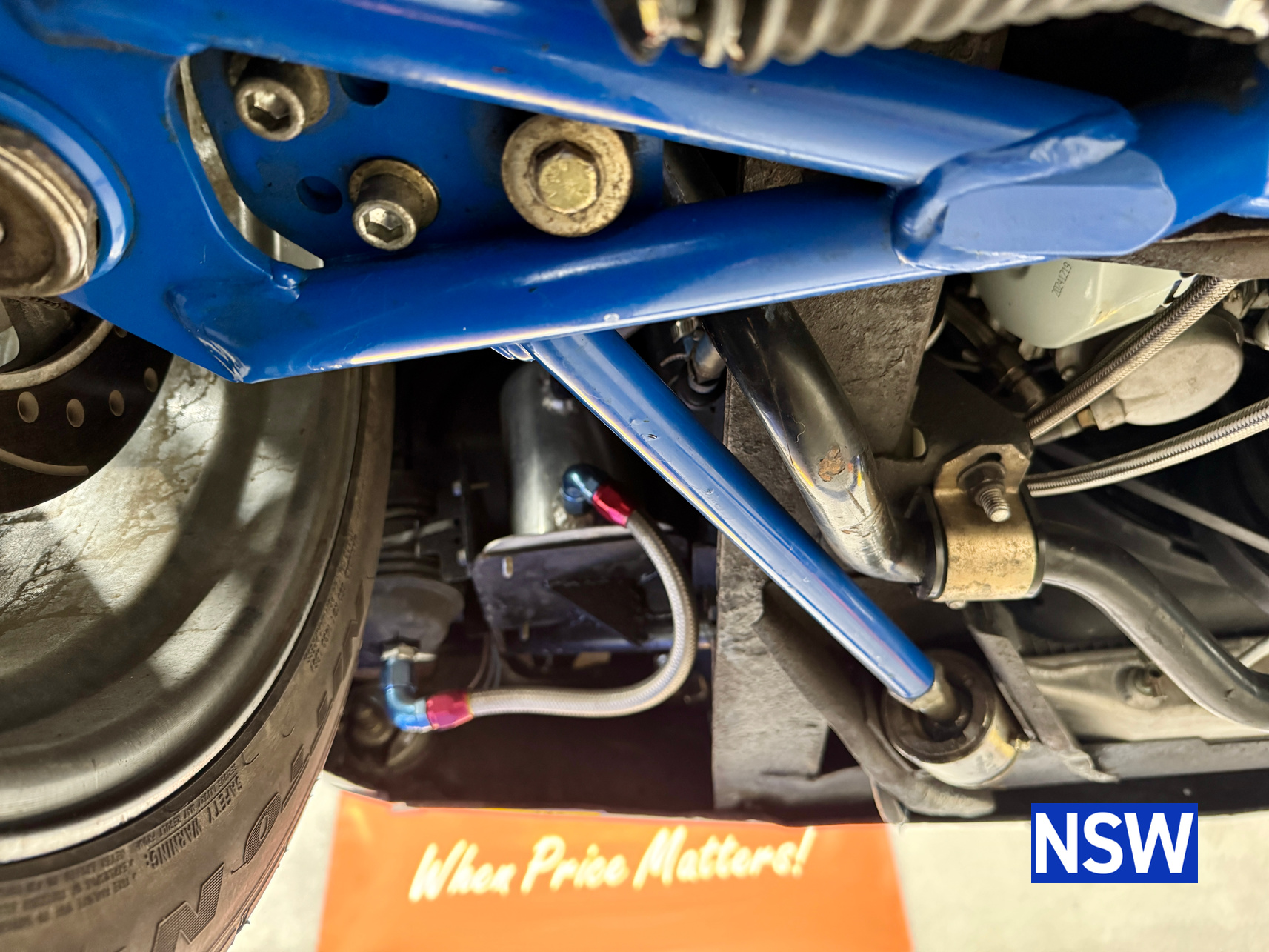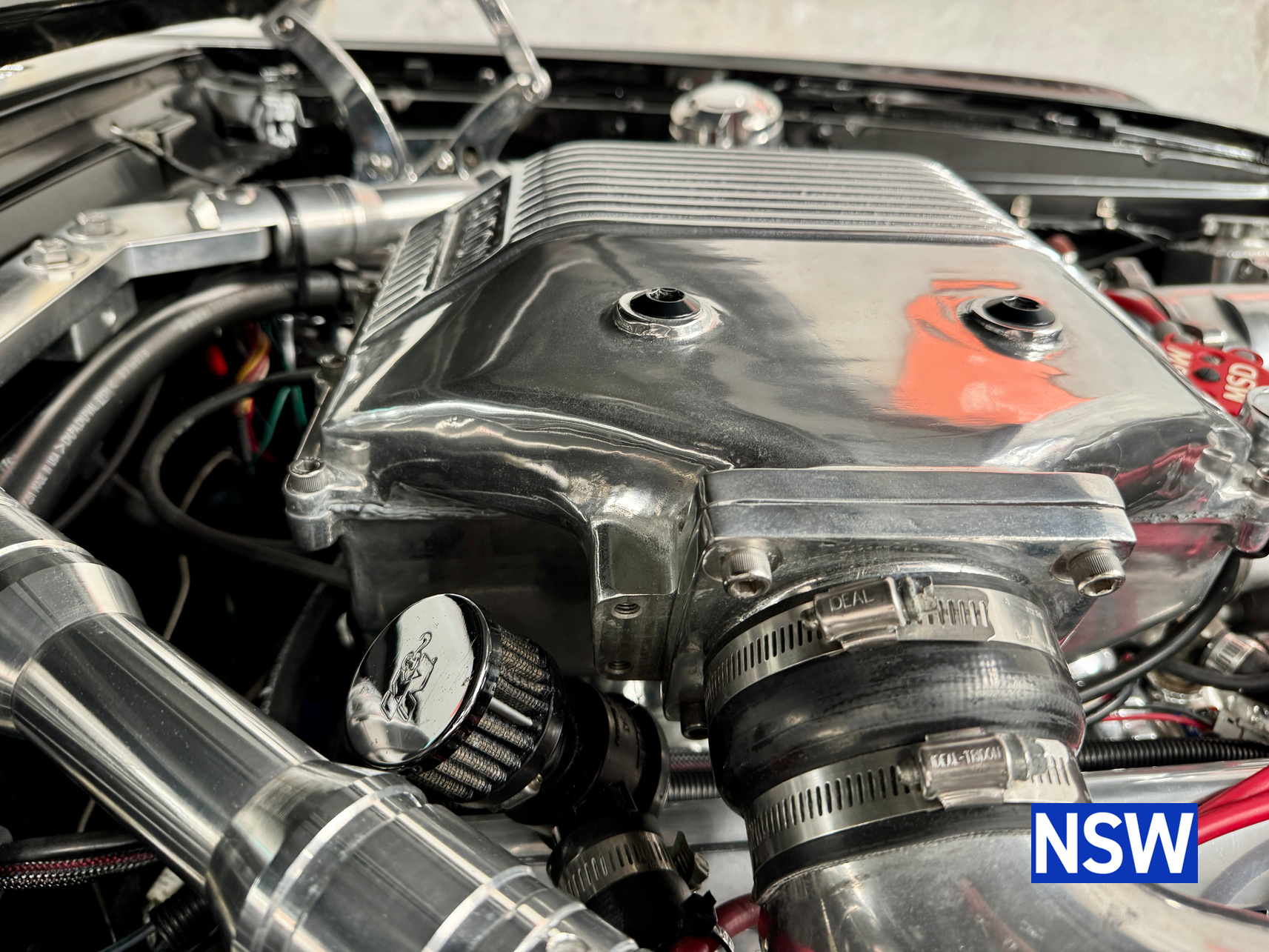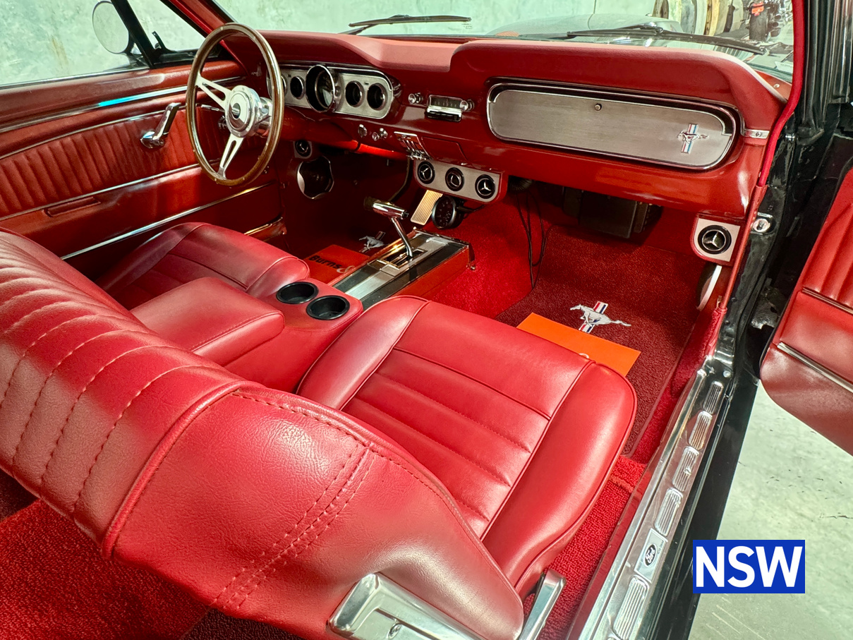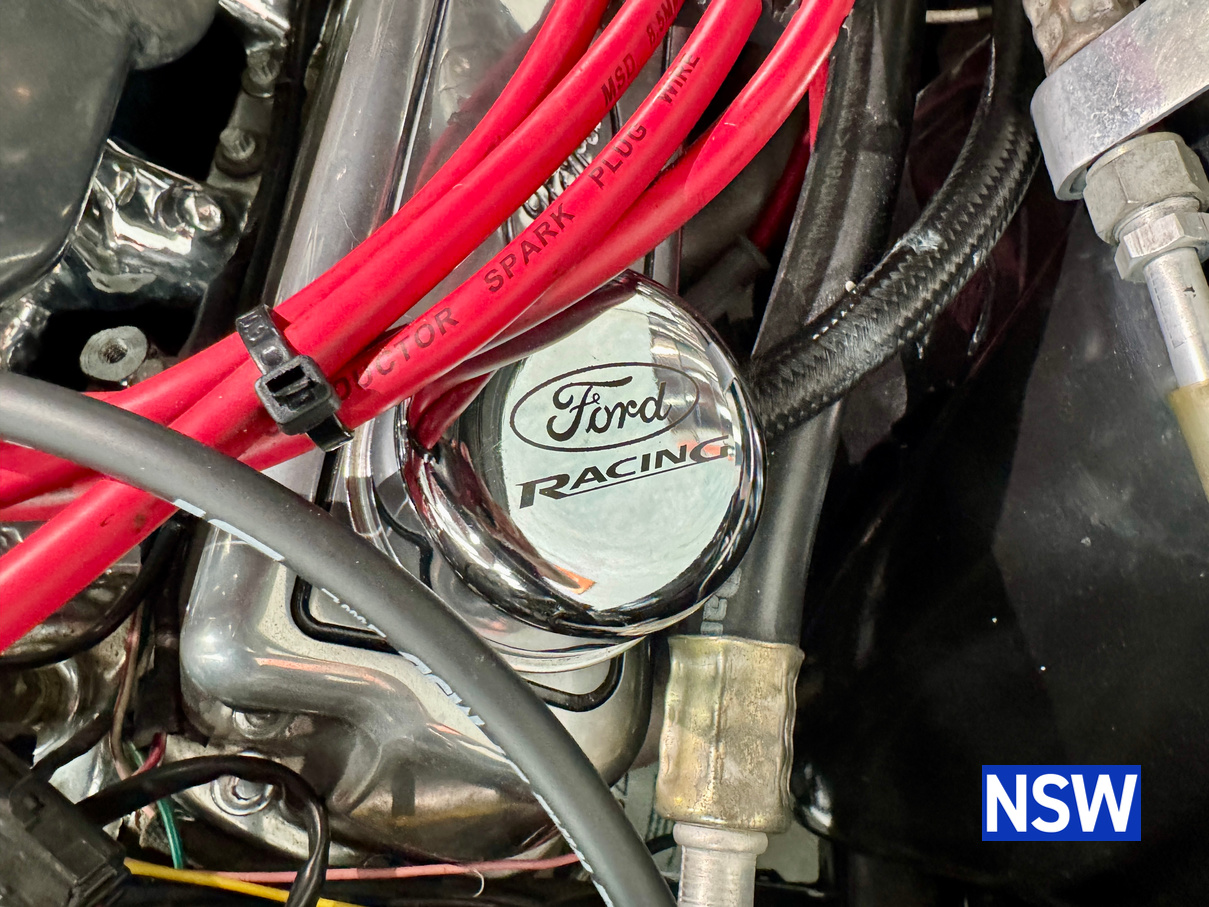 Under the bonnet now lives a Paxton supercharged, 347ci Windsor Stroker V8 built by Abbott Race Engines. The engine build features a Comp Cams Xtreme Energy Hydraulic Roller Cam, ARP Rod bolts, stainless valves, Roller rockers, Forged Crank, CNC-ported aluminium heads, multi angle valve job and a Barry Grant 750 blower carb. The engine is force fed by a Paxton 1200 side mount blower. Spark is provided by an MSD 6AL-2 ignition system and exhaust gasses escape through a set of JBA Headers into a custom exhaust. The car was recently tuned by ASG Motorsport and made over 400hp at the treads. The engine bay is well presented with Ring Brothers engine brace and billet hood hinges & lots more.