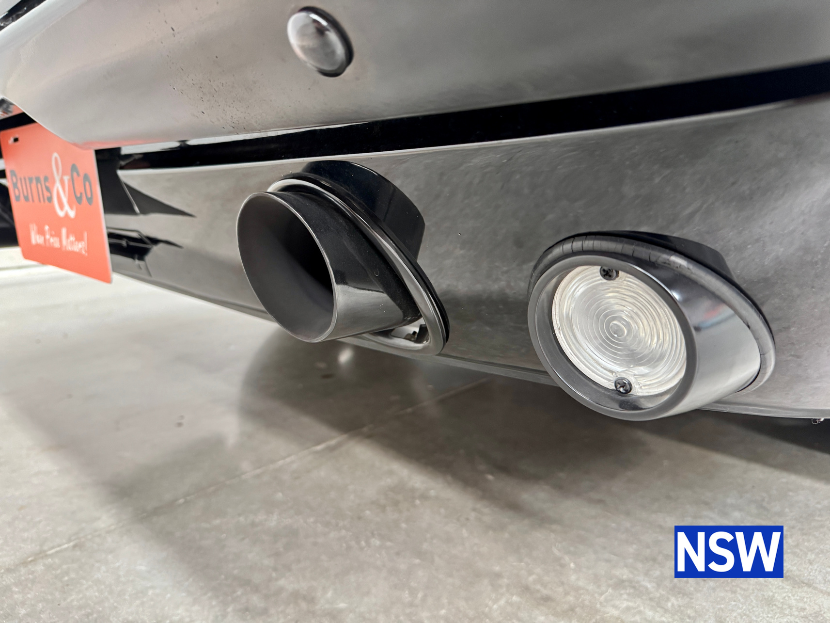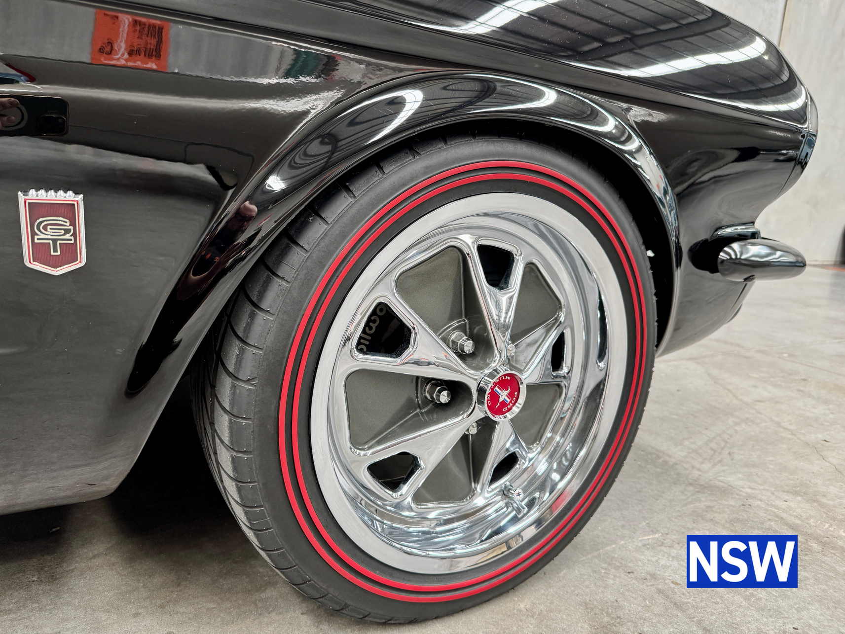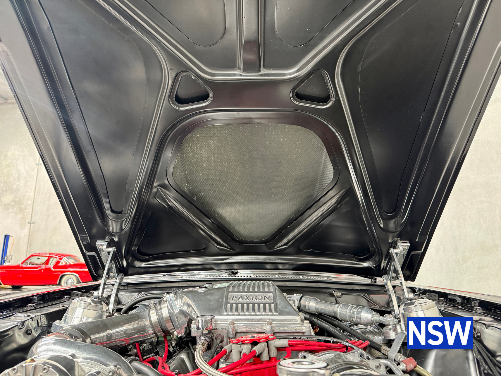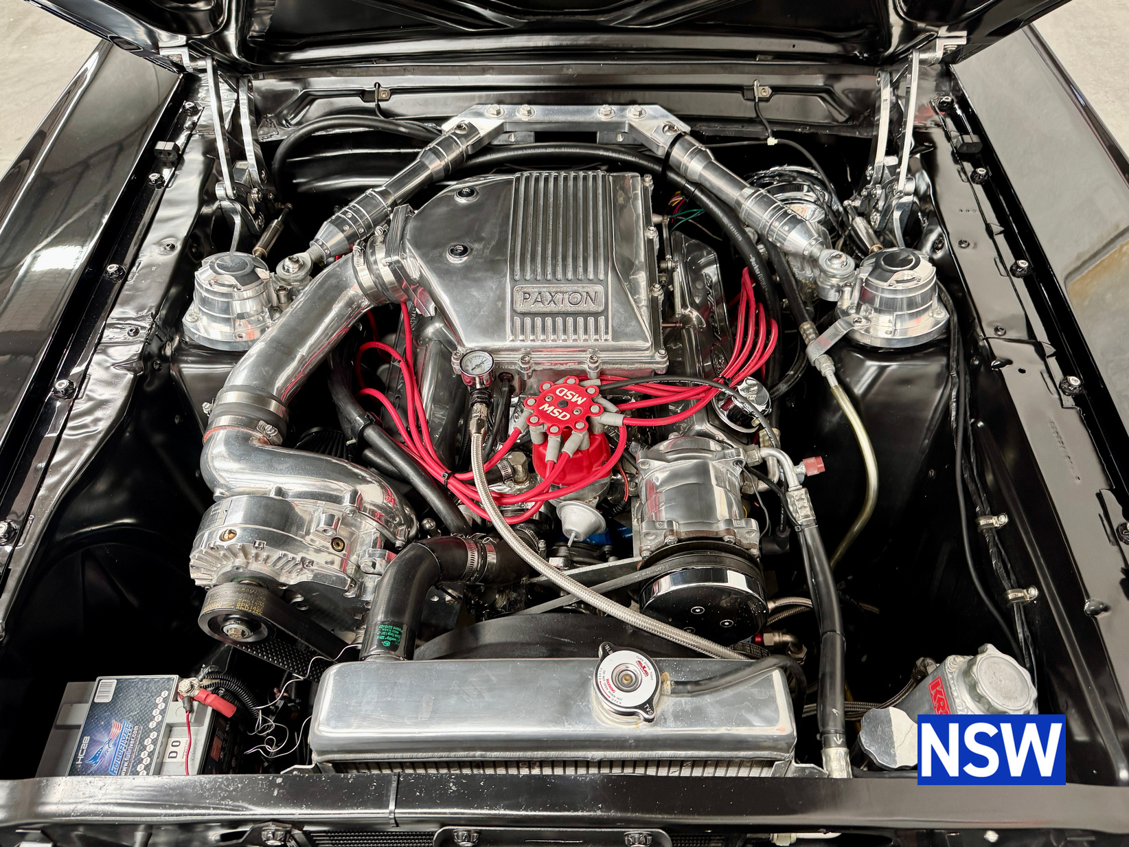 Vendor Notes: – Full ground up rebuild – Bare metal repaint in Gloss Black – Blacked out chrome and trim – Built 347ci Stroker Windsor V8 – Paxton supercharger – New TCI C4 speed automatic transmission – Air conditioning – Four wheel Wilwood disc brakes – TCI suspension and power steering – 17” Mustang styled rims with genuine red wall Nitto tyres all round.