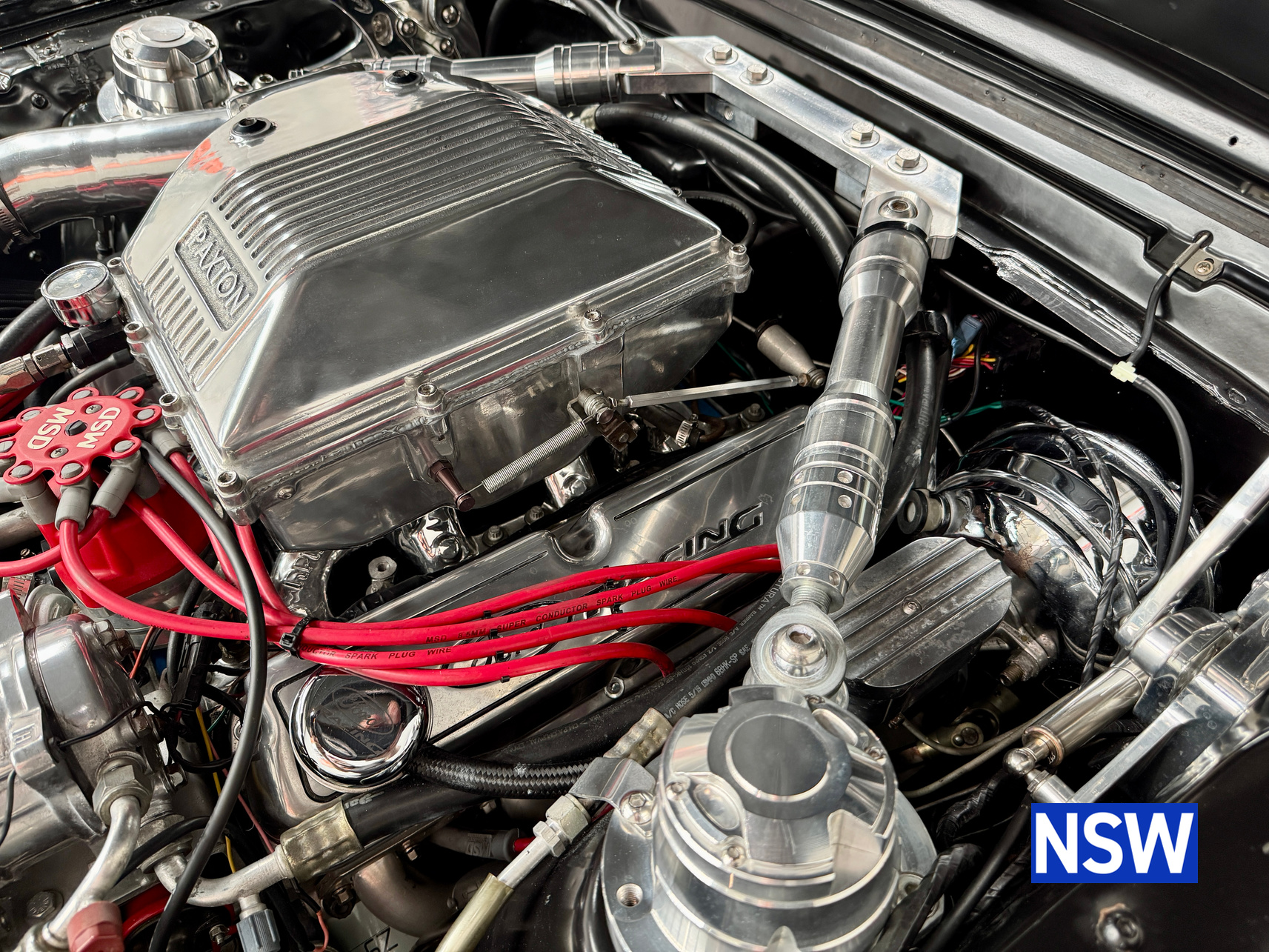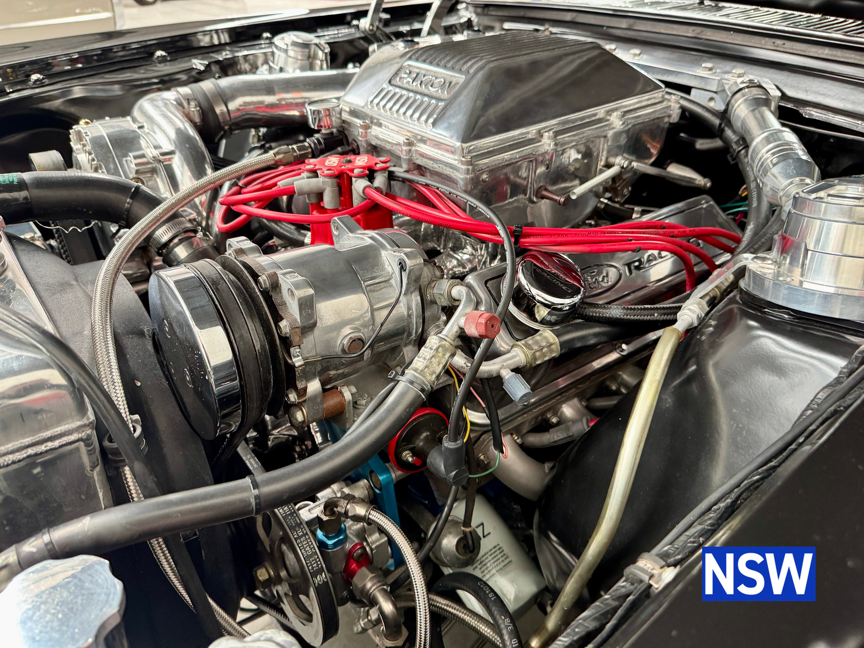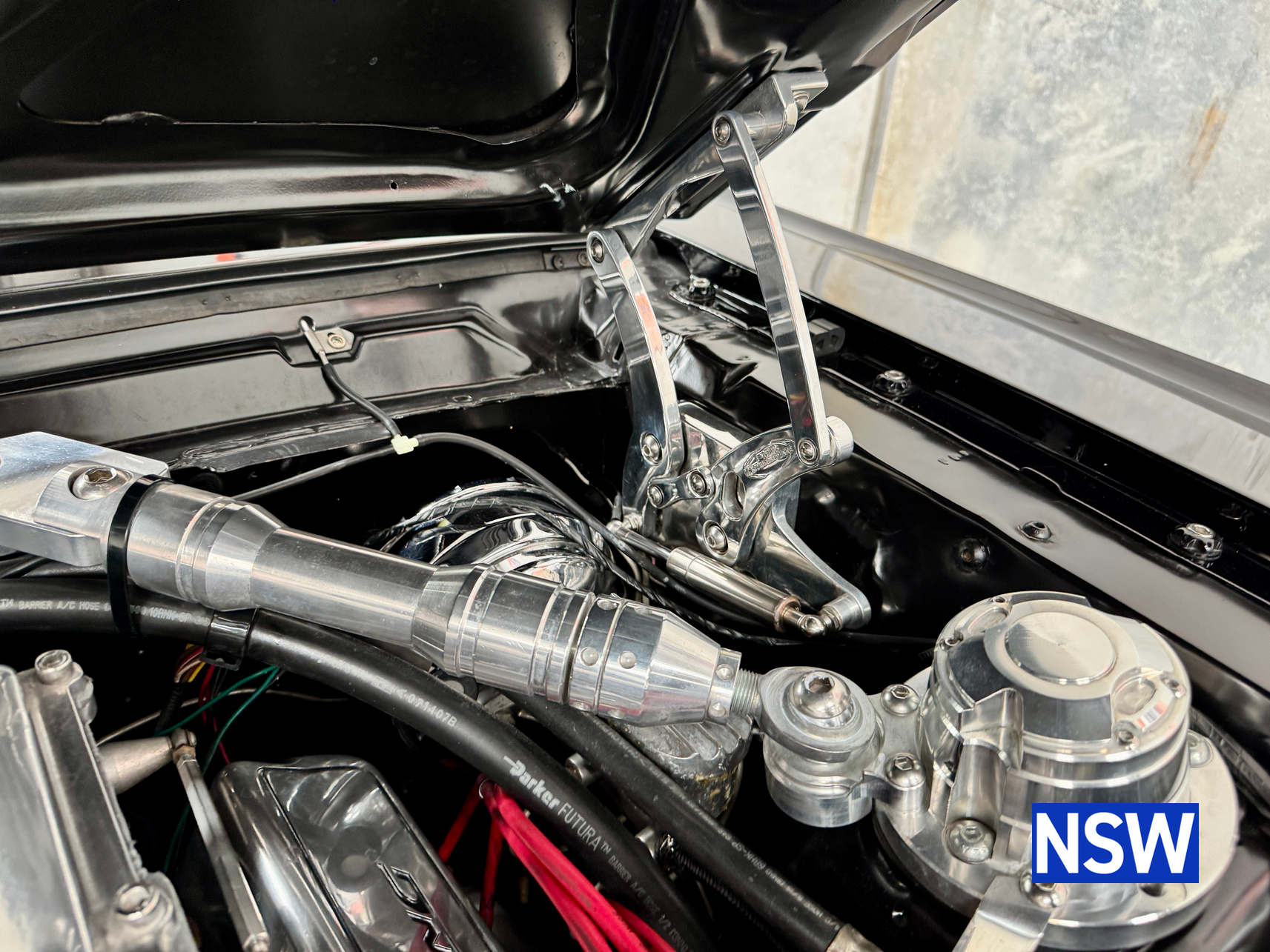 The engine is paired to a brand new TCI C4 automatic transmission with 3000 rpm TCI converter built by Russell’s Automatics on the Gold Coast. Power is fed to the rear wheels through a new diff with 3:5 centre supplied by Aussie Diffs. The front suspension has been upgraded to a complete Total Control setup with new A-arms and coil overs. The steering is also a power steering setup from Total Control. The rear suspension remains factory specs but is all rebuilt. The brakes have been upgraded to Wilwood discs on all four corners.