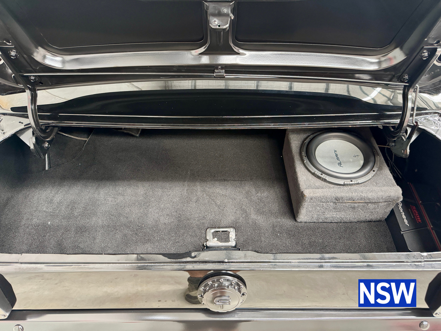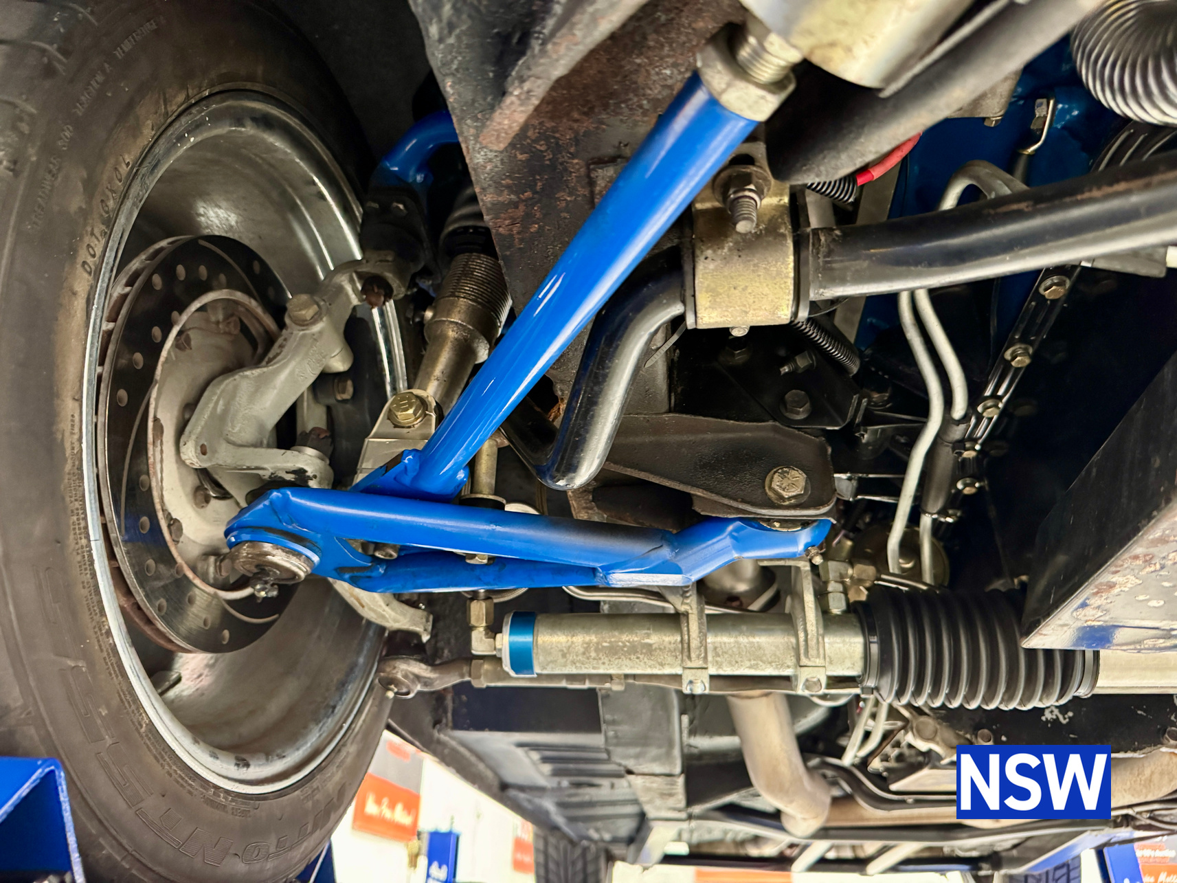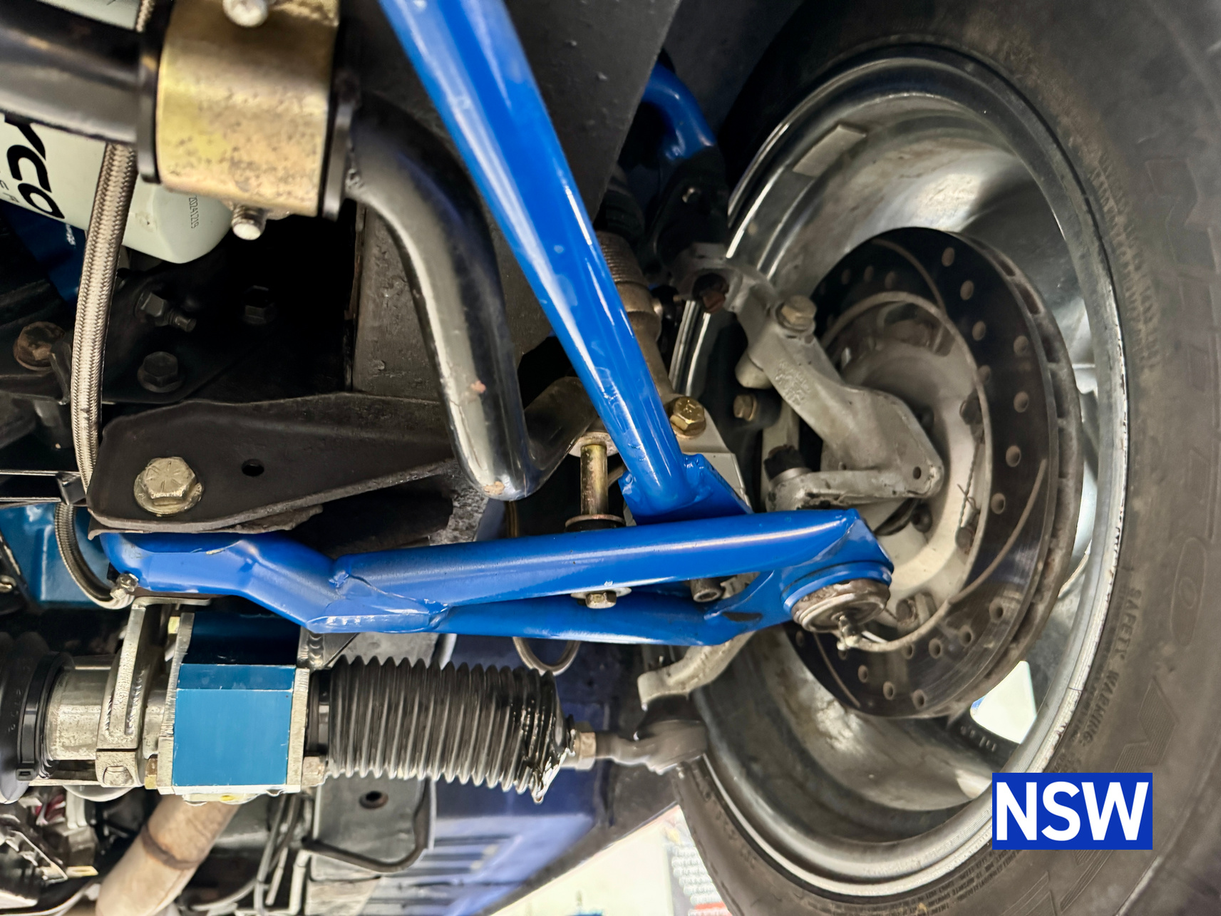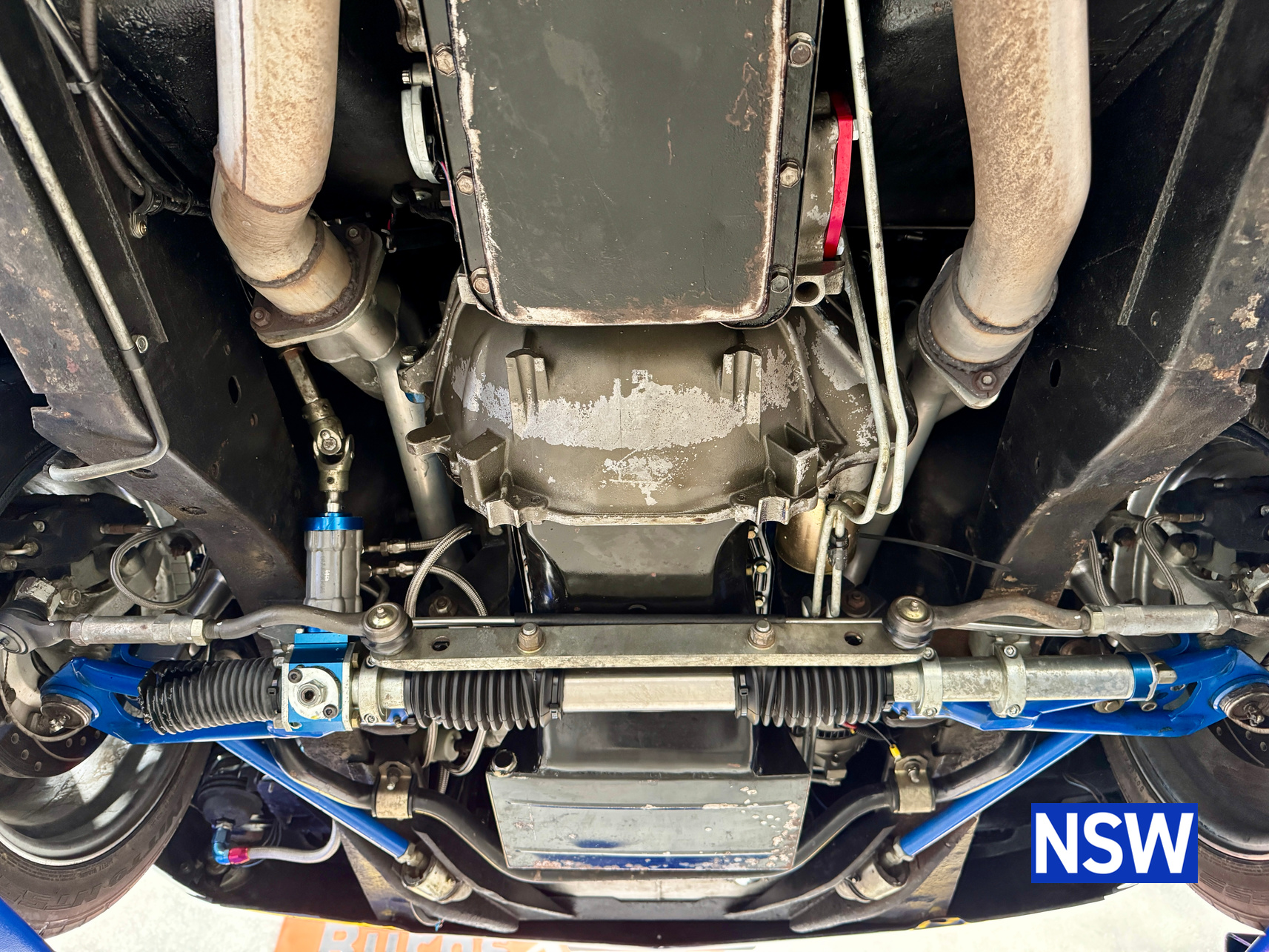 The engine is paired to a brand new TCI C4 automatic transmission with 3000 rpm TCI converter built by Russell’s Automatics on the Gold Coast. Power is fed to the rear wheels through a new diff with 3:5 centre supplied by Aussie Diffs. The front suspension has been upgraded to a complete Total Control setup with new A-arms and coil overs. The steering is also a power steering setup from Total Control. The rear suspension remains factory specs but is all rebuilt. The brakes have been upgraded to Wilwood discs on all four corners.