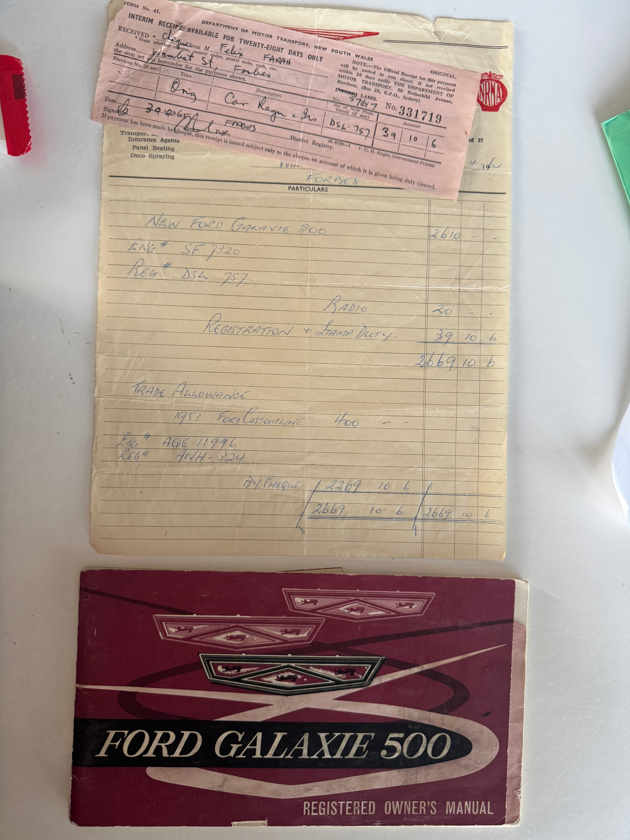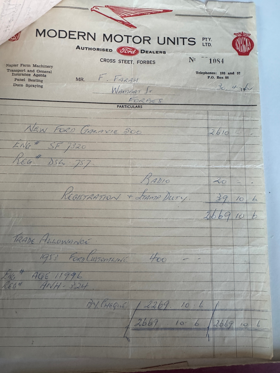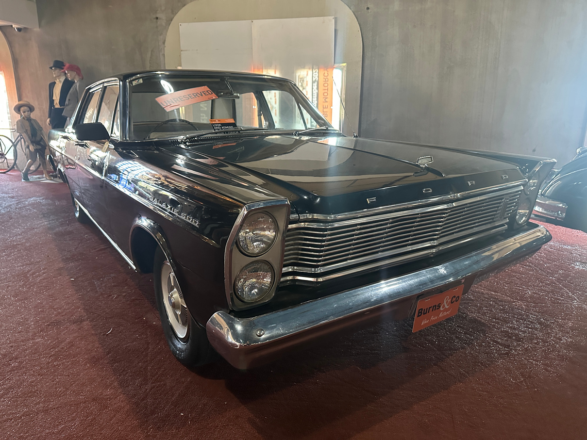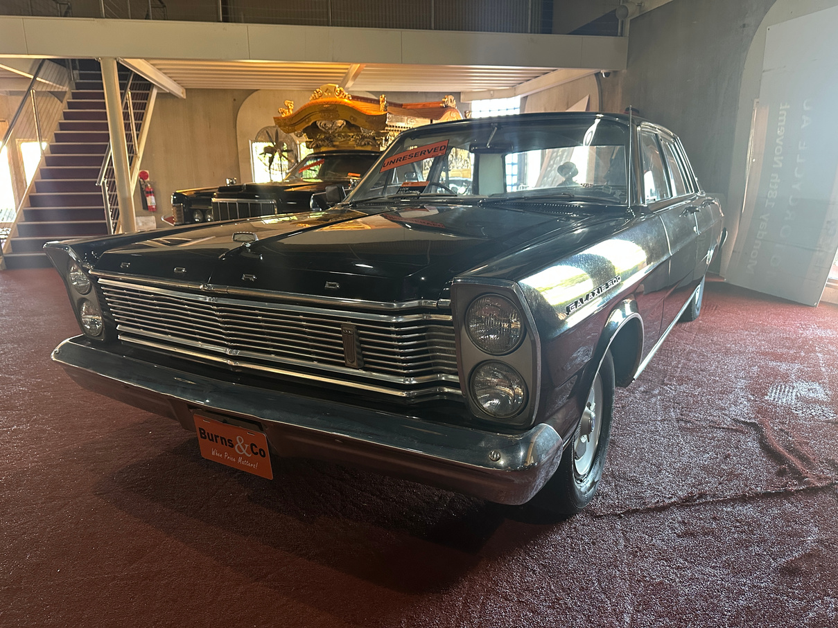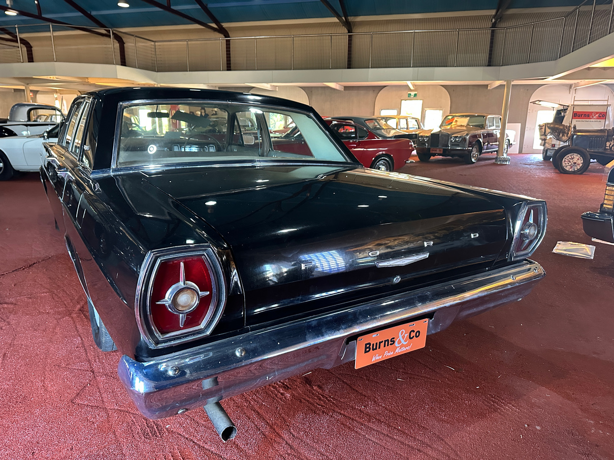 Being offered UNRESERVED. Part of the McFeeters motor museum since its opening, this 1965 Ford Galaxie 500 was sold new in Forbes by Modern Motor Units Pty Ltd to Mr & Mrs Farrah. The car remained under their ownership and was driven by Mrs Farrah until she was 84, at which time due to mounting pressure from her family down sized to a smaller car. The Galaxie was sold from Mrs Farrah to the McFeeters and has been on display in the museum since. The original receipt of sale dated 30/4/1965 and the original owner’s manual are supplied with the vehicle. No attempt to start.