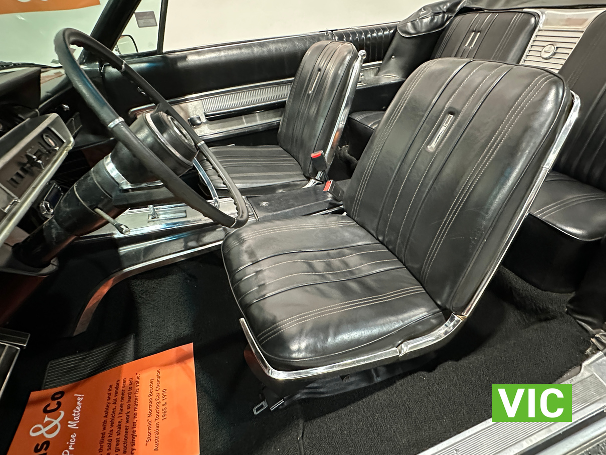 The 1965 Ford Galaxie was a fully redesigned, “Next Generation” model for Ford, with vertically stacked headlights, and a new, smoother-riding three-link coil-spring suspension. This example has been driven into our Bayswater showroom by its long term owner on Victorian club plates (sold unregistered) for genuine sale. Running a fully rebuilt 390 V8 that’s travelled 15000 Km paired to an automatic transmission, fitted with power steering and its recently had a new roof fitted, new tyres and new front brakes. This would make an excellent family cruiser with plenty of room and power while getting plenty of attention on the road.