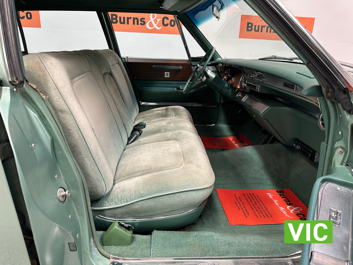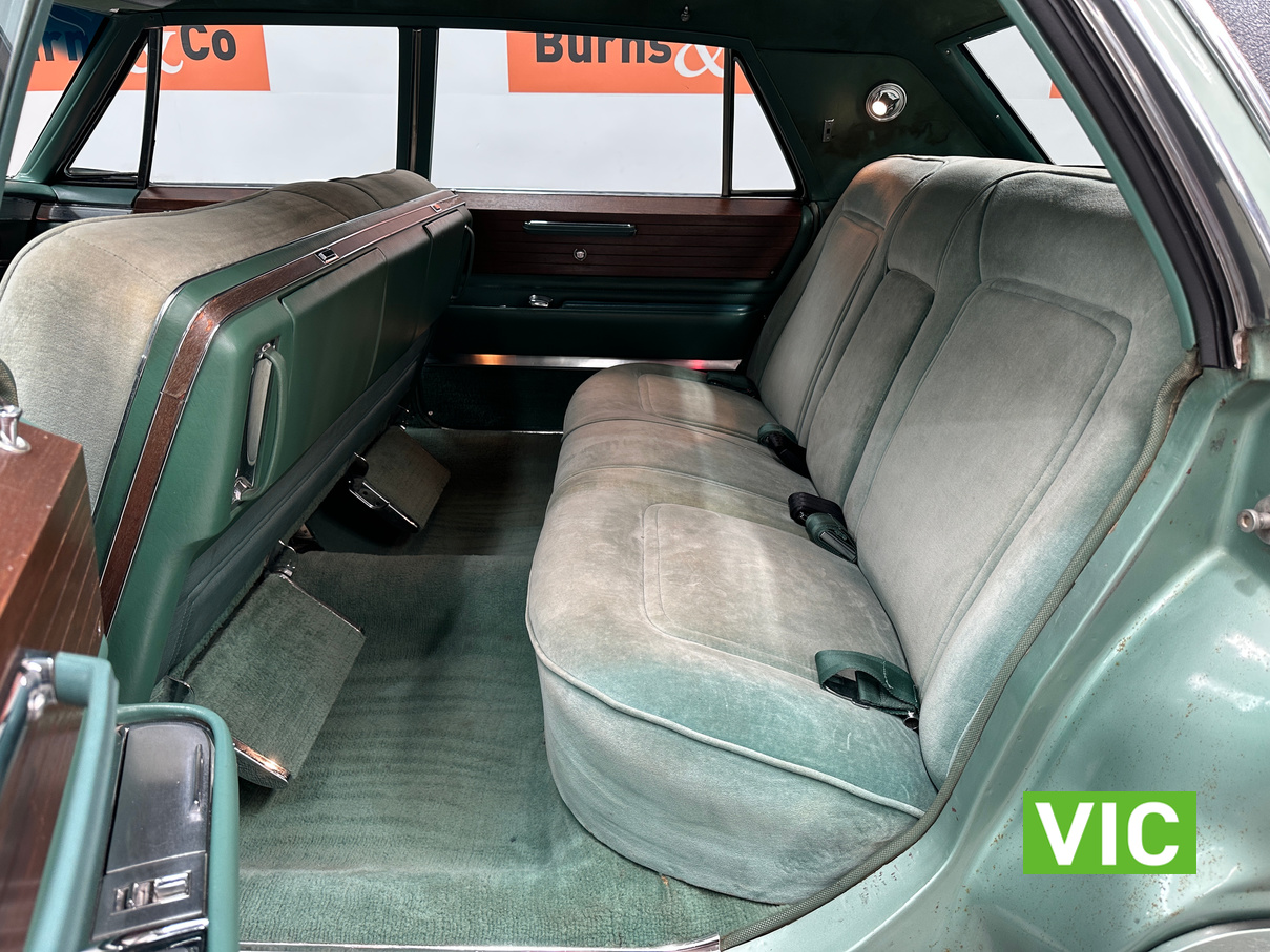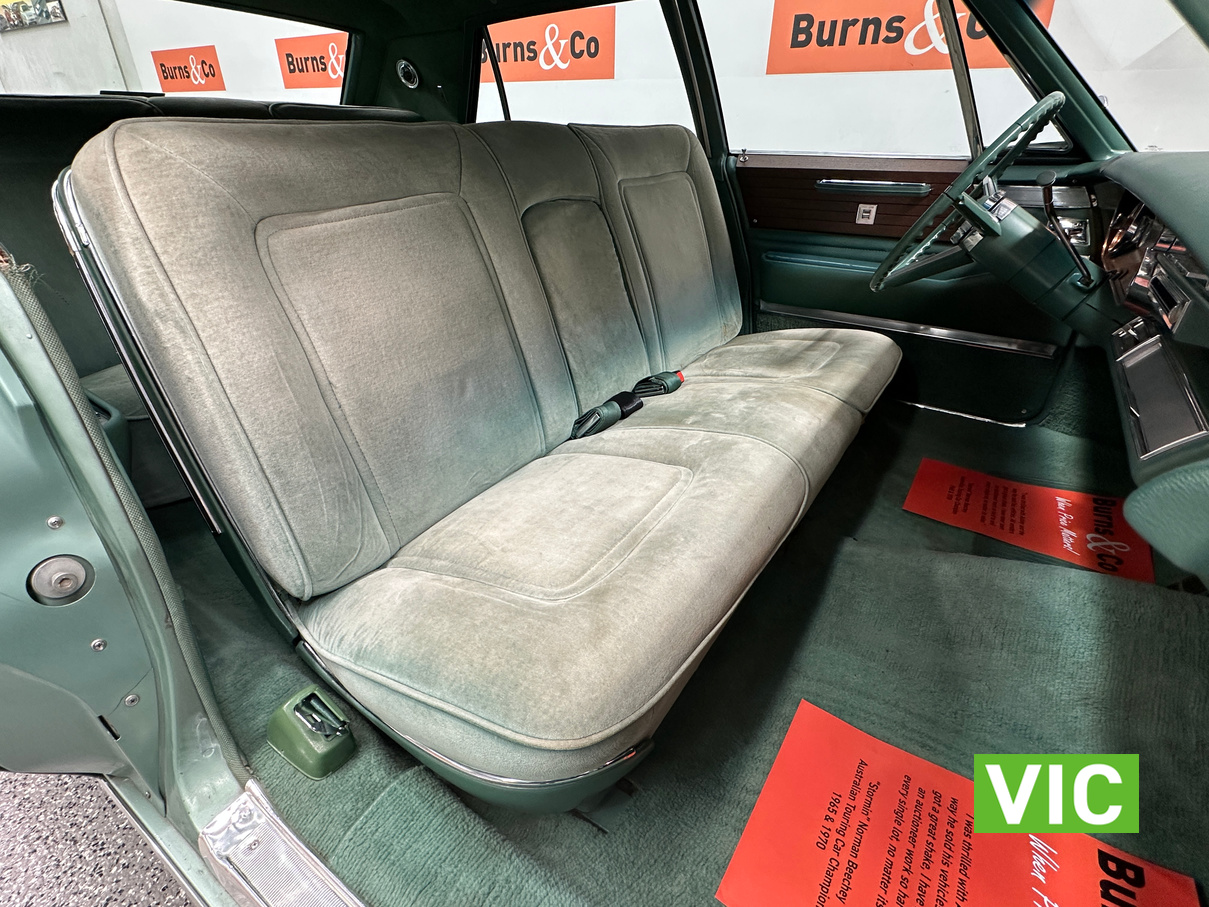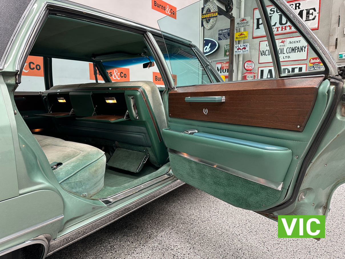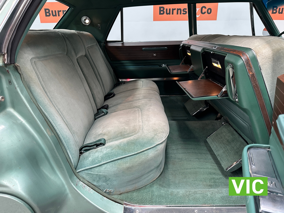 A stunning example finished in a gleaming coat of metallic green and fitted with every conceivable option in its day, including electric bench seat, central locking, auto park brake release, fold down rear tables, electric ¼ windows, retractable steering column, rear footrests, power steering, air conditioning-(not working) and the list goes on. Running the big 429 V8 paired to the 3 speed Turbo Hydramatic transmission this yank tank sounds and drives as good as it looks.