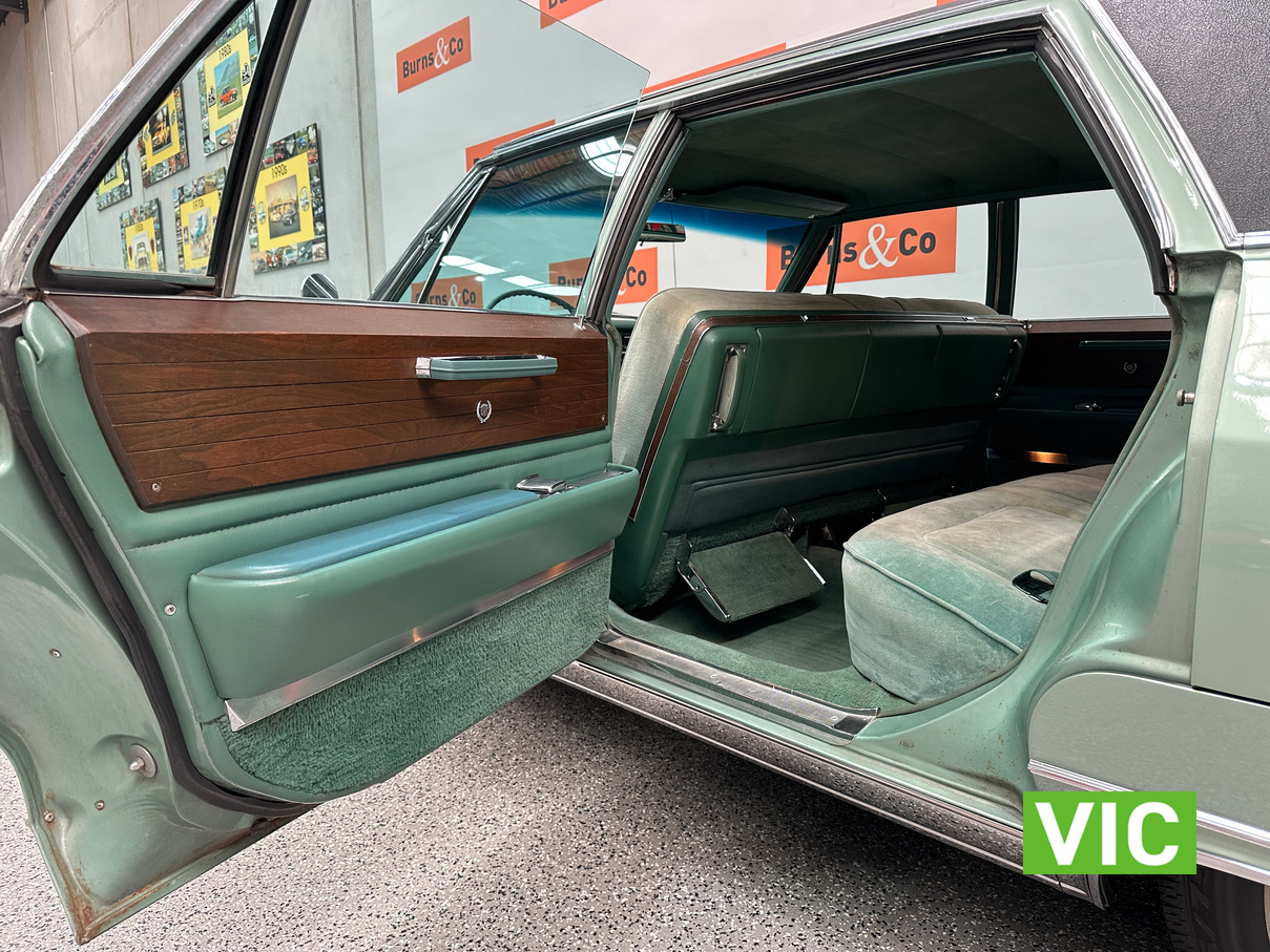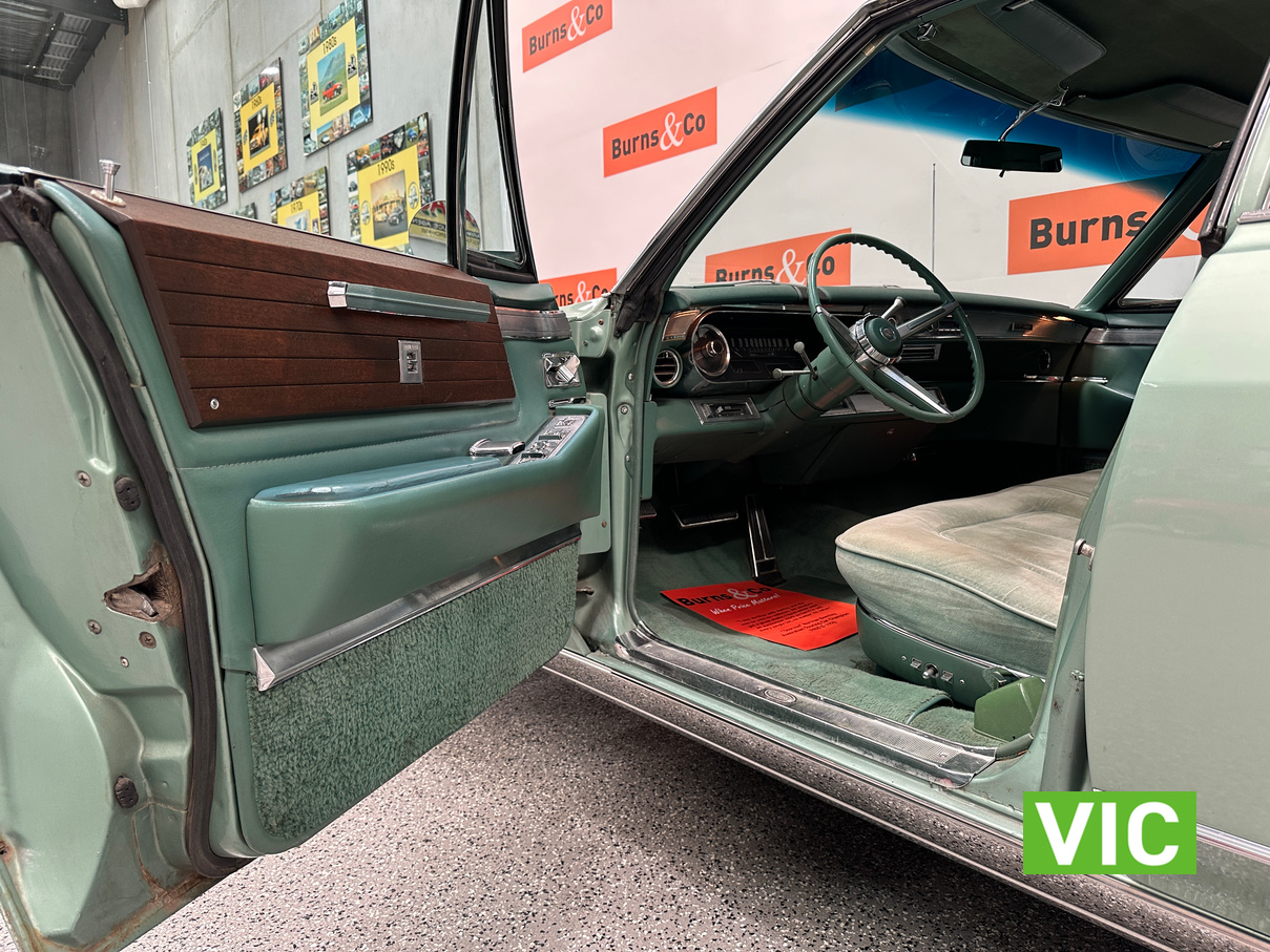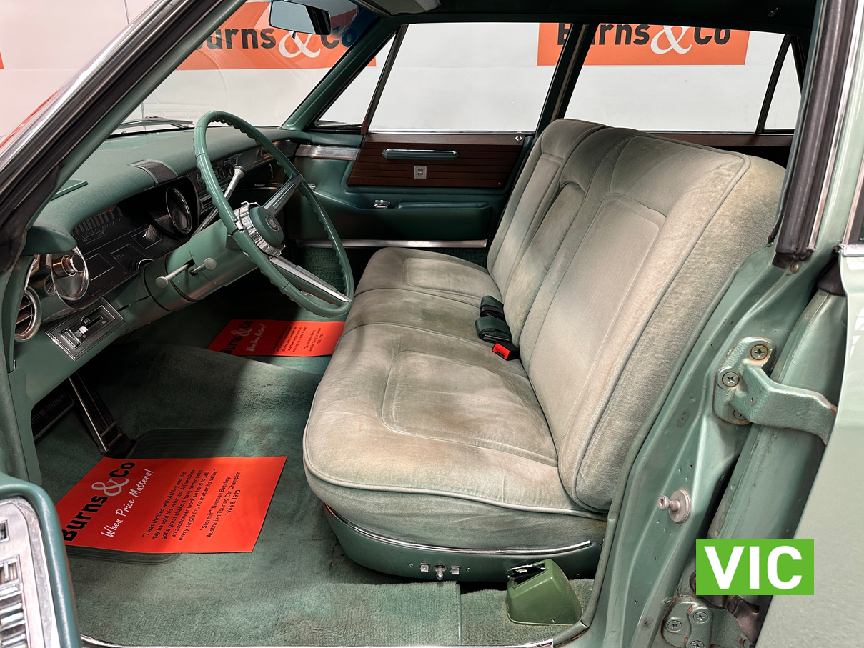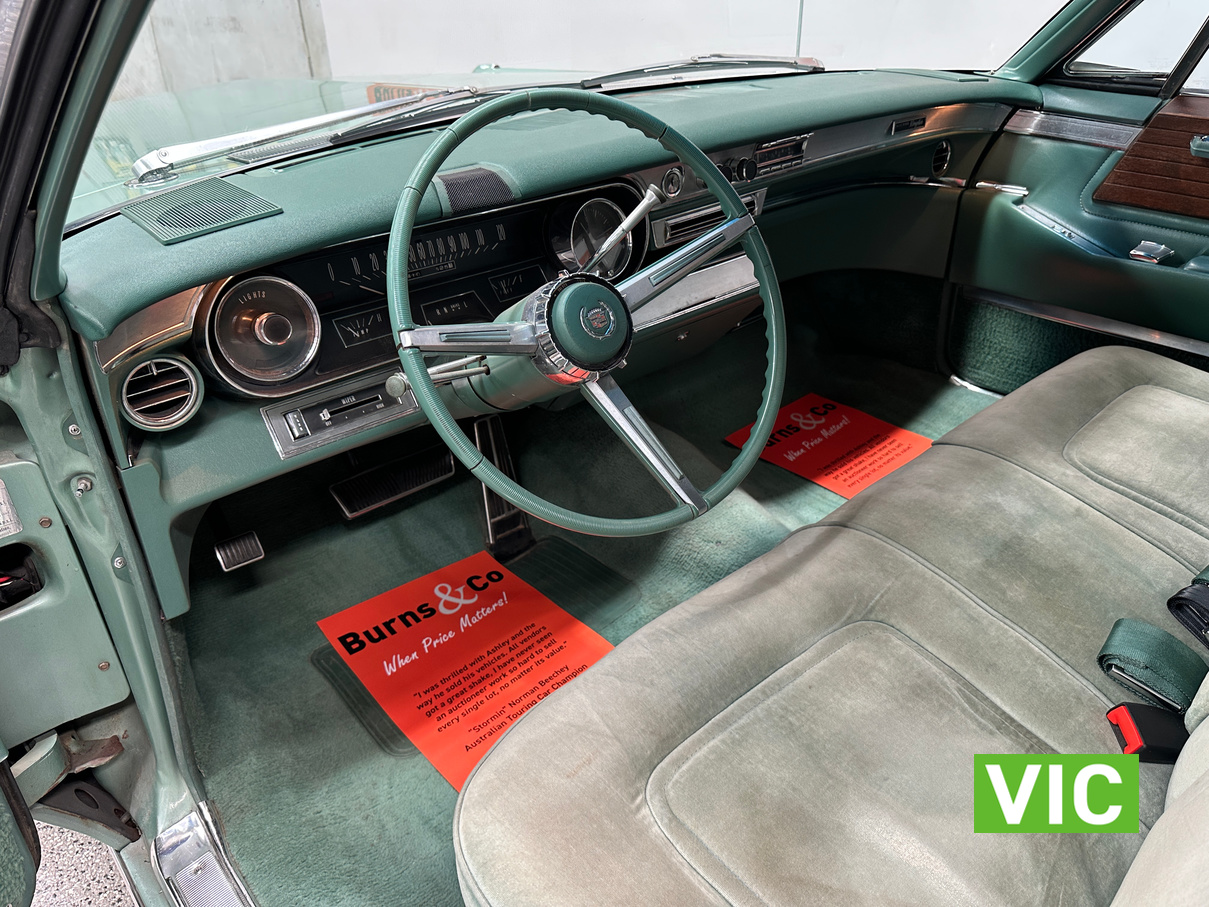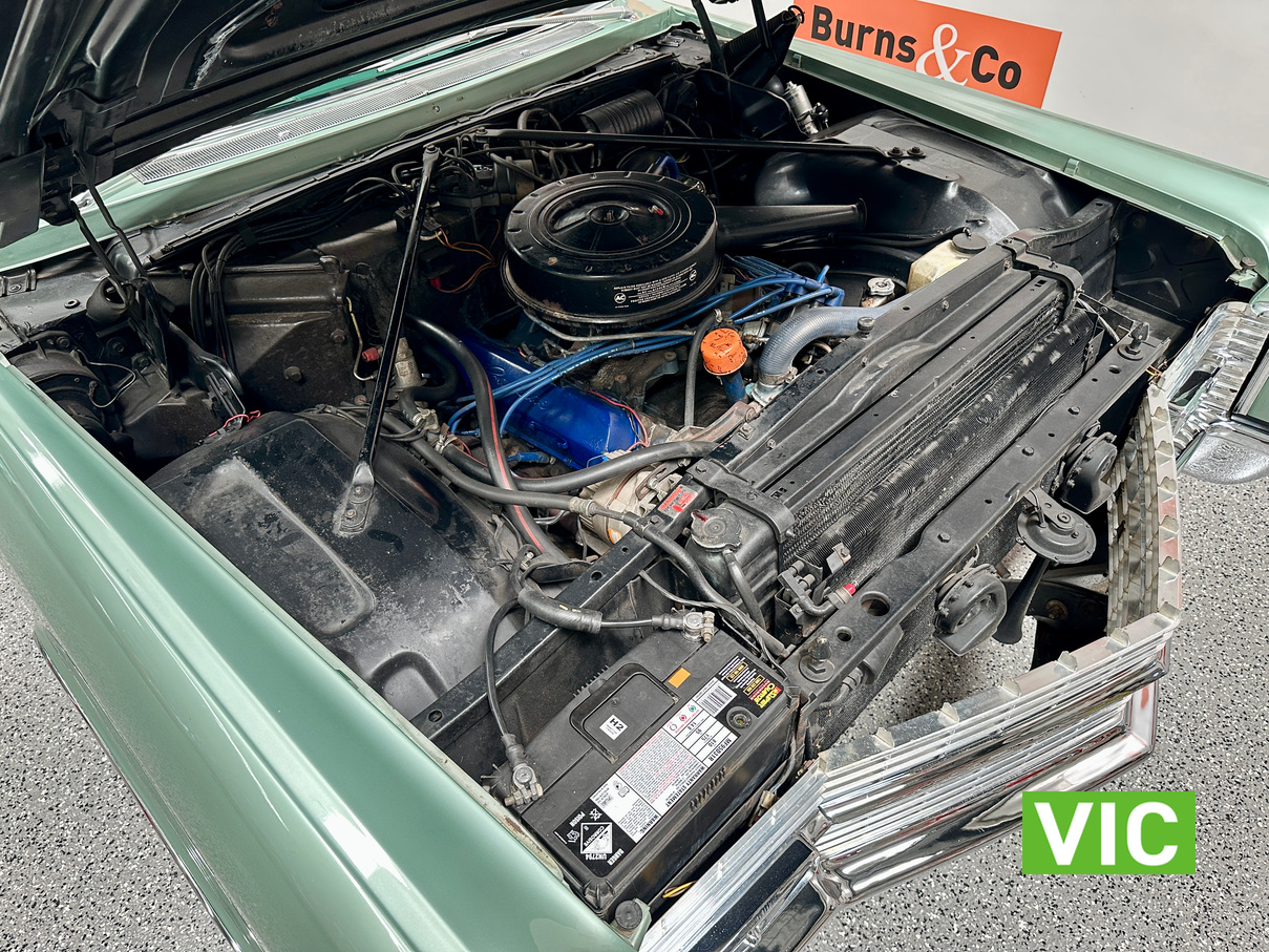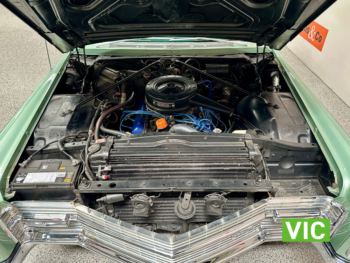 A stunning example finished in a gleaming coat of metallic green and fitted with every conceivable option in its day, including electric bench seat, central locking, auto park brake release, fold down rear tables, electric ¼ windows, retractable steering column, rear footrests, power steering, air conditioning-(not working) and the list goes on. Running the big 429 V8 paired to the 3 speed Turbo Hydramatic transmission this yank tank sounds and drives as good as it looks.