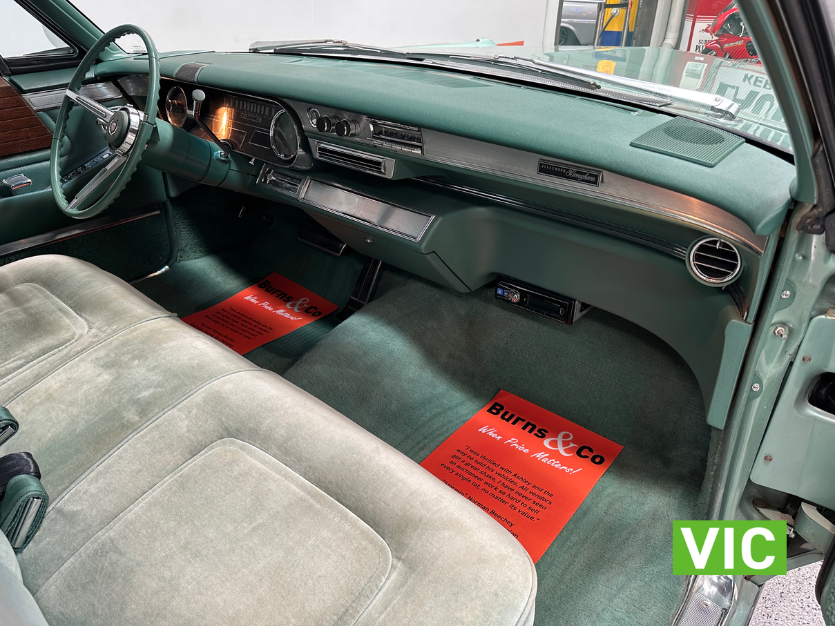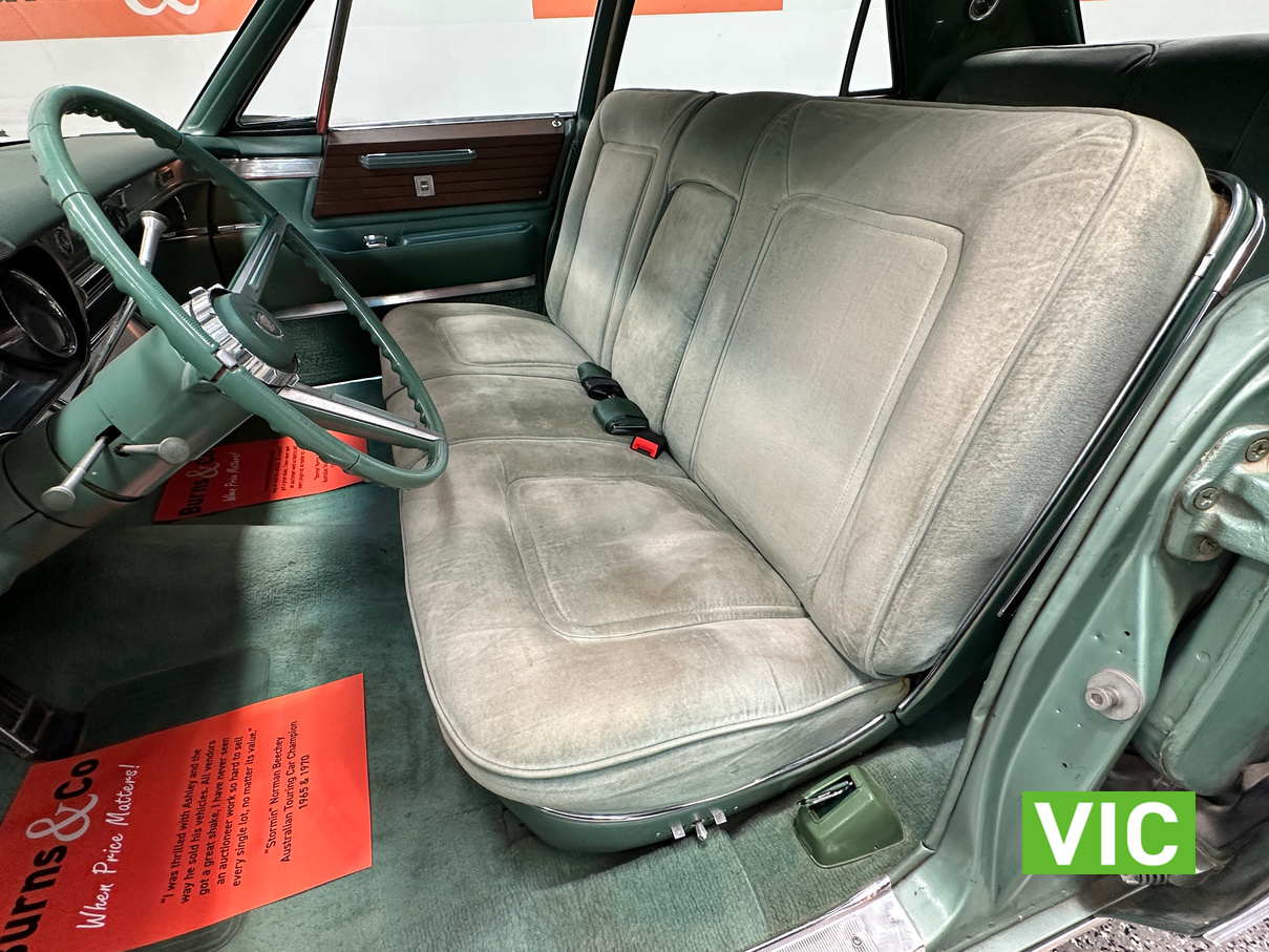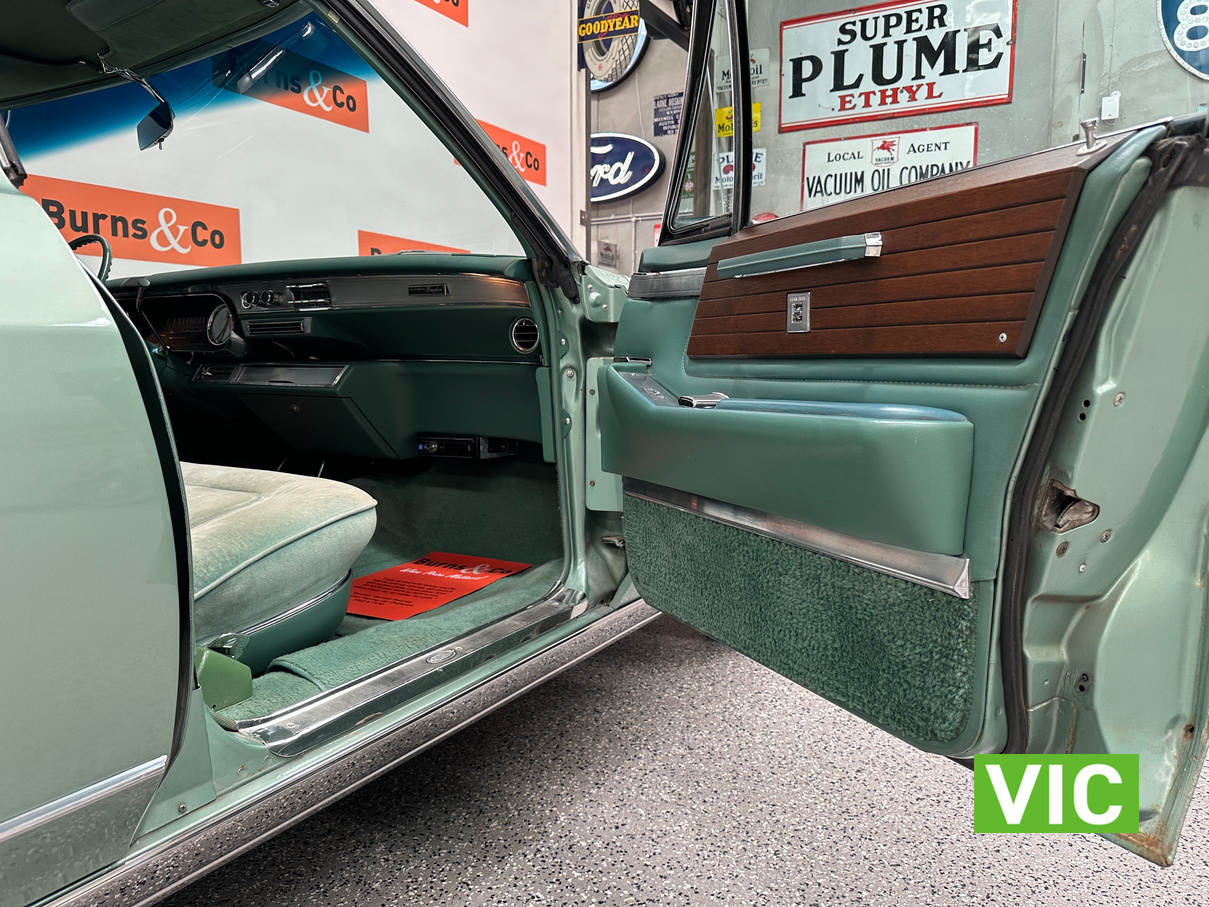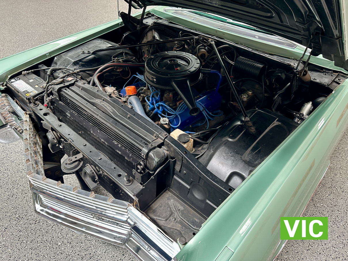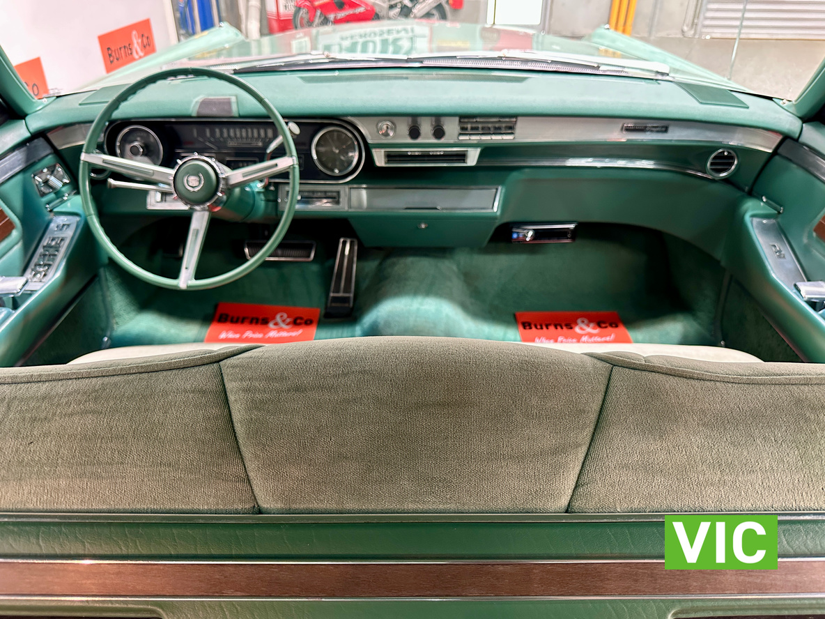 A stunning example finished in a gleaming coat of metallic green and fitted with every conceivable option in its day, including electric bench seat, central locking, auto park brake release, fold down rear tables, electric ¼ windows, retractable steering column, rear footrests, power steering, air conditioning-(not working) and the list goes on. Running the big 429 V8 paired to the 3 speed Turbo Hydramatic transmission this yank tank sounds and drives as good as it looks.