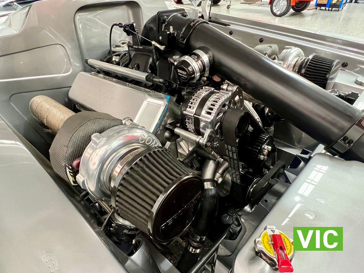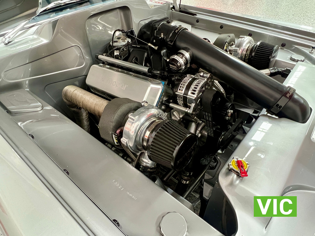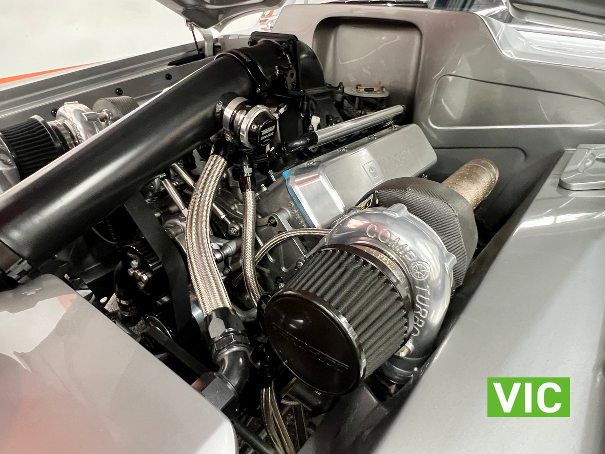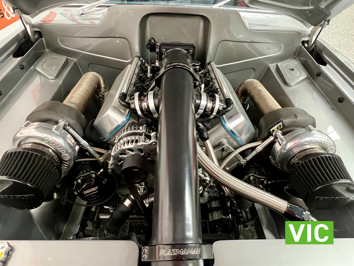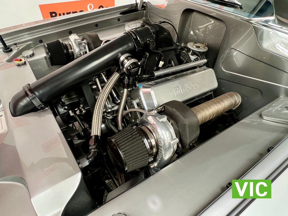 Fitted with a NASCAR 358ci Dodge/Mopar R5P7 V8 engine, twin T3 comp turbos, 727 Torqueflite transmission with a TCT 3000rpm stall torque converter, Sheet-metal 9in, Race Products full-floater diff, three stage dry sump, MSD ignition, 90mm throttle body amongst a huge list of addition modifications (list available).