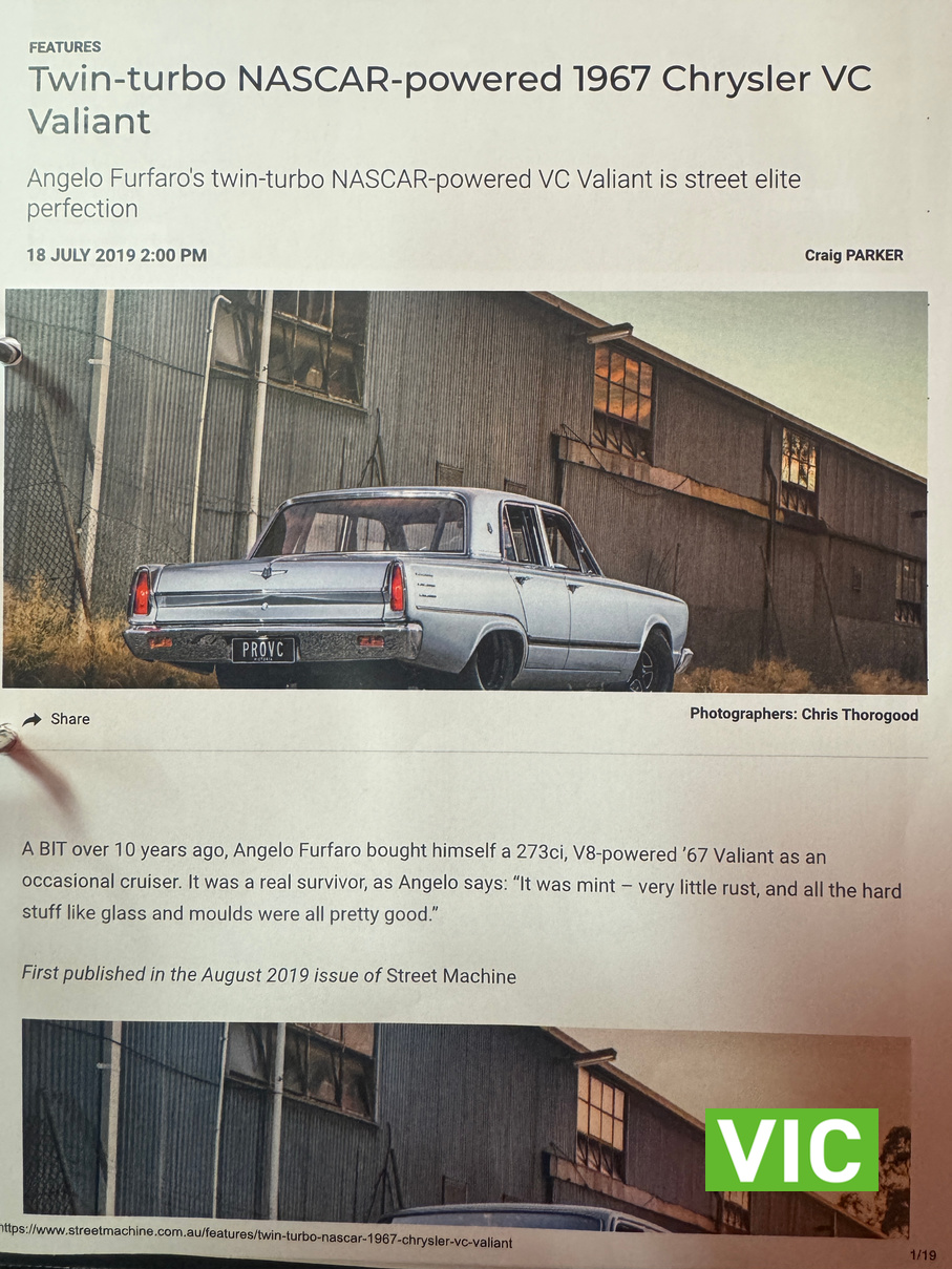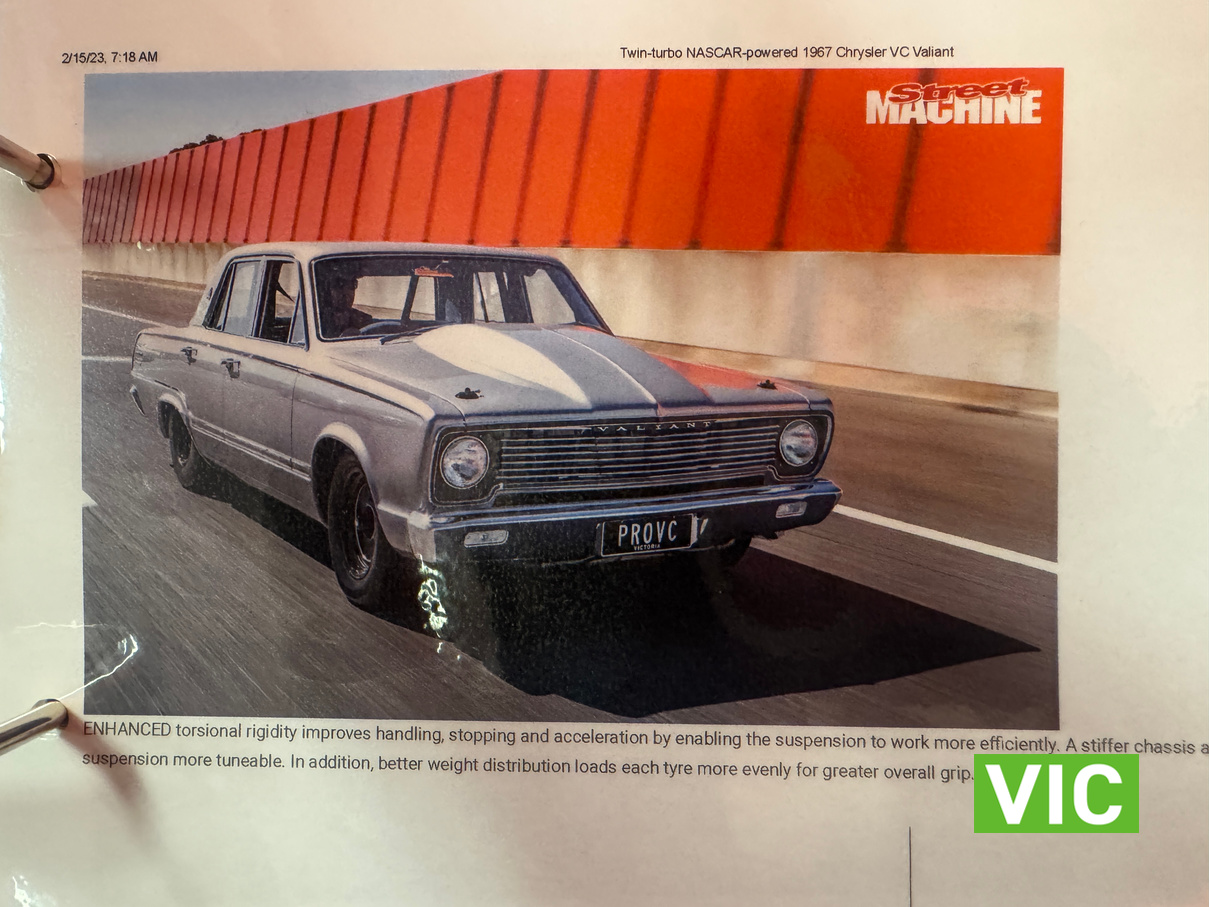 Gold winning, Street machine featured, Motorex winning fully engineered 1967 VC Valiant!