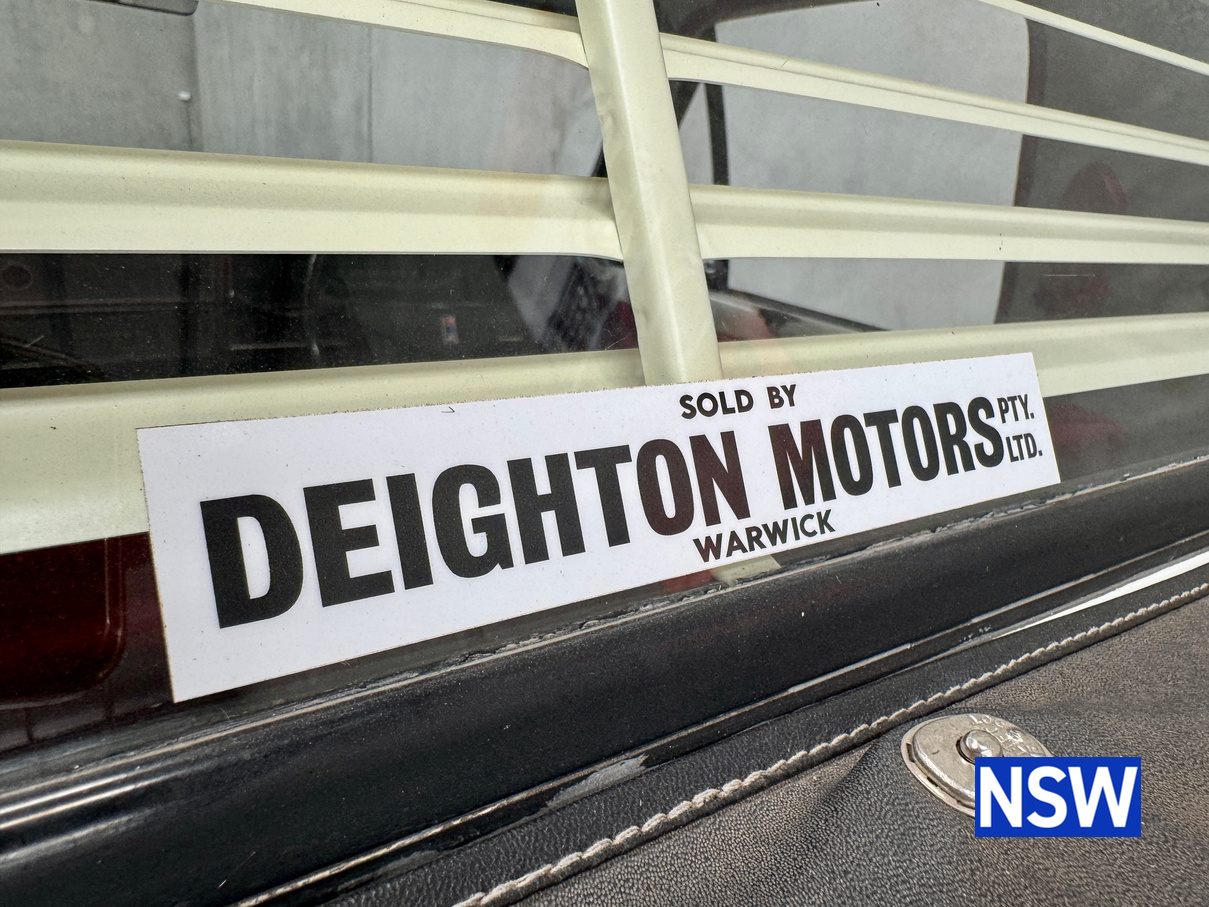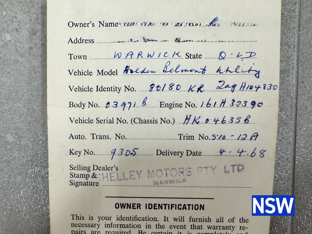 Eye catching HK Belmont Ute tastefully accessorized with NASCO accessories. Sold new from Deightons Motors Warwick, this HK is still a matching numbers vehicle complete with full pedigree including original owner’s manual, service and warranty book and every receipt for every cent spent on it. Engine fully rebuilt 5000 Miles ago.