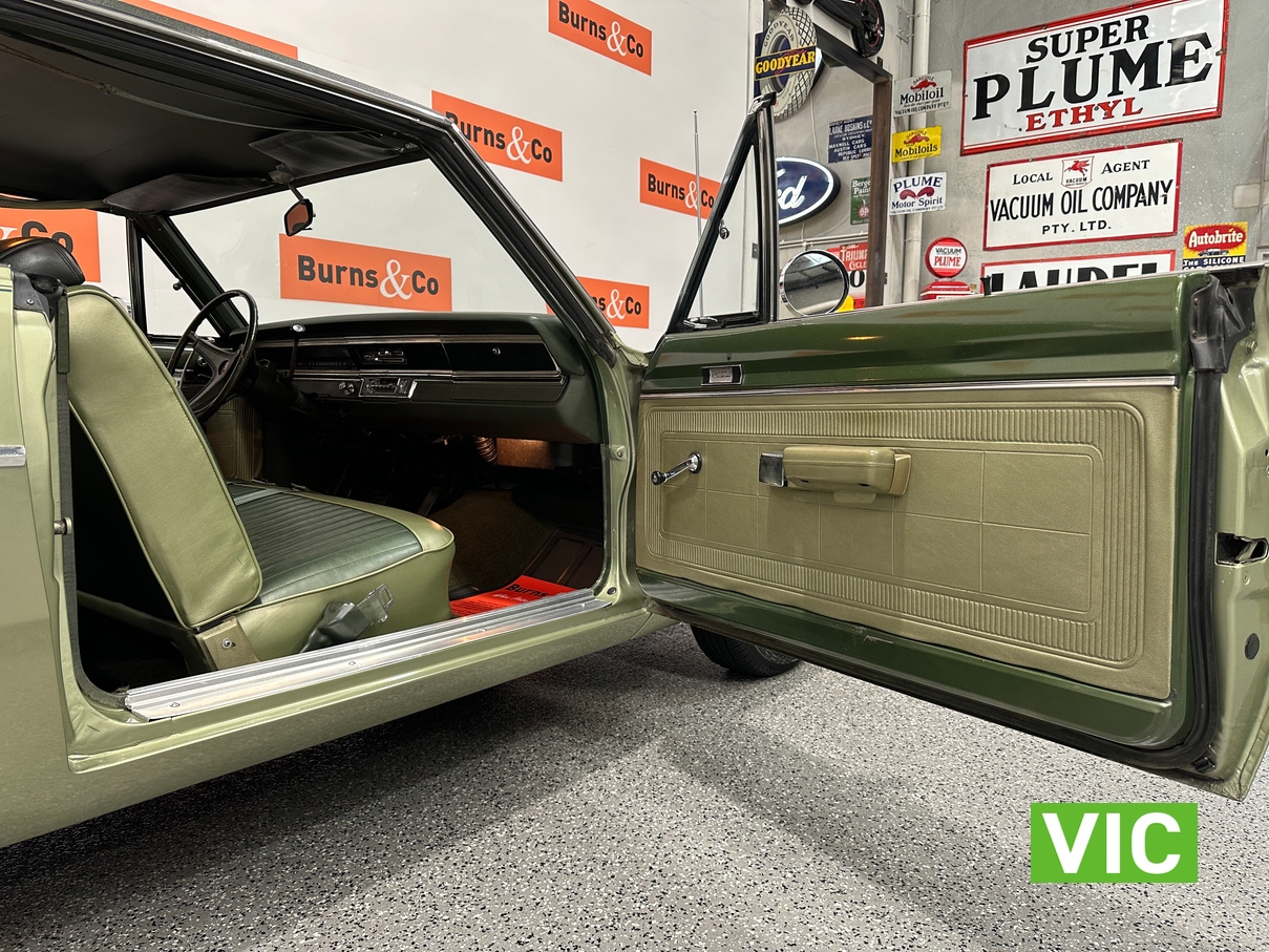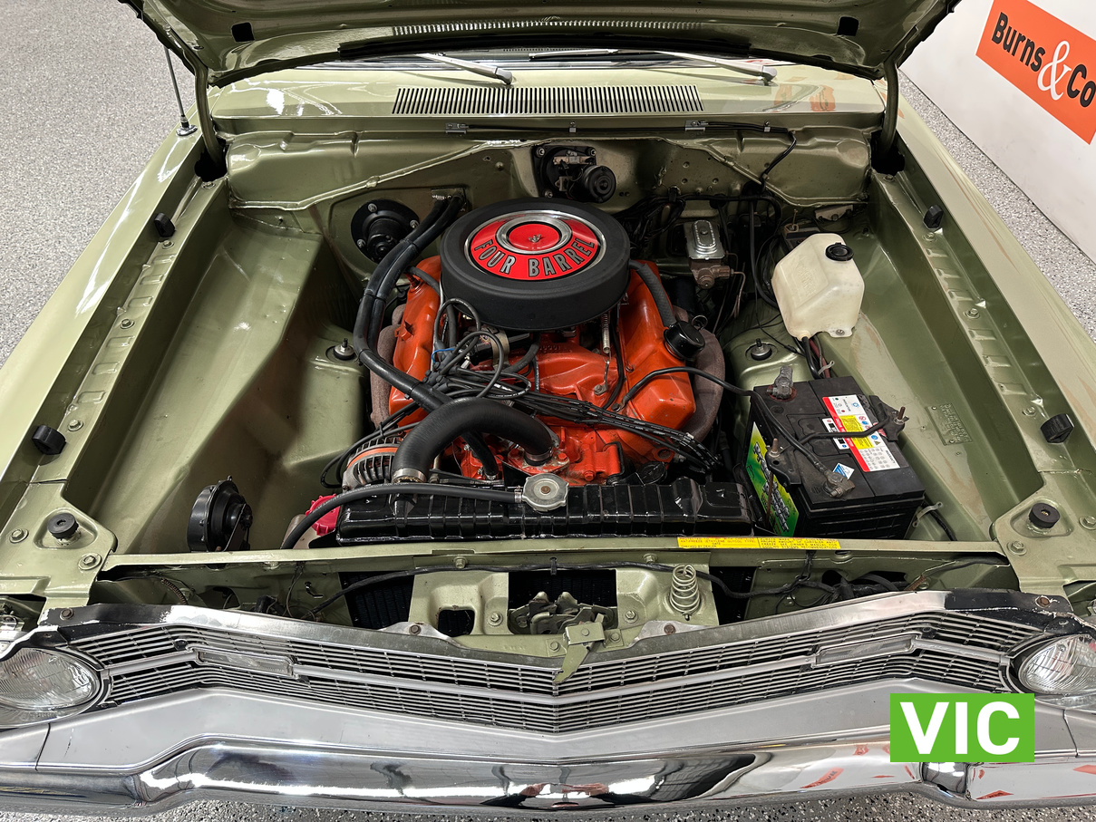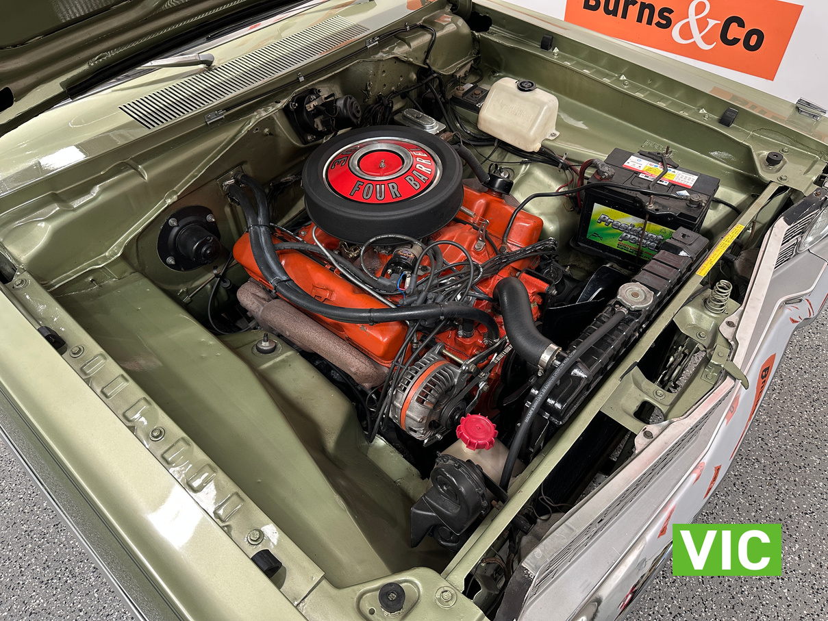 Factory triple green car with the 727 torqueflight auto now paired to a 383 V8, the factory 273 is available to the purchaser. Well maintained by the vendor for the past number of years and was driven into our Baywater showroom on Victorian club plates (sold unregistered). Excellent opportunity for the American muscle car enthusiast.
