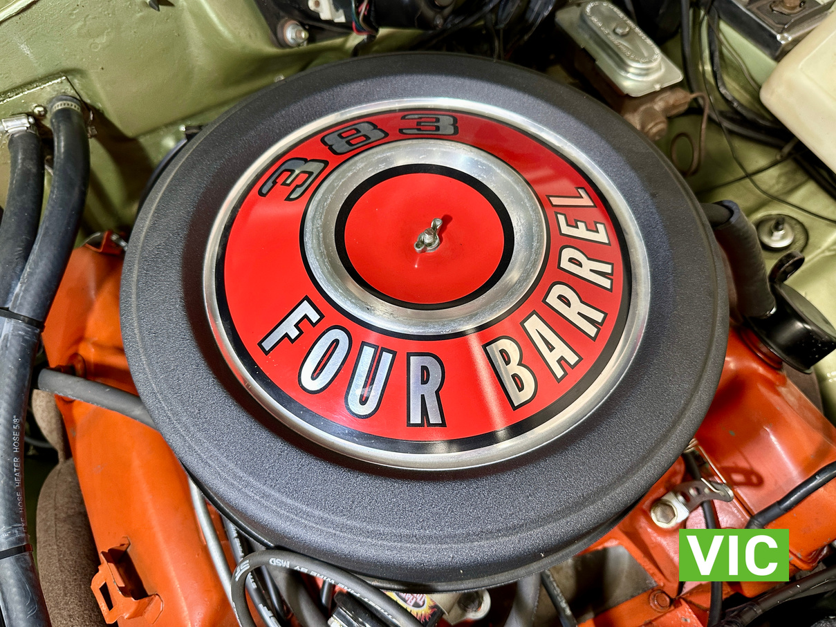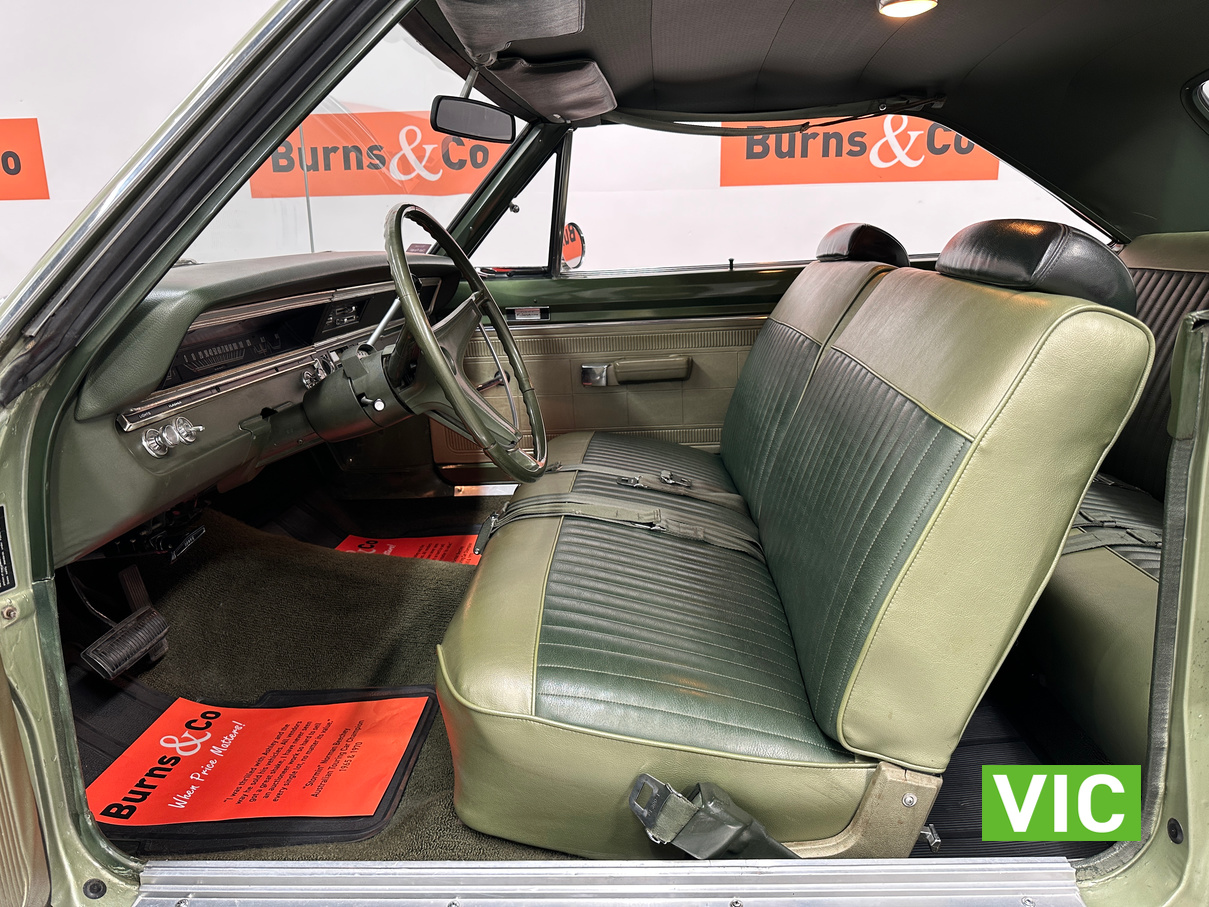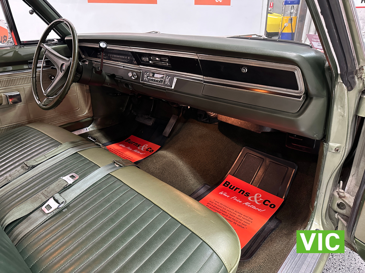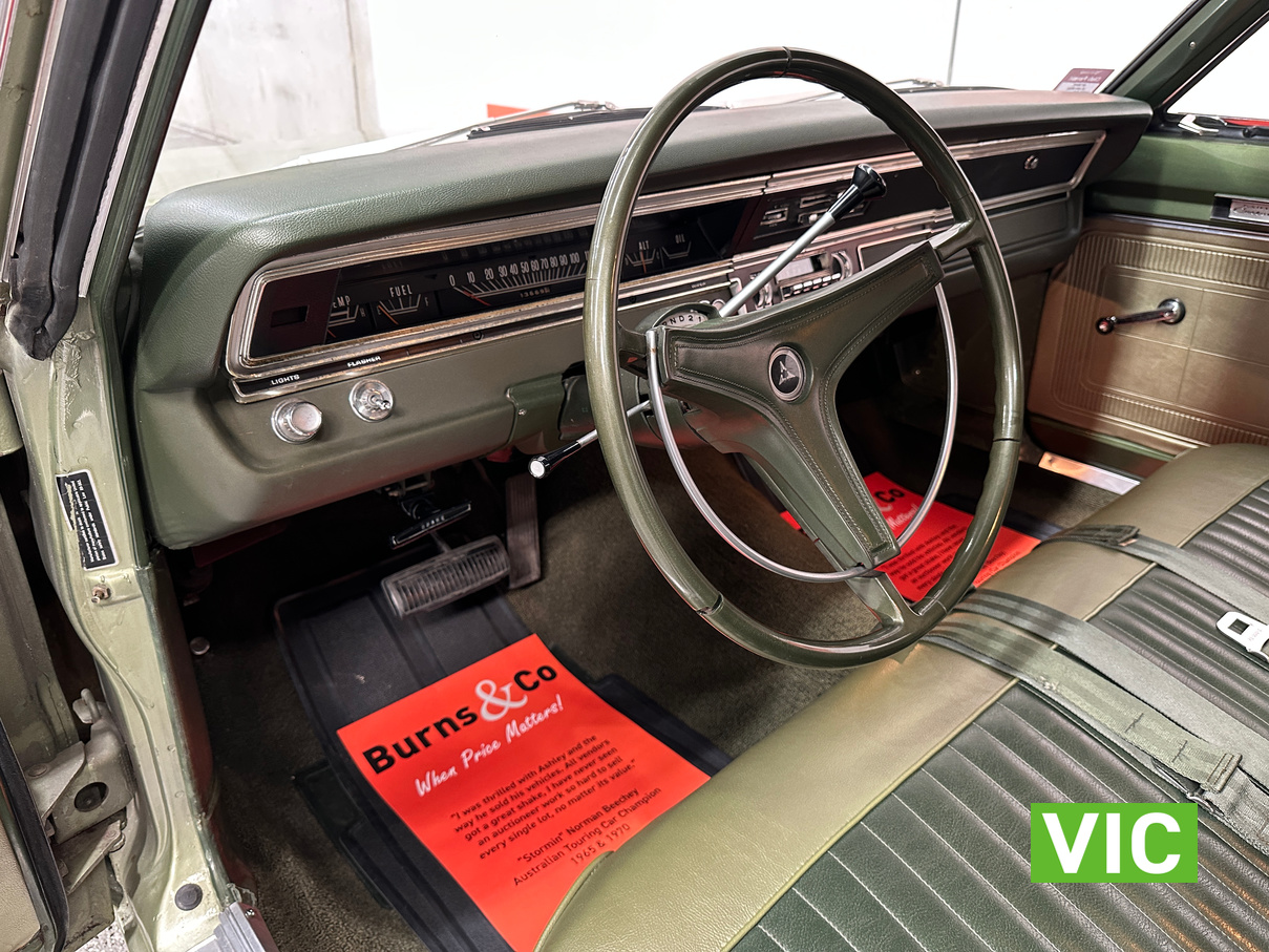 Factory triple green car with the 727 torqueflight auto now paired to a 383 V8, the factory 273 is available to the purchaser. Well maintained by the vendor for the past number of years and was driven into our Baywater showroom on Victorian club plates (sold unregistered). Excellent opportunity for the American muscle car enthusiast.